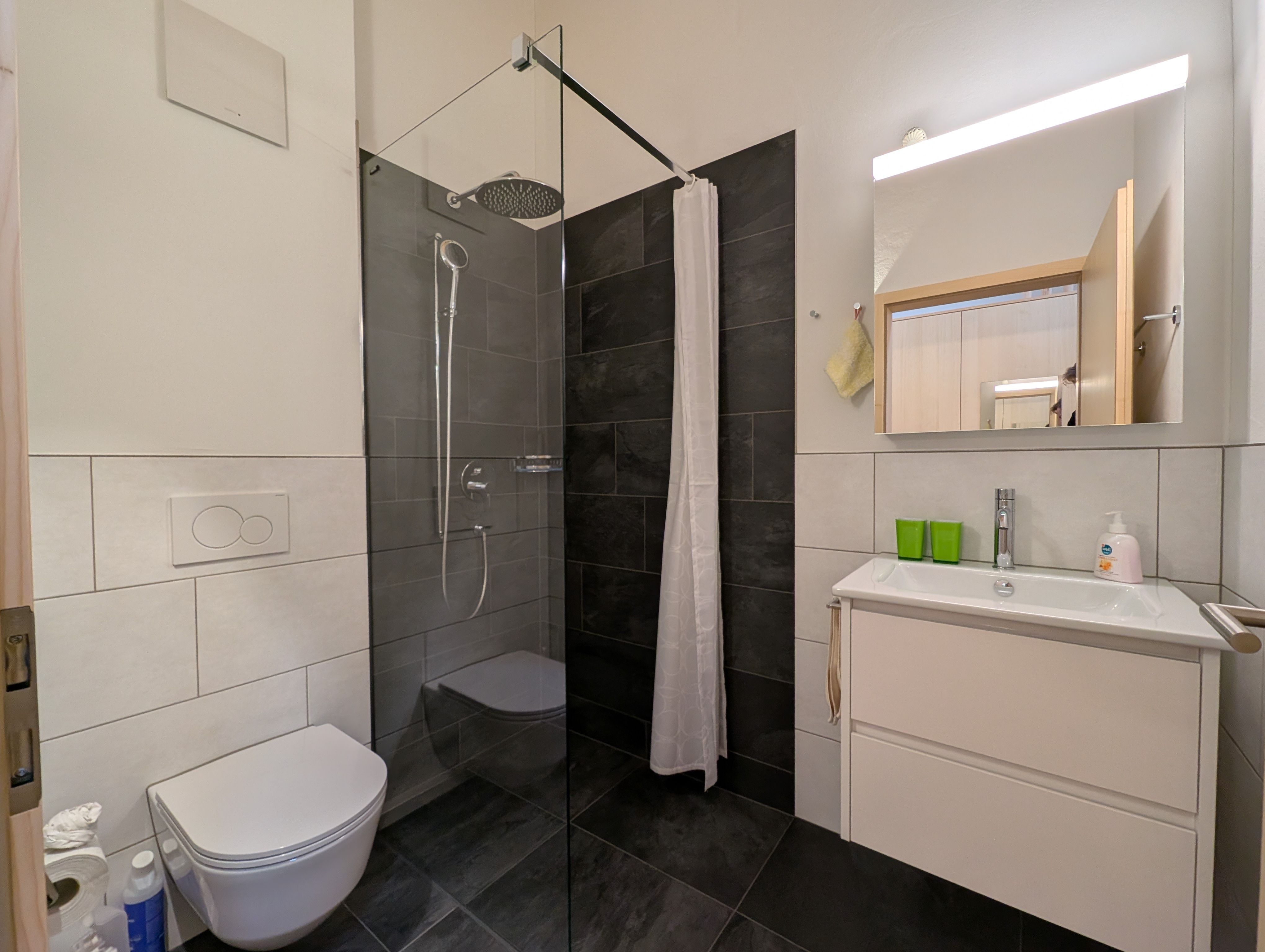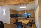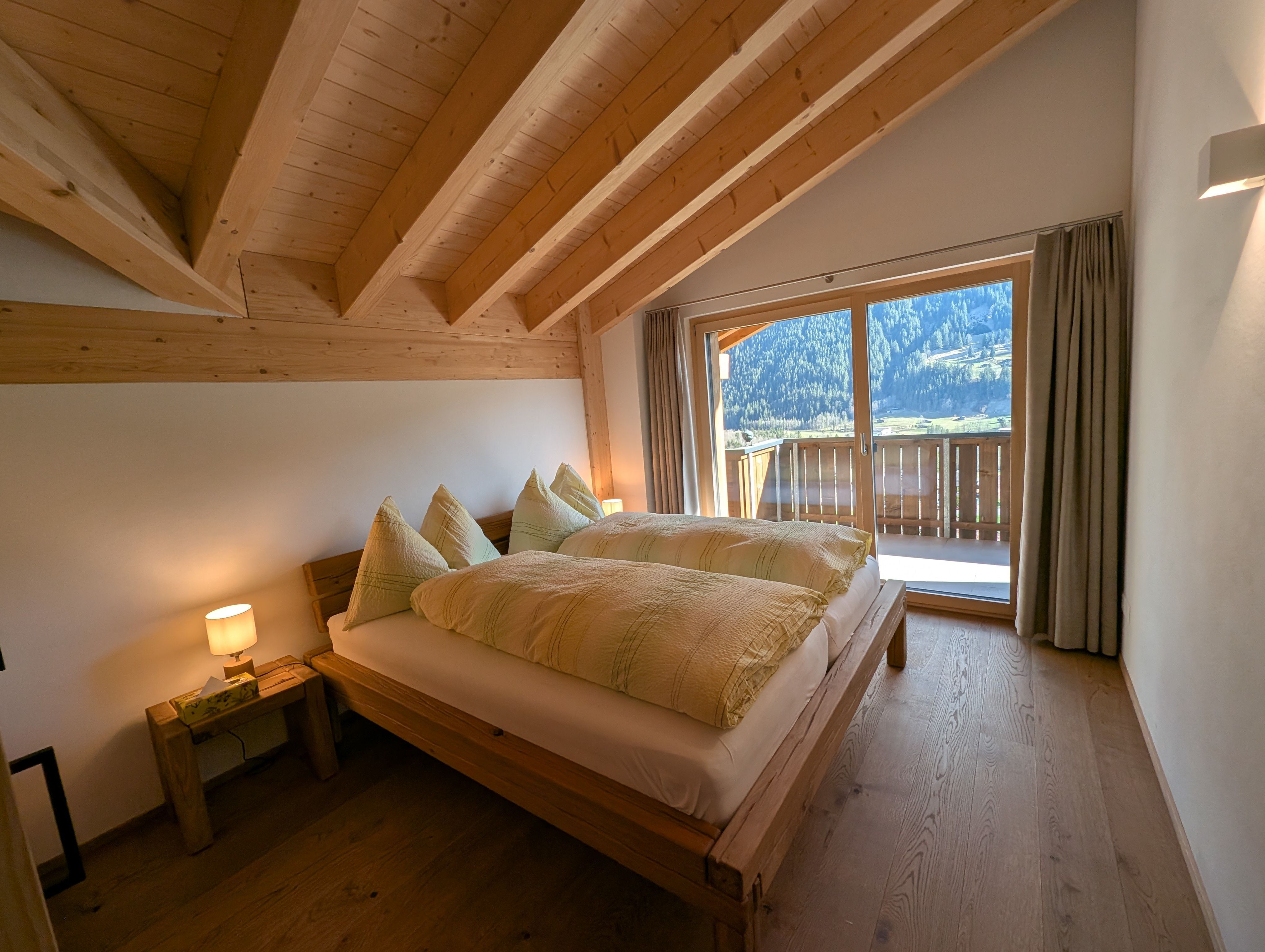 Im Inneren erwartet Sie eine offene Küche, die in einen großzügigen Wohn- und Essbereich übergeht. Die Küche ist mit allem ausgestattet, was Sie für die Zubereitung leckerer Mahlzeiten benötigen, inklusive 4 Kochplatten, einem Backofen, einer Mikrowelle, einer Kaffeemaschine (Filter und Nespresso), einem Kühlschrank mit Gefrierfach, einem Geschirrspüler sowie einem Fondue Set und einem Racletteofen. Für gemütliche Stunden sorgt das geschmackvoll eingerichtete Wohnzimmer, das neben einer komfortablen Polstergruppe auch einen Fernseher bietet. Zudem sind beide Schlafzimmer mit Doppelbetten der Größe 180 x 200 cm, einem großen Kleiderschrank und einem Schreibtisch ausgestattet. Ergänzt wird das Raumangebot durch zwei Badezimmer, jeweils mit Dusche/WC bzw. Bad/WC, ausgestattet mit Fliesenboden, während Küche, Wohn-/Essbereich und Schlafzimmer mit hochwertigem Parkettboden versehen sind.