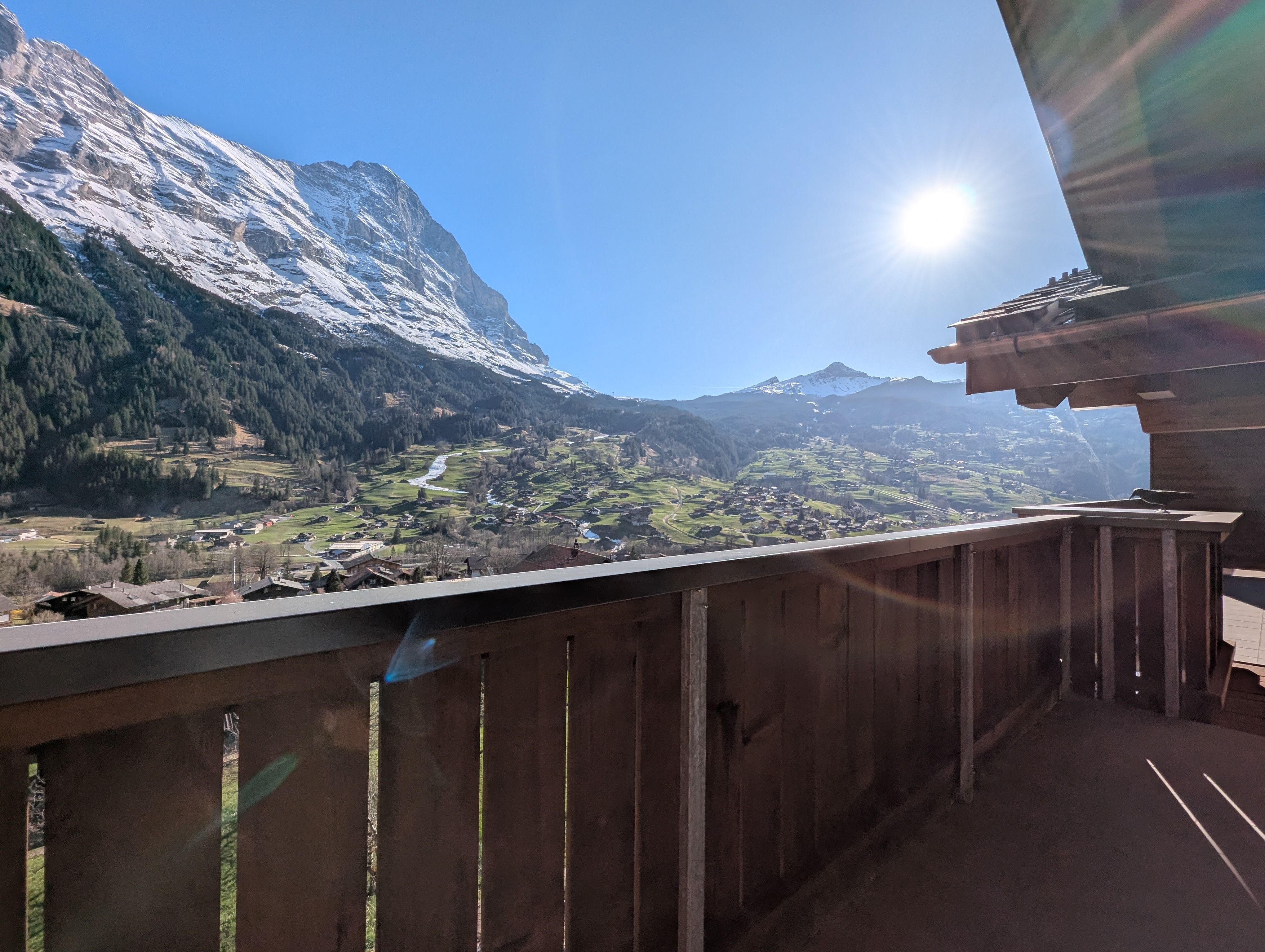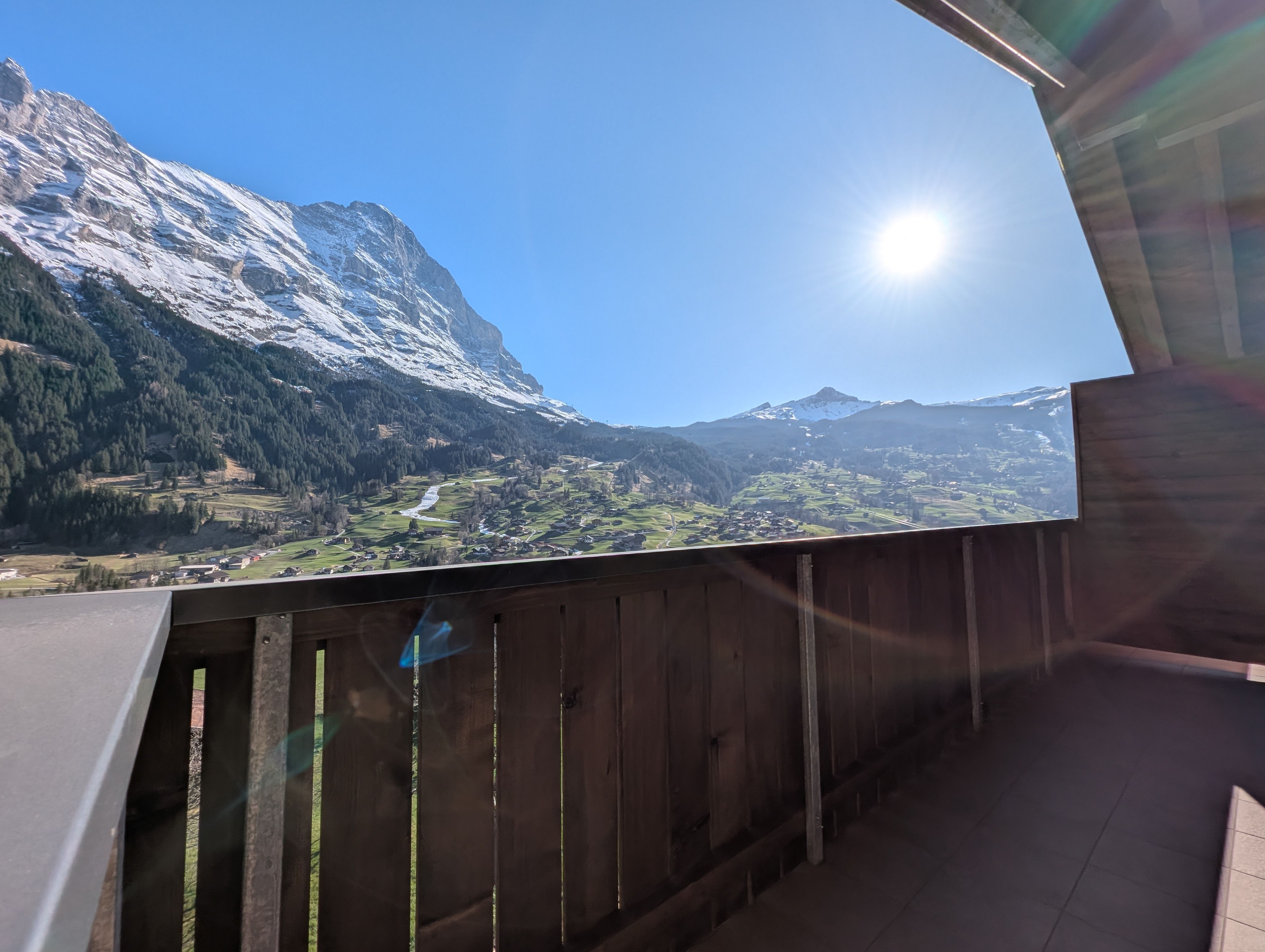 Die Wohnung genießt eine sonnige und zentrale Lage in Grindelwald, einem Dorf, das auf rund 1000m Höhe am Fuße des Eigers liegt. Das Dorfzentrum, der Bahnhof Grindelwald, Bushaltestellen sowie Einkaufsmöglichkeiten sind in nur wenigen Gehminuten erreichbar. Die Region besticht durch eine abwechslungsreiche Alpenlandschaft, umgeben von der imposanten Bergkulisse des Eigers, des Wetterhorns, des Mönchs und der Jungfrau. Eine Vielzahl von Ausflugsmöglichkeiten und Sportangeboten wie Bergsteigen, Eislaufen, Golfen, Klettern, Mountainbiking und Ski fahren sind in unmittelbarer Nähe möglich.