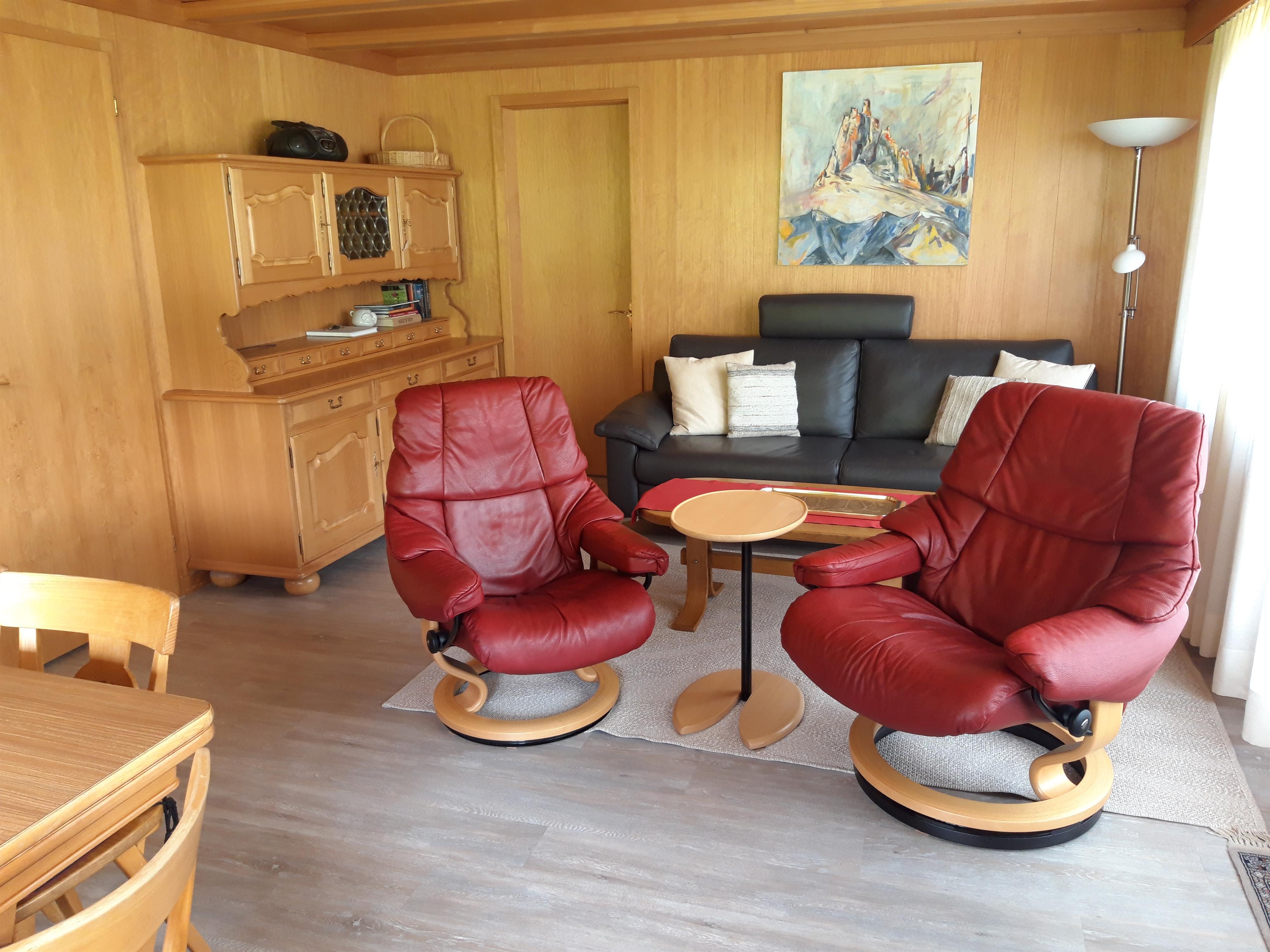 Gemütliches freistehendes Chalet an ruhiger Lage ausserhalb des Dorfes nahe des Skigebietes. Bushaltestelle zum Dorf oder zum Skigebiet (Bergläger/Silleren, Hahnenmoos) ca. 170m entfernt. Wie auch das an 365 Tagen im Jahr geöffnete Restaurant Des Alpes. Super Ausgangspunkt für Wanderungen. Wohnzimmer mit Sitzecke (1 Sofa und 2 Sessel), TV, DVD, VHS-Recorder, Radio. Moderne vollausgerüstete Küche mit Backofen, Mikrowelle, Geschirrspüler, Nespressokaffemaschine. 2 Schlafzimmer mit Doppelbett, jeweils trennbar und zu Zweibettzimmern umstellbar. 1 Schlafzimmer mit zwei Einzelbetten (total 6 Betten). Jedes Schlafzimmer mit eigenem Waschbecken. 1 Badezimmer mit Dusche/WC. 1 separates WC im EG. Balkon mit schöner Bergsicht mit Vormittags- und Nachmittagssonne, sowie Sitzplatz mit Abendsonne. Gartenmöbel vorhanden. 3 Parkplätze vorhanden. Haustiere nicht willkommen. Nichtraucherhaus.