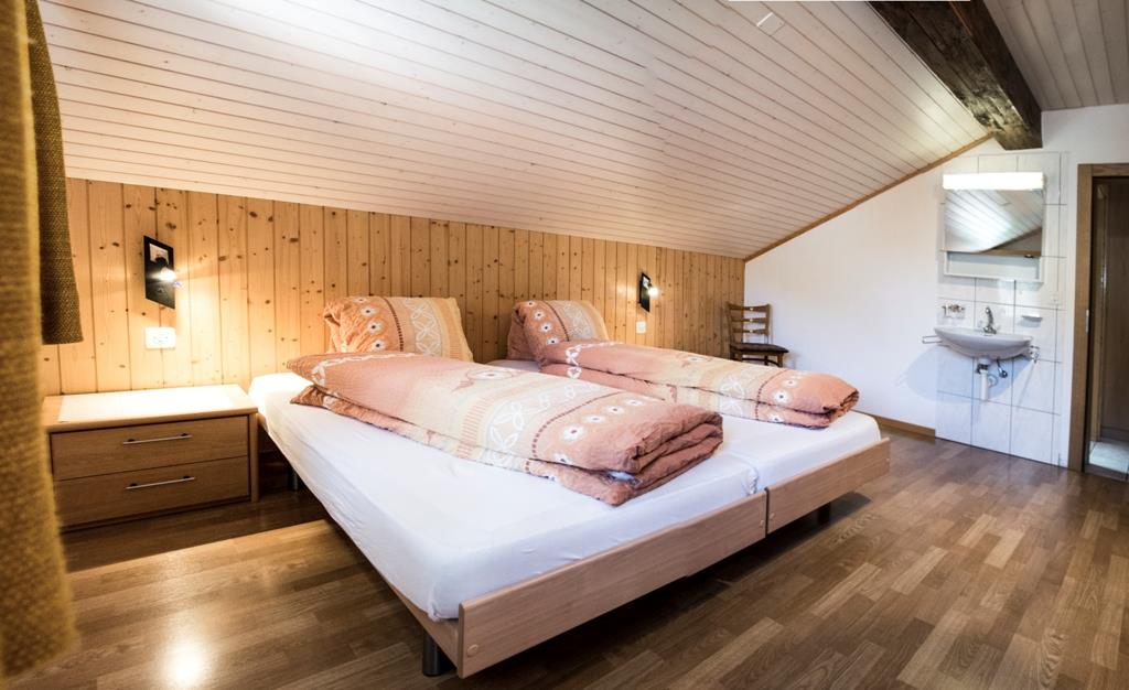 Die 5-Zimmerwohnung befindet sich im dritten Stock. Es gibt zwei Doppelzimmer und zwei Einzelzimmer. Die Wohnküche ist gut ausgestattet mit Geschirrspüler, Backofen, Mikrowelle, Kaffeemaschine (Kapseln), Filterkaffeemaschine, Raclette, Fondue und Toaster. Im Wohnbereich gibt es einen Fernseher, ein Radio und WLAN. Das Badezimmer besteht aus einer Dusche und einem WC, zusätzlich gibt es ein separates WC. Der Balkon ist nach Süden ausgerichtet.