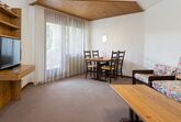 2-Zimmer-Wohnung 45 m2. Komfortabel und gemütlich eingerichtet: grosses Wohn-/Esszimmer mit 1 Doppeldiwanbett (2 x 90 cm, Länge 200 cm), Essecke und Kabel-TV (Flachbildschirm). 1 Doppelzimmer mit 1 Doppelbett (2 x 90 cm, Länge 200 cm), Kabel-TV (Flachbildschirm). Küche (3 Kochplatten, Backofen, Wasserkocher, elektrische Kaffeemaschine). Dusche/WC. Balkon, Südlage und Westlage. Terrassenmöbel. Sicht auf die Landschaft. Zur Verfügung: Haartrockner. Internet (WLAN, gratis). Bitte beachten: Nichtraucher-Unterkunft. 1 kleines Haustier/Hund erlaubt. Wichtig zu Wissen: pro Person 1 x Badetuch für den Poolbereich. Auf Anfrage möglich, 1 kleines Haustier extra (Hund). NL-