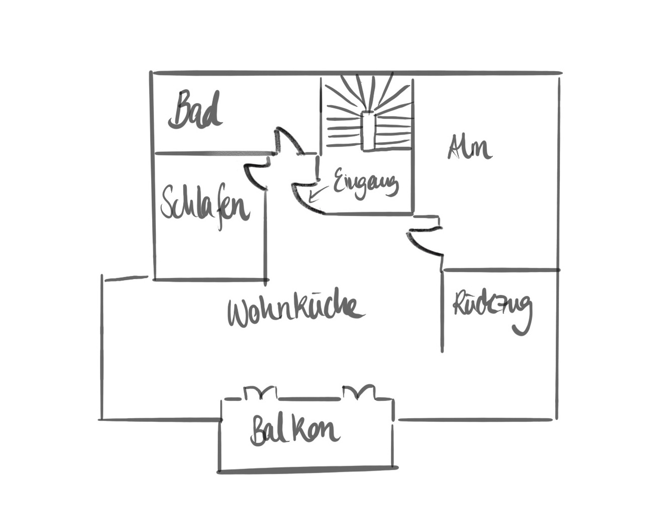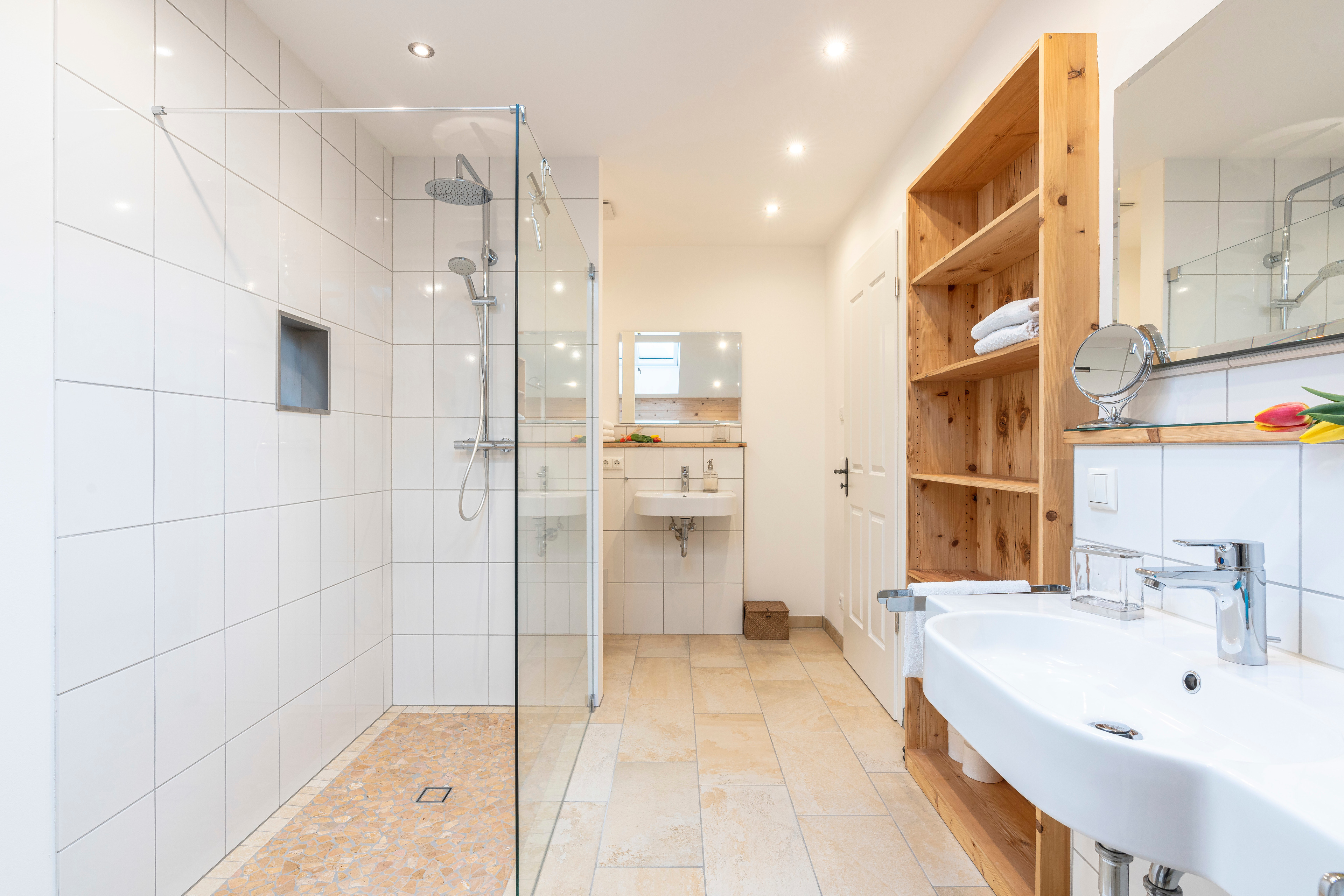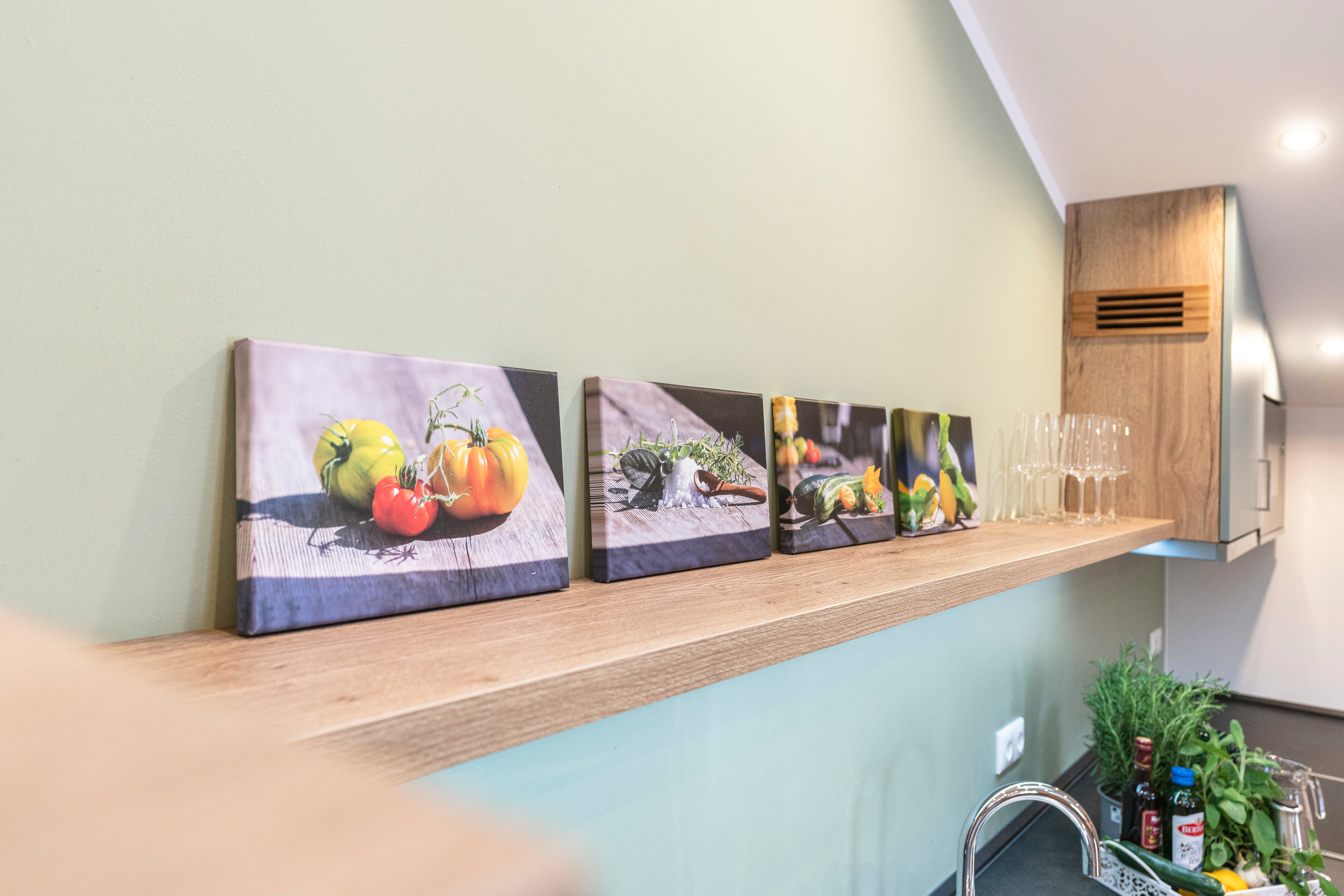 Die Ferienwohnung hat neben dem Schlafzimmer mit Doppelbett ein schönes Bad, sowie eine großzügige Wohnküche. 2 Türen führen hinaus auf die einladende Loggia, die im Sommer wie im Winter vom Wind geschützt zum Verweilen einlädt.
