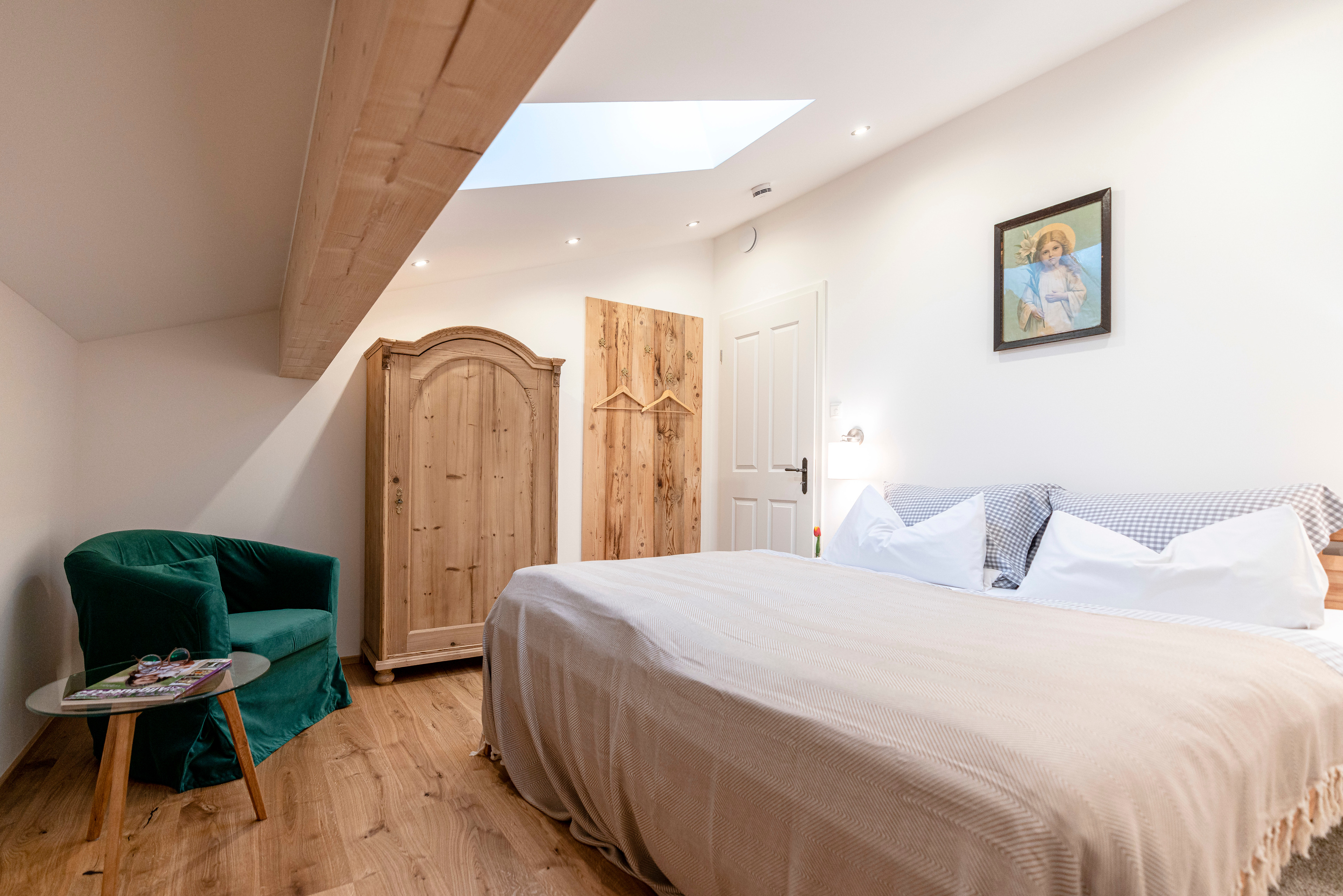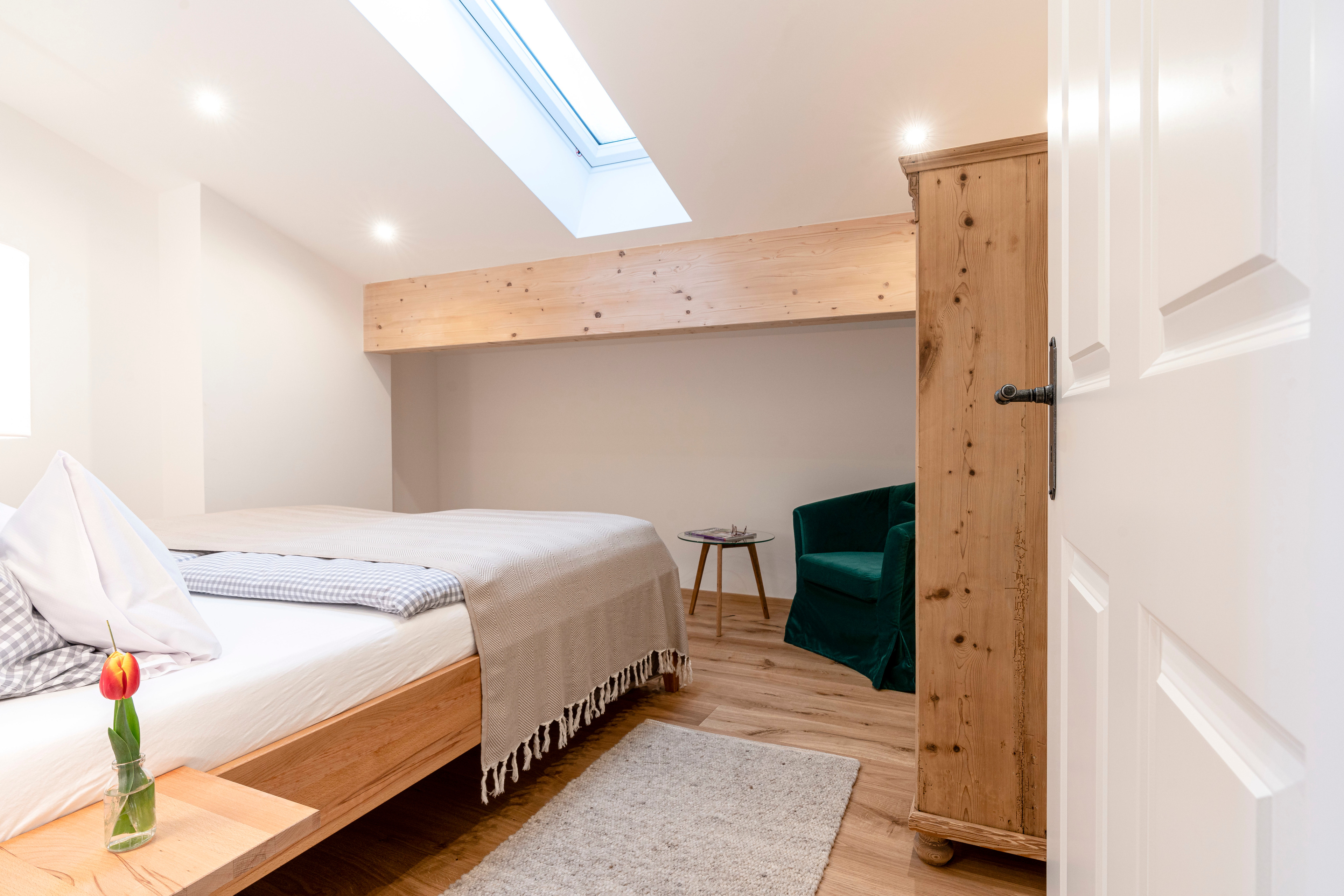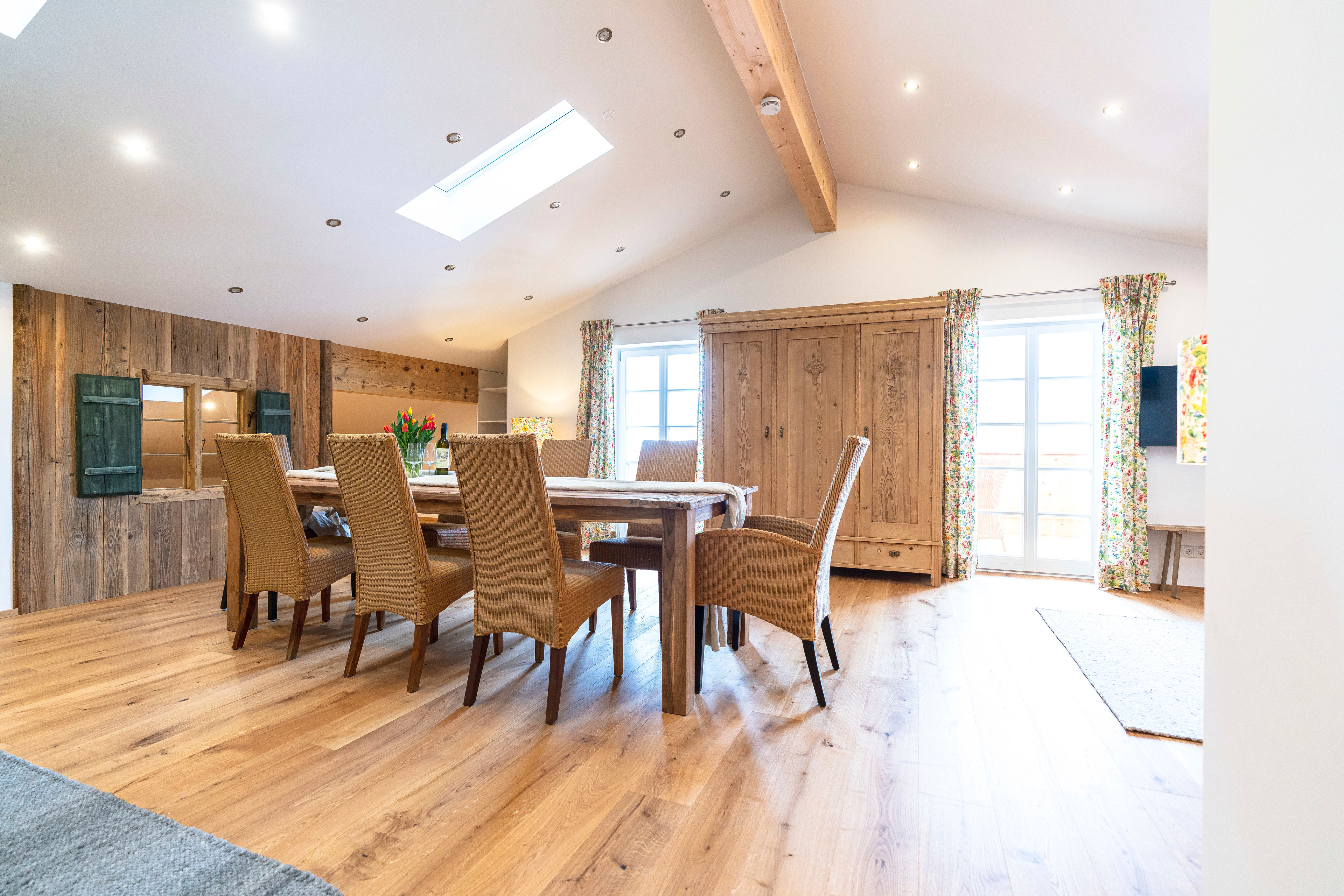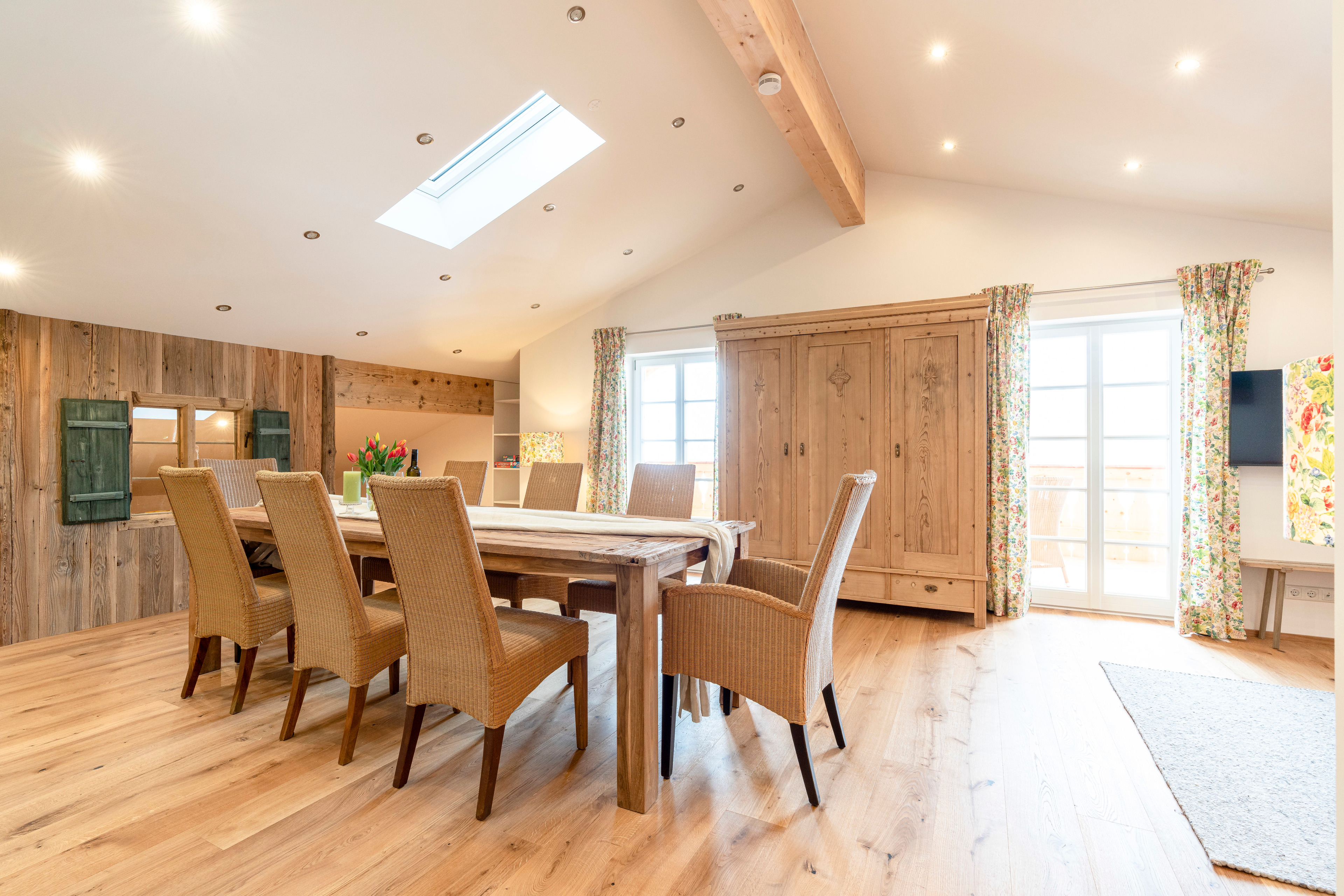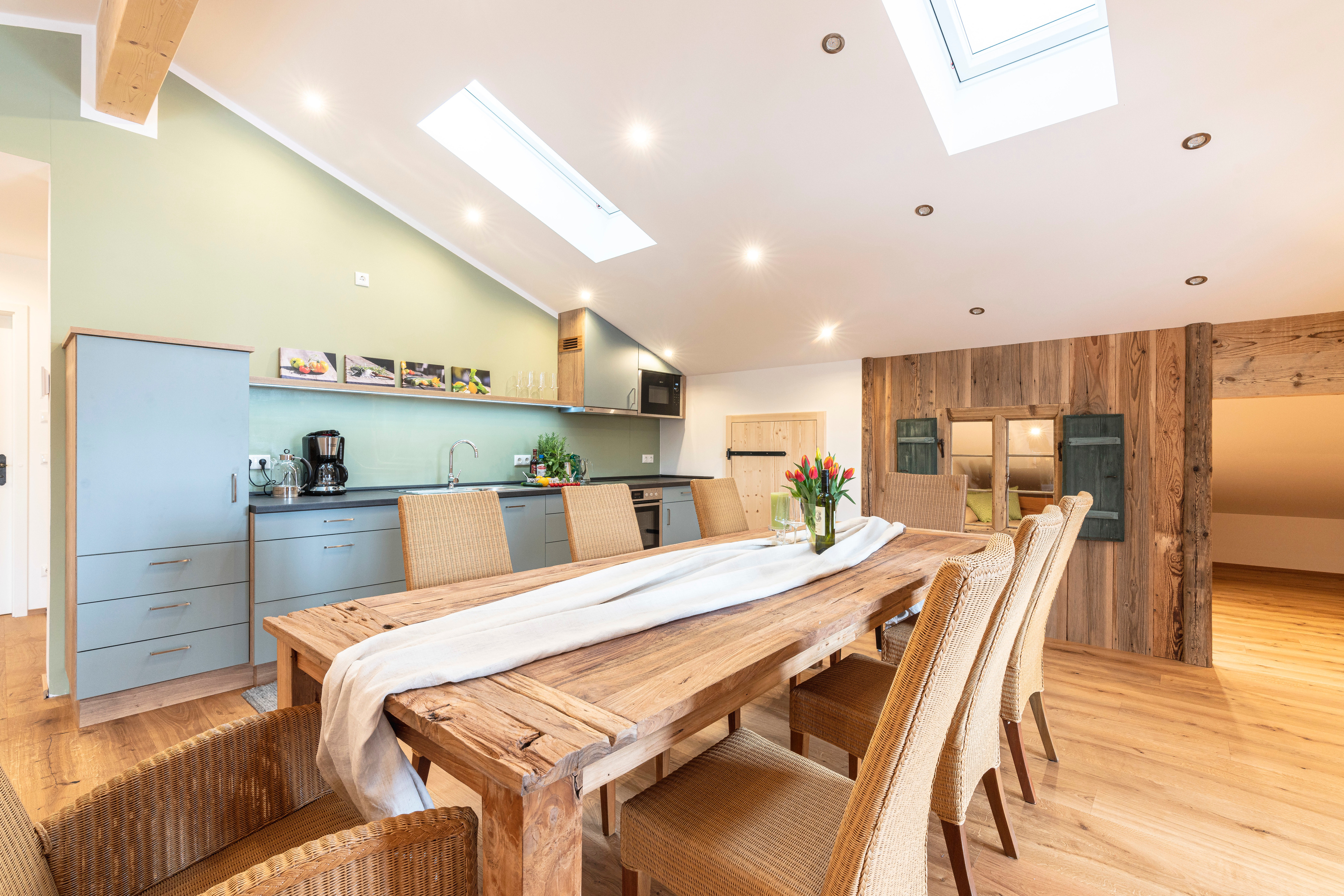 Zusätzlich Schlafplatz für 2 Personen bietet ein ausziehbares Sofa, sowie die Alm unter der Dachschräge - eine liebevoll aus Altholz angefertigte Matratzenstraße auf der weitere 4 Personen schlafen können.