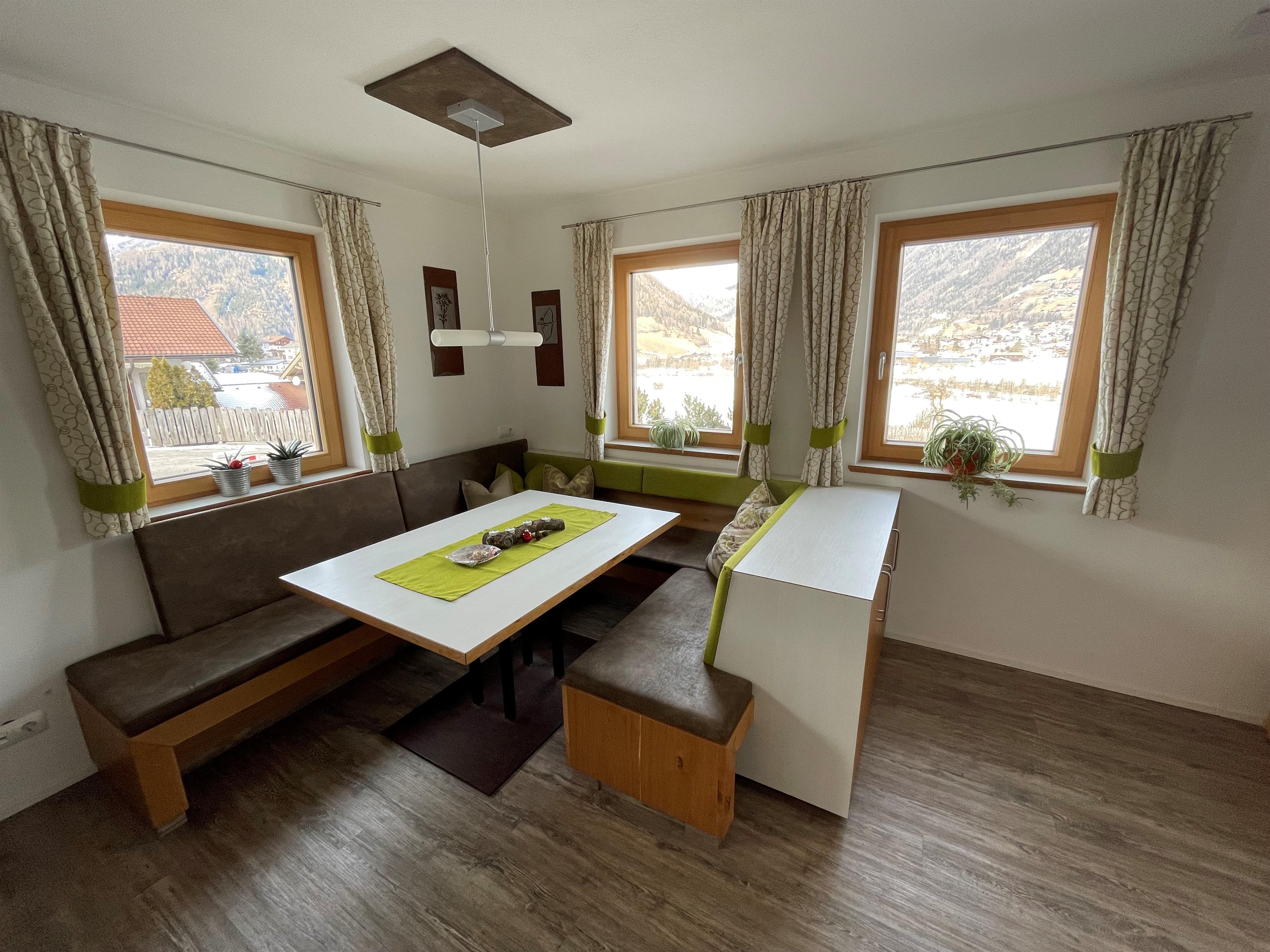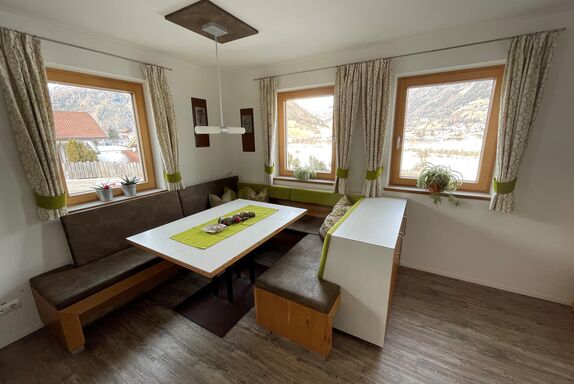 Die neuwertige Ferienwohnung ist 51 m² groß und mit Wohnküche mit Eckbank, Schlafzimmer, Dusche/WC, Weinschrank, gratis W-Lan und TV ausgestattet. In der Ferienwohnung gibt es keinen Teppichboden. Bergblick, Bodenheizung und kostenloser Parkplatz.