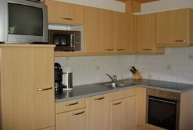 Wohlig warme Ferienwohnung (3 separate Schlafzimmer), Holztäfelung aus naturbelassenem Fichtenholz. Sonnig und lichtdurchflutet. Küche ist komfortabel ausgestattet: Vier-Plattenherd, Backofen... Badezimmer mit Dusche und zusätzlich ein separates WC.
