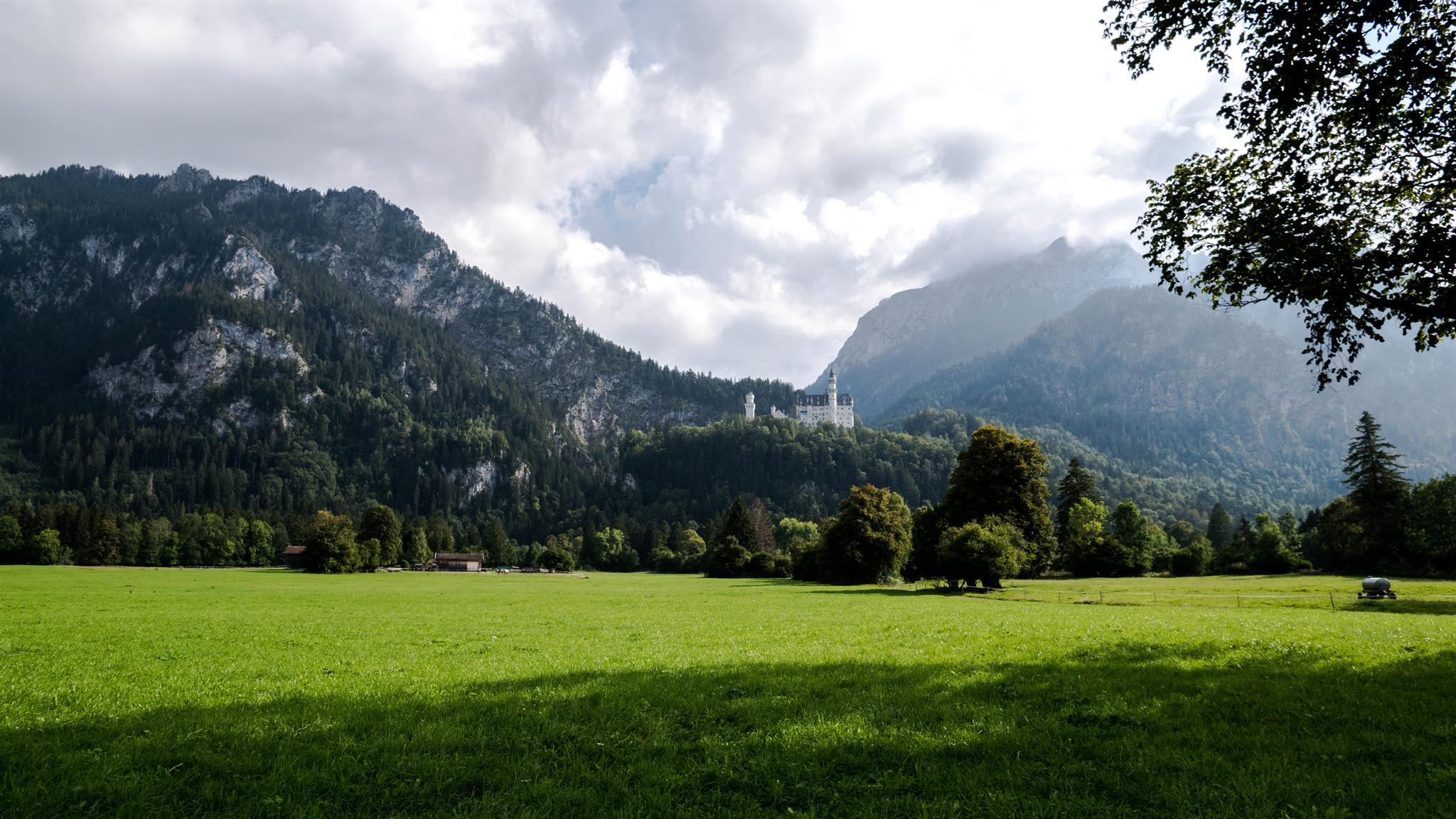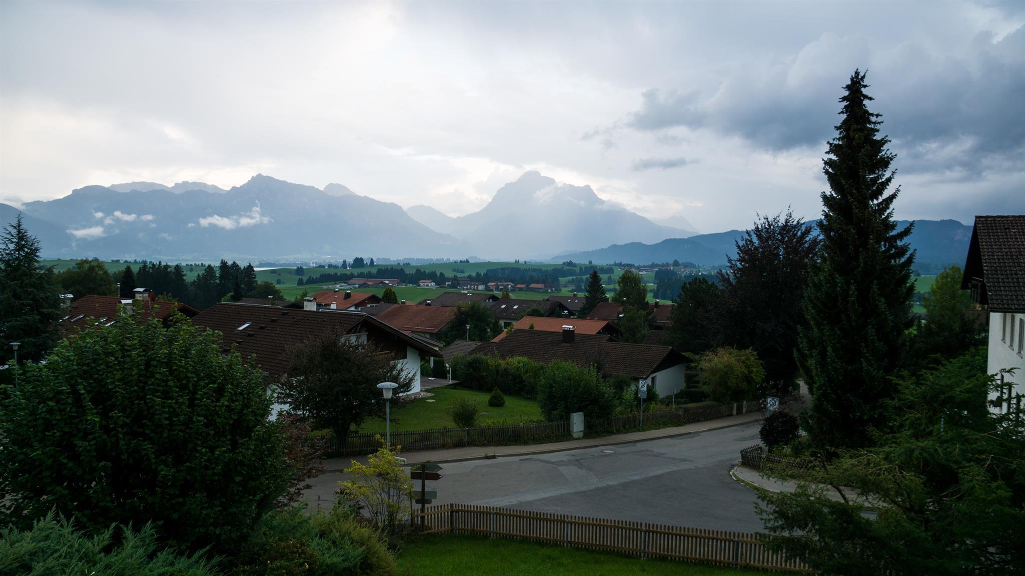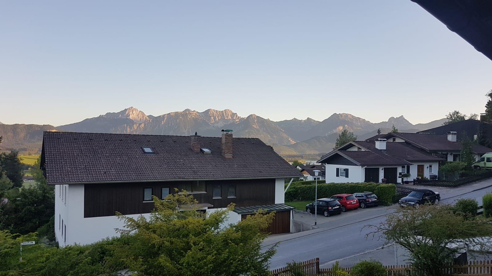 Die wunderschöne gr. 3 Zimmer Wohnung liegt im ersten Stock. Direkt vom Wohnzimmer und dem Schloßblickschlafzimmer haben Sie Zugang zu dem großen Süd Balkon der ihnen einen unvergesslichen Ausblick auf die königlichen Schlösser Neuschwanstein und Hohenschwangau , Hopfensee Forggensee sowie die gesamte Bergkette bietet.