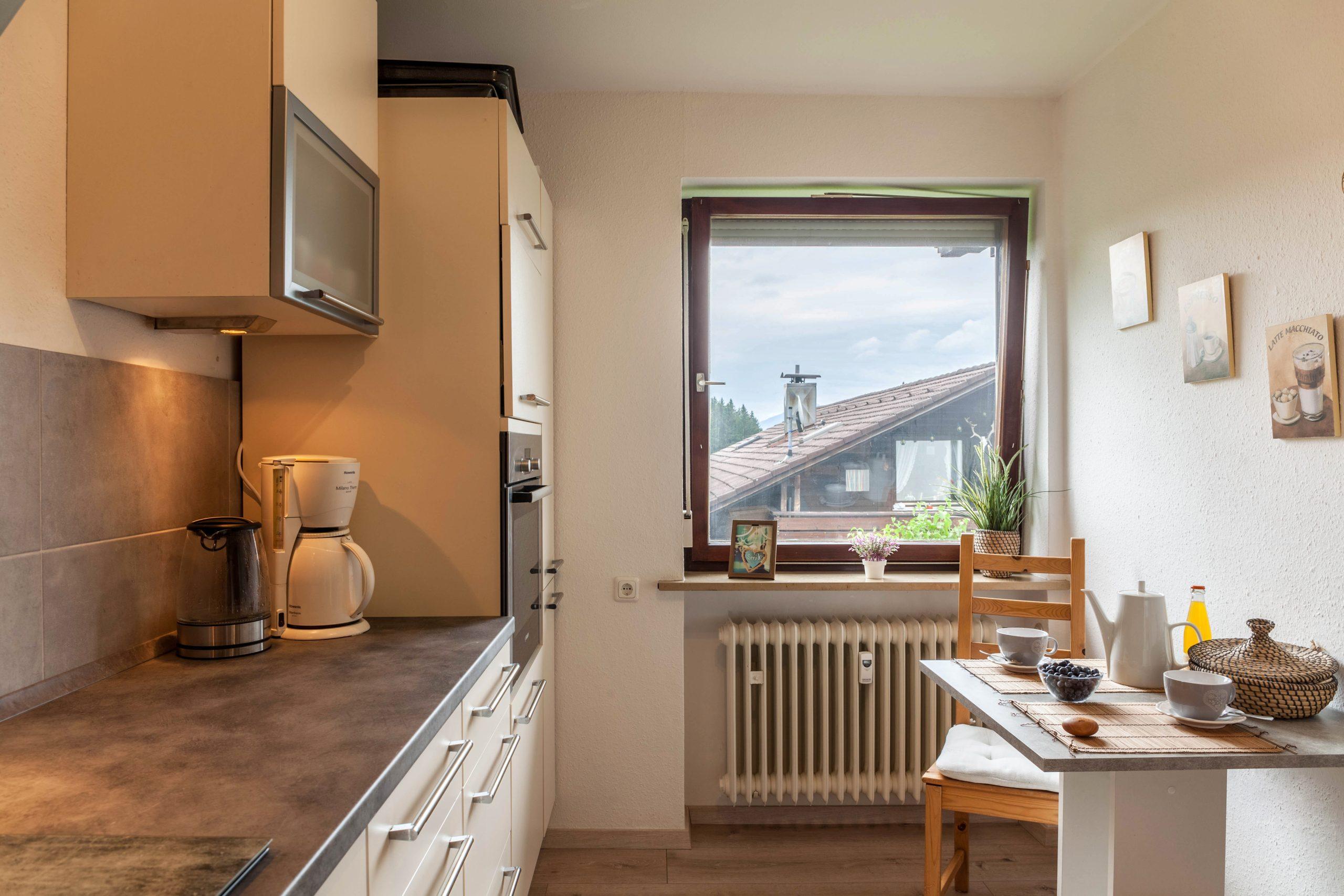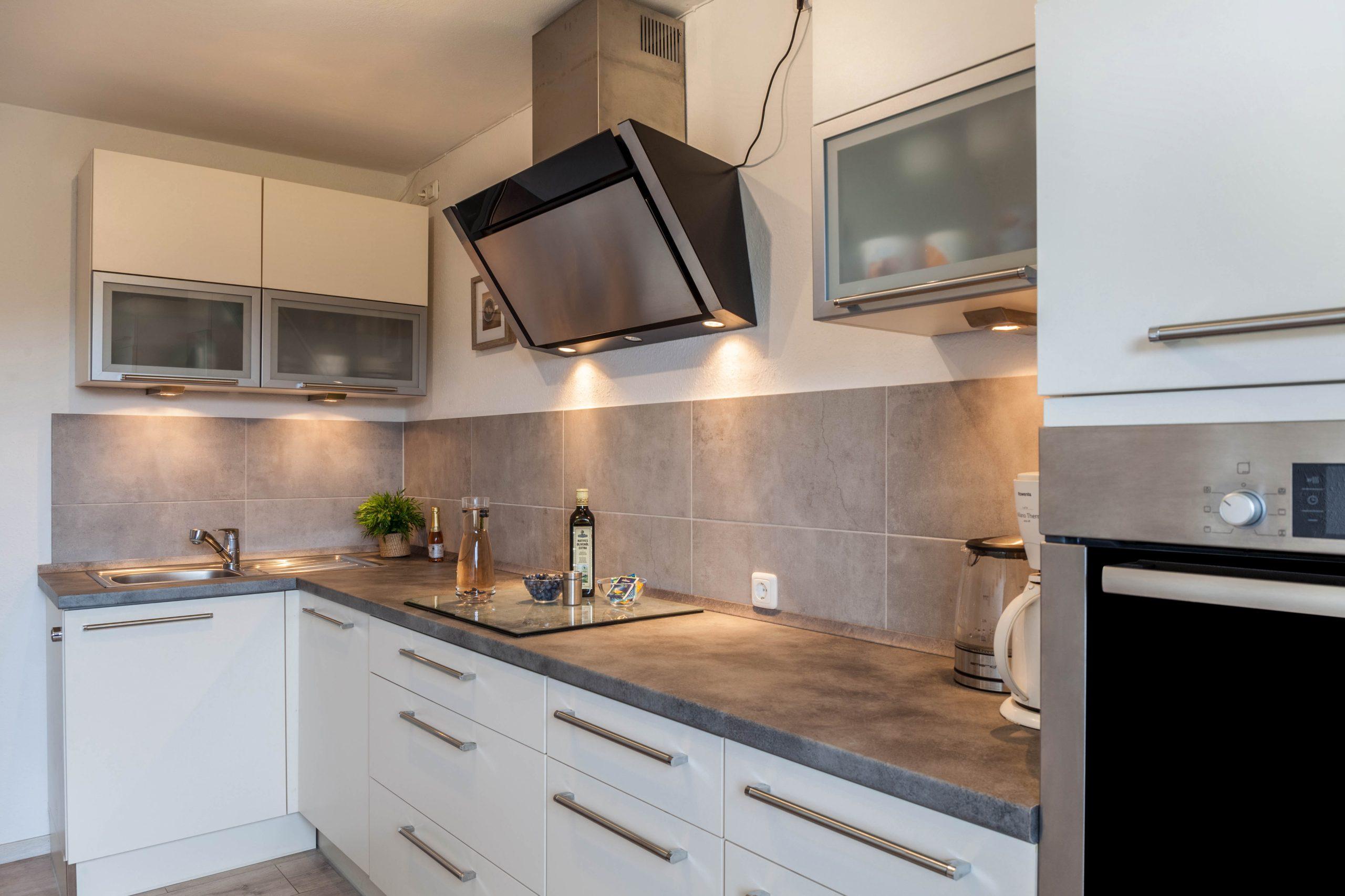Es gibt eine voll ausgestattete Küche mit großem Cerankochfeld, großem Backofen Minibackofen ,großem Kühl-Gefrierschrank, einer gr. Spülmaschine mit Aquastop sowie eine Kaffeemaschine und einenToaster