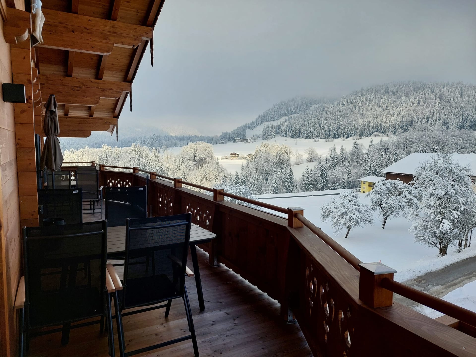 Durch die angenehme Lage in der Nähe vom Walchsee steht einem Skiurlaub nichts mehr im Weg. Nach einem Skitag oder einer Winterwanderung tut eine Tasse warmen Kakao auf dem großem Balkon des Appartments mit der hofeigenen Milch Körper und Seele gut.