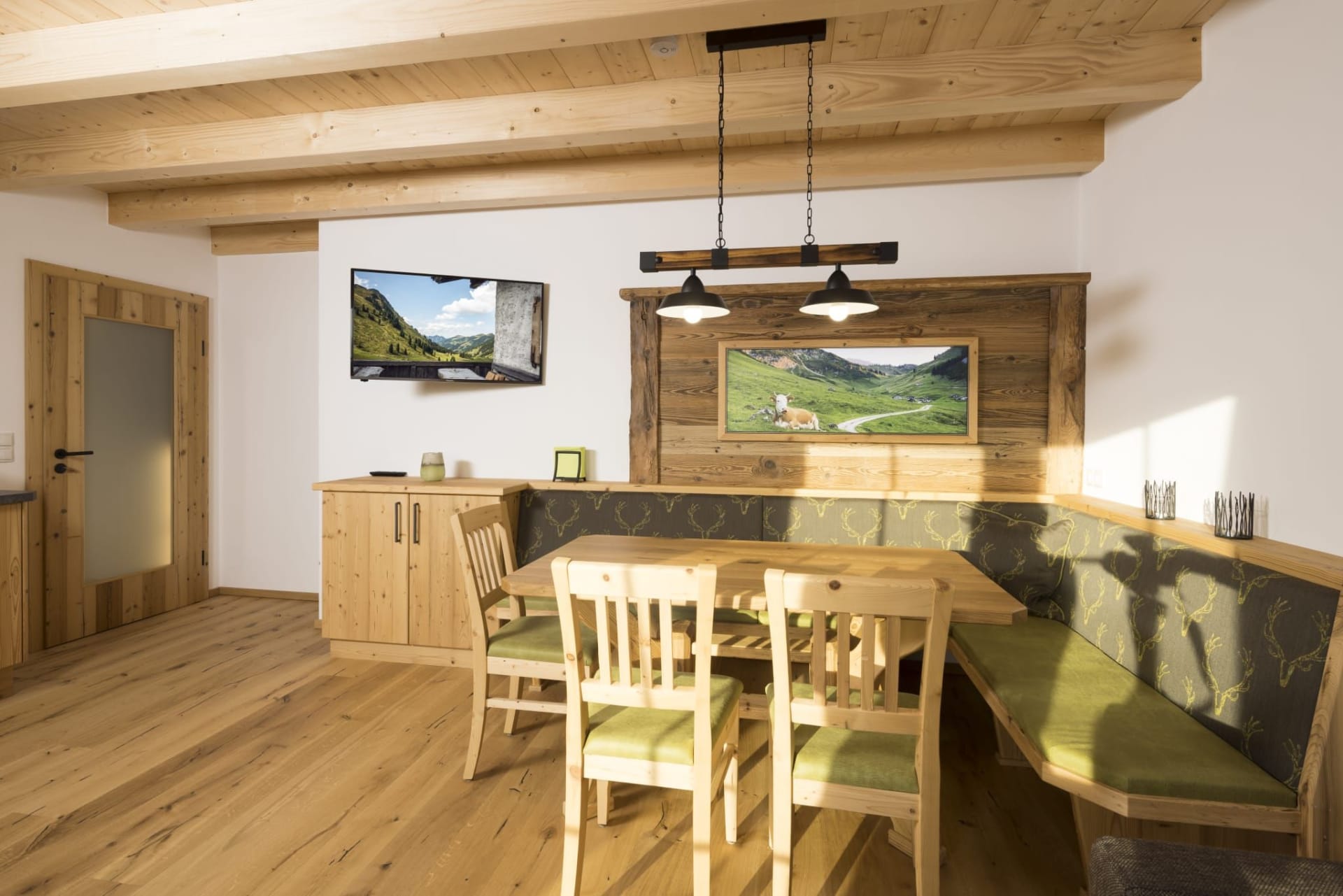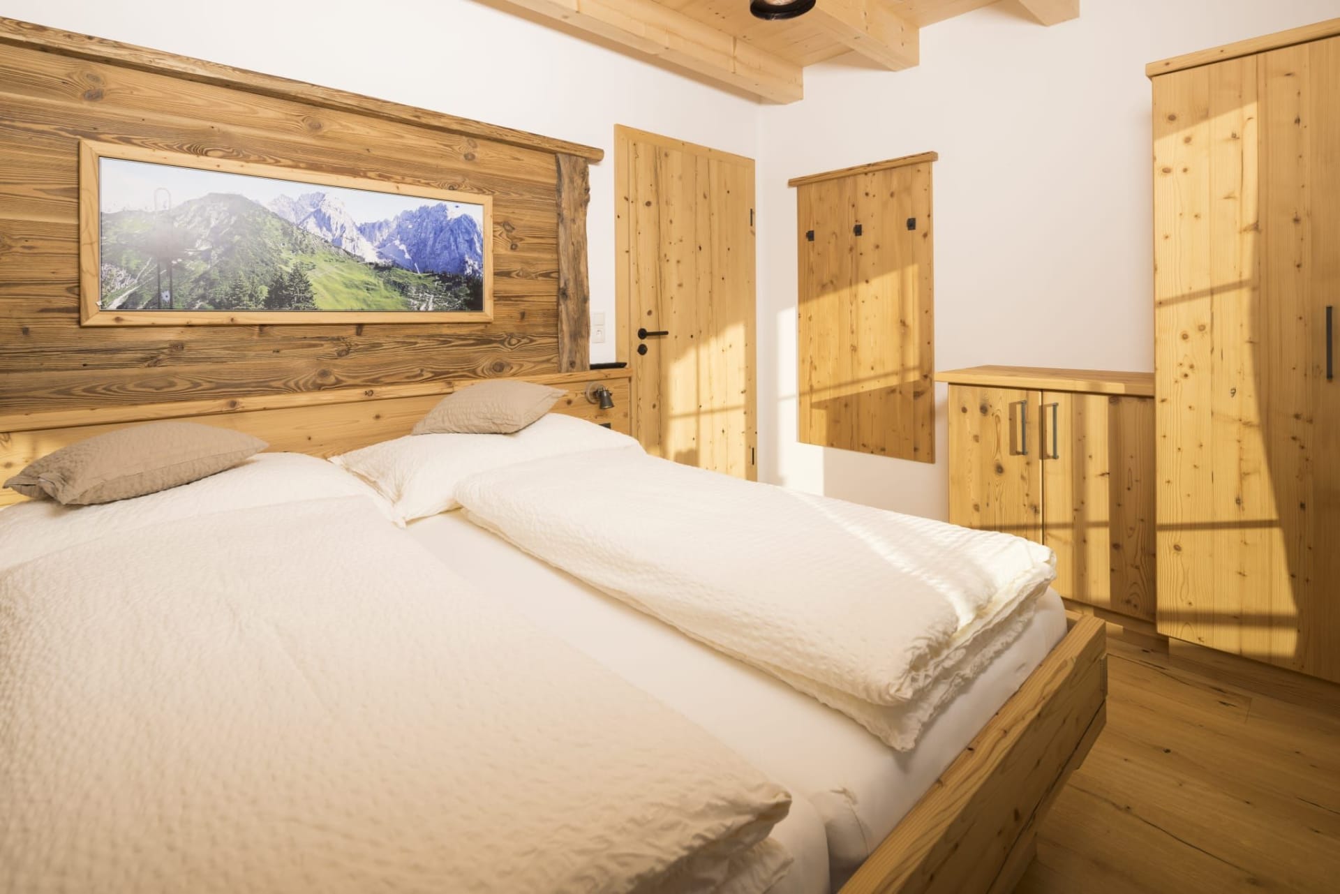 Das Appartement Feldalm bietet Platz für bis zu 6 Personen. Es verfügt über zwei geräumige Schlafzimmer mit Doppelbetten und einer Ausziehchouch in der Wohnküche.