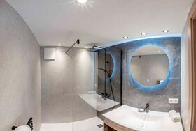 Gestärkt vom Frühstücksbuffet starten Sie den Tag entweder zu Fuß zu der nahegelegenen Seilbahn, oder Sie lassen sich ganz bequem von der kleinsten Luftkissenbahn der Welt zu den Liften bringen.