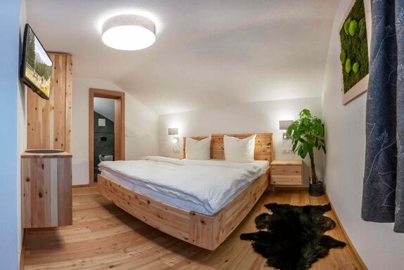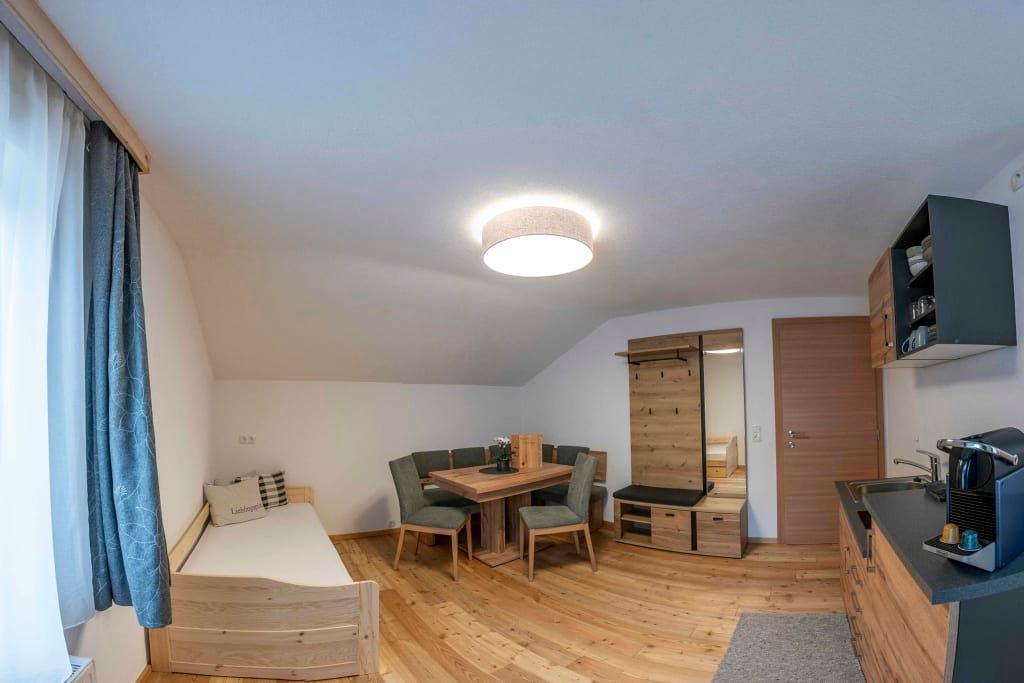 Das großzügige Loft besticht durch seine gemütliche Einrichtung mit natürlichen Materialien und viel Liebe zum Detail. Es bietet besonders viel Platz und ist ideal für Gäste, die sich gerne ausbreiten, aber dennoch den Komfort eines herzhaften Bauernhof-Frühstücks genießen möchten.