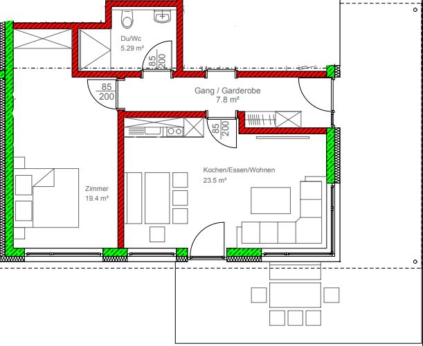 Euch erwartet ein hochwertig eingerichtetes 55qm großes Neubau-Panorama-Appartment für 1-2Personen mit eigenem Eingang und 30qm großer, teils überdachter Terrasse. Der Wohn-Essbereich ist offen, praktisch und bequem. Die Küche hält gängige Küchenutensilien sowie eine Spülmaschine bereit. Das Schlafzimmer ist großzügig gehalten mit Doppelbett und Schreibtisch. Holzböden. Bodenebene Dusche im Bad.