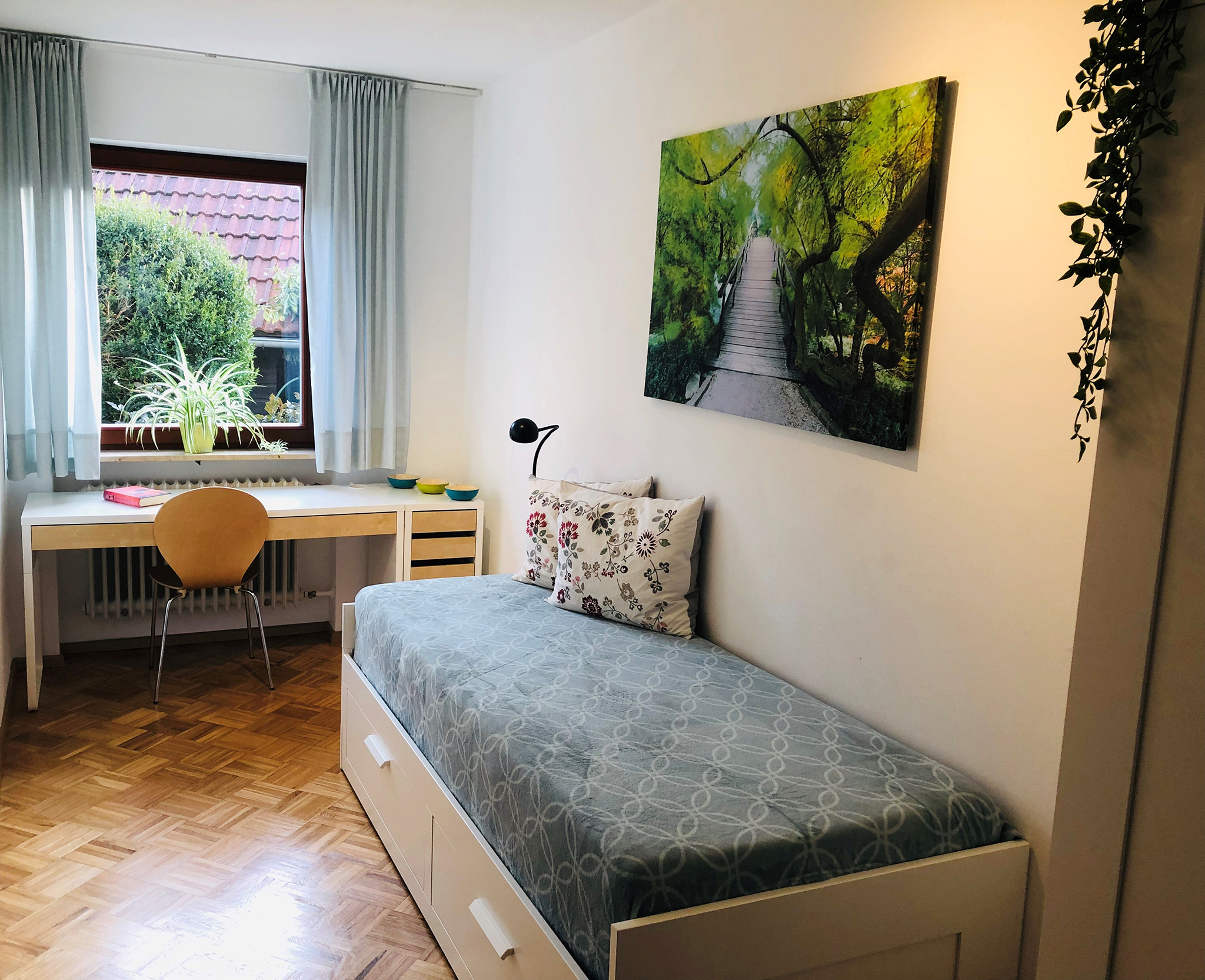 Die Wohnung liegt in einem ruhigen Wohngebiet in nur 5 Gehminuten zum See, Bäcker, Metzger, Bahnhof, Supermarkt, Altmühl Informationszentrum, Vogelinsel und Gastronomie (Fränkisch, Griech., Ital.) Im Preis inklusive sind bezogene Bettwäsche und Handtücher.