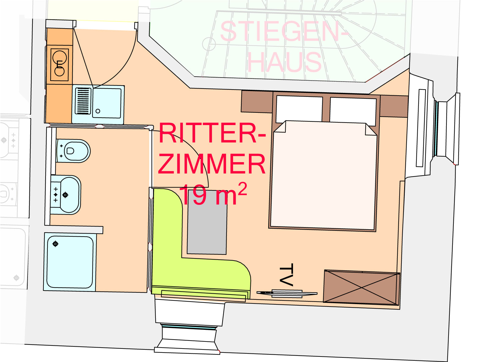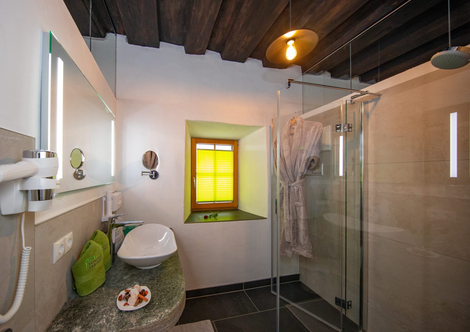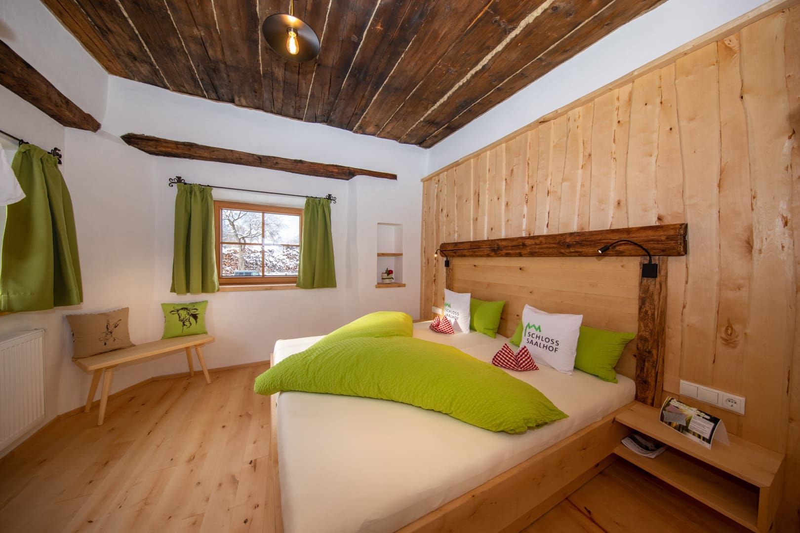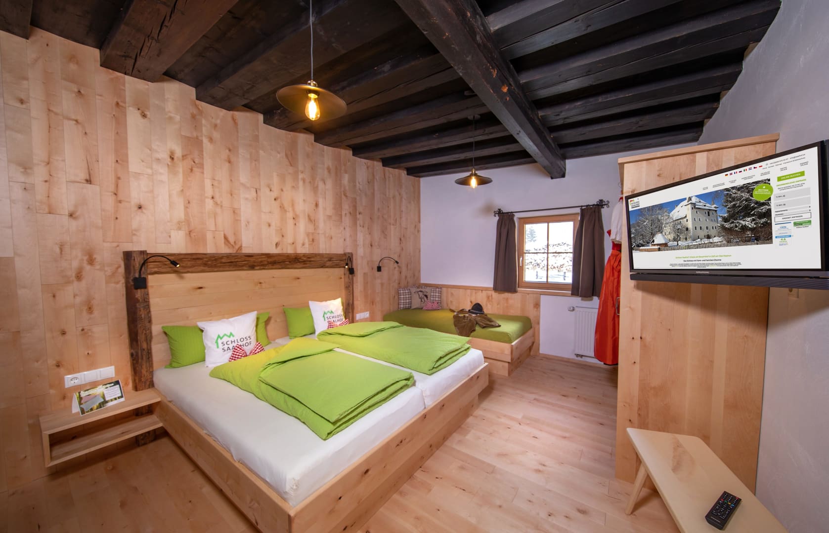 Das 8. Schlafzimmer ist das Dachkammerl, ein Doppelzimmer mit Küchenzeile und Klappbett (160x200cm) im 2. Stock, das optional dazu gebucht werden kann.