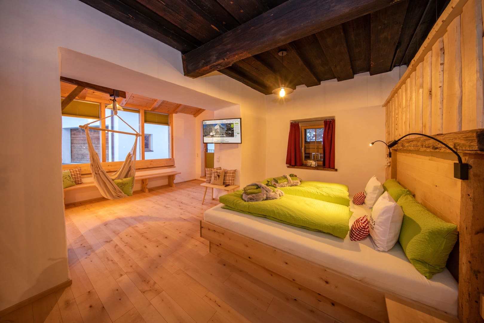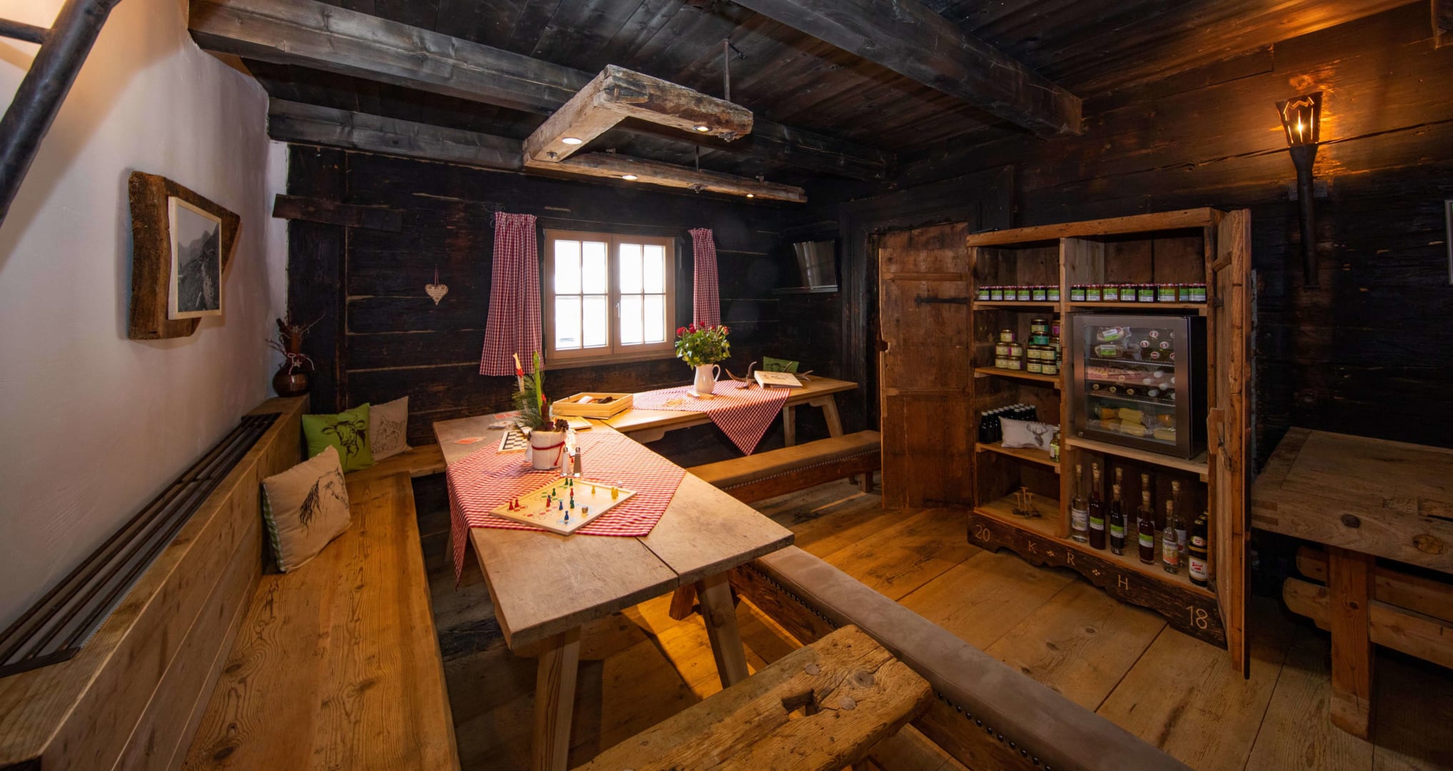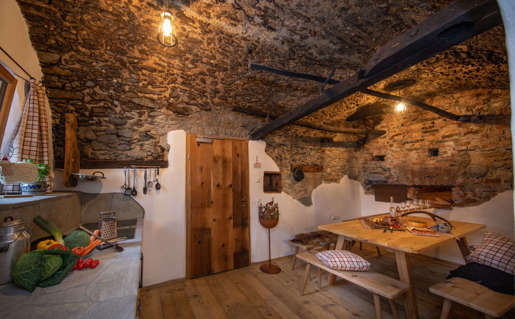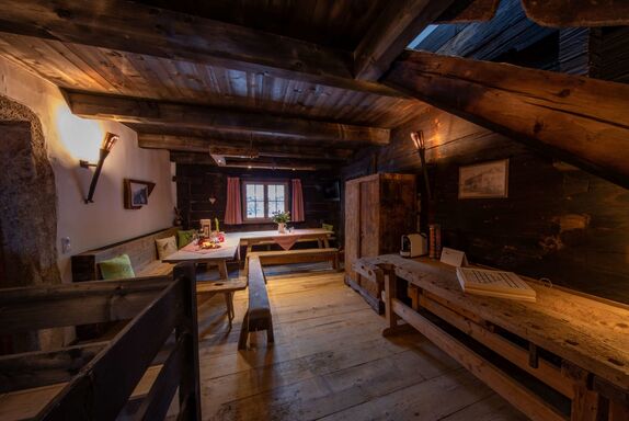 Es bietet mit 7-8 vollwertigen Schlafzimmern, 5 Bädern, 4 separaten WCs, einem großen gemeinsamen Essbereich und Lounge im 1. Stock Gruppen und Familien von 14 bis 27 Personen Platz. Die große Küche der Moarstube bietet sich zum gemeinsamen Kochen an. Trotzdem hat jede Familie einen eigenen Rückzugsbereich durch die Aufteilung in 4 Appartements: Schulzimmer, Backstube, Moarstube und Hiatakammer.