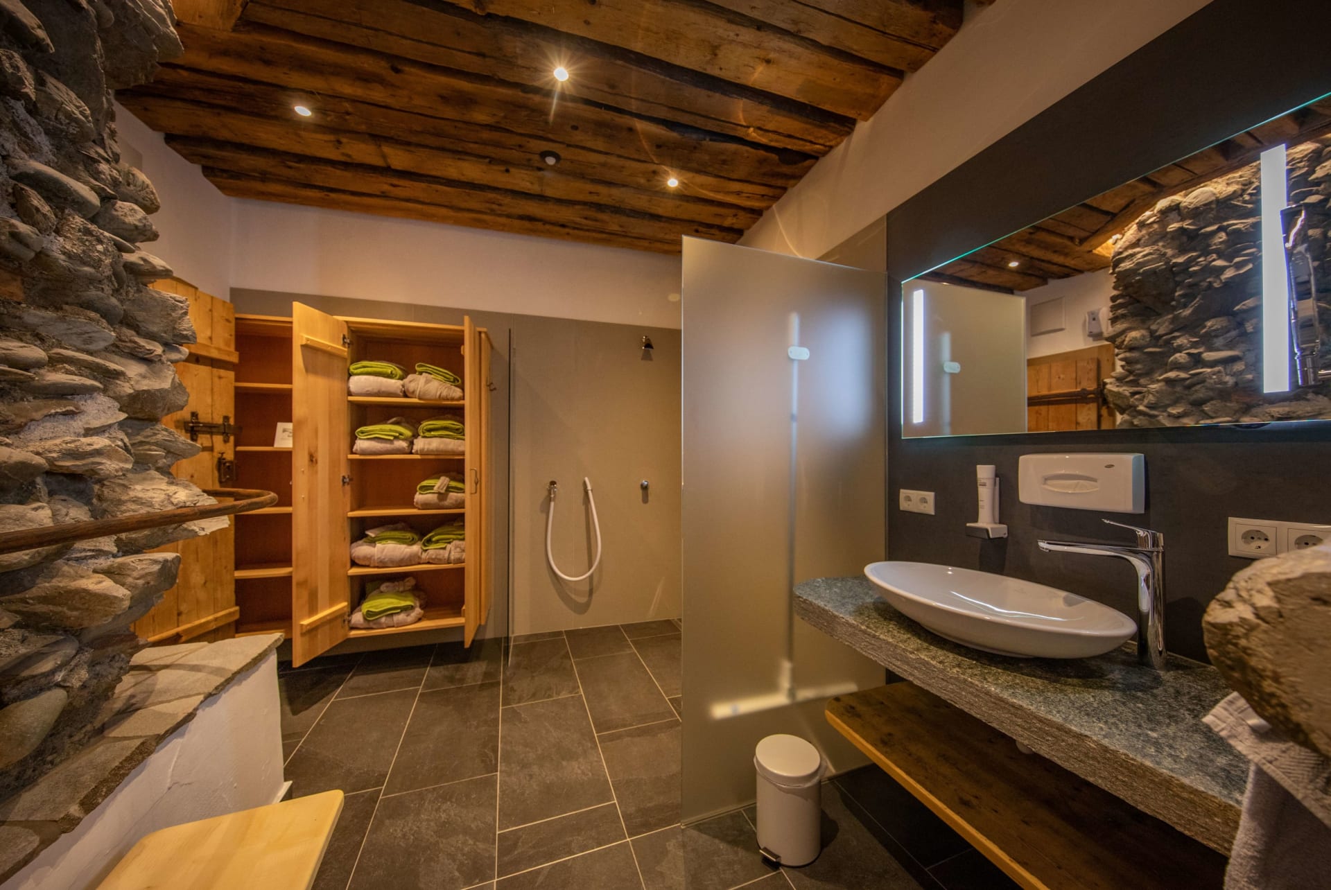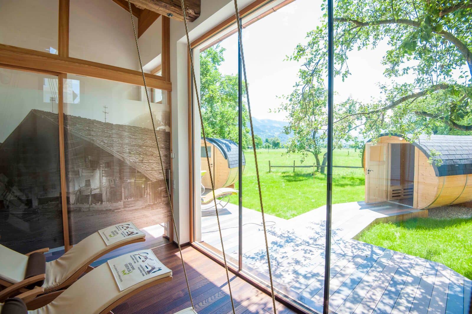 Lassen Sie den Alltag hinter sich in unserem Wellnessbereich mit Saunafassl, Infrarotkabine, Ruheraum mit Wellnessliegen und Schwaukelliegen mit großem Panoramafenster auf die Hohen Tauern. Oder nehmen Sie einfach ein Sonnenbad auf der großzügigen Terrasse. Auch unsere kleinen Gäste können den Wellnessbereich in Begleitung der Eltern nützen. Einen Leibademantel mit Saunatuch stellen wir gerne gegen Gebühr von € 5,- pro Aufenthalt zur Verfügung.
