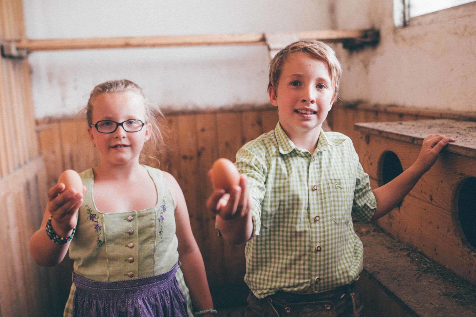 Starten Sie in den Tag mit den sorgfältig in Handarbeit produzierten, bäuerlichen Produkten, die man rund um die Uhr aus unserem Selbstbedienungskühlschrank erwerben kann. Dazu morgens ein Frühstücksei aus den Hühnernestern aufsammeln und täglich frische Milch genießen: Natur pur, die man schmeckt! Auf frische Semmeln und Gebäck muss man dank unseres Semmelservice nicht verzichten. Zahlreiche Wohlfühlleistungen versüßen Ihnen den Urlaub am Bauernhof in Maishofen. Zwischen wohliger Wellness-Entspannung und viel Platz für Familien erfahren Sie einzigartigen Hochgenuss und herzliche, persönliche Betreuung. Auf unserem Bauernhof erhalten die Jüngsten einen Blick hinter die Kulissen und können mitanpacken. Die Tiere warten bereits darauf gefüttert und gestreichelt zu werden.