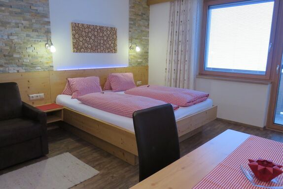 Gemütlich und hochwertig eingerichtetes Wohnstudio für 2 Personen mit nach Westen ausgerichteten Balkon und herrlichen Blick auf die Gletscher der Venedigergruppe. Allergiker freundlich ausgestattet. Die Fußbodenheizung sorgt für angenehme Wärme.