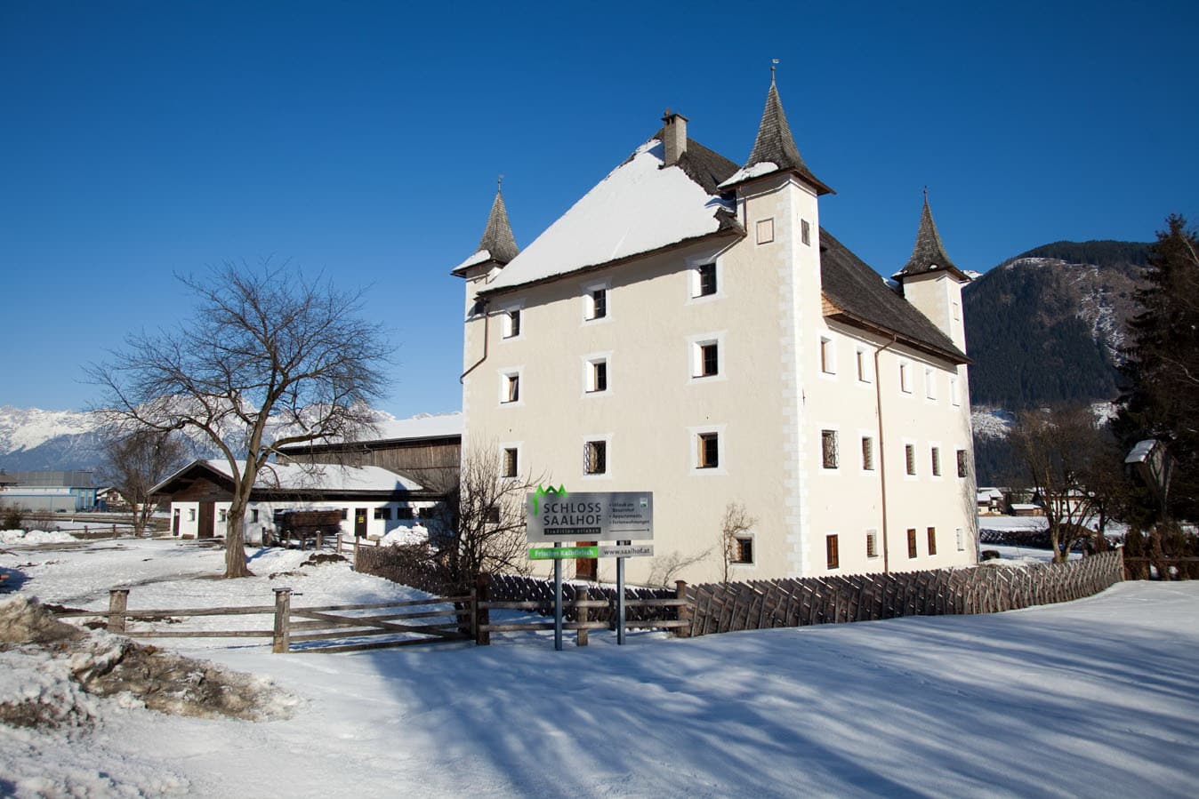 Zu den Prunkstücken von Schloss Saalhof zählt seine einzigartige, pittoreske Alleinlage zwischen sanften Grasbergen und schroffen Gipfeln. Die schönsten Skigebiete sind dennoch nur wenige Minuten entfernt. Gleich drei Skigebiete, reichlich Langlaufloipen und ein abwechslungsreiches Programm abseits der Pisten machen den Winter zum Hochgenuss.