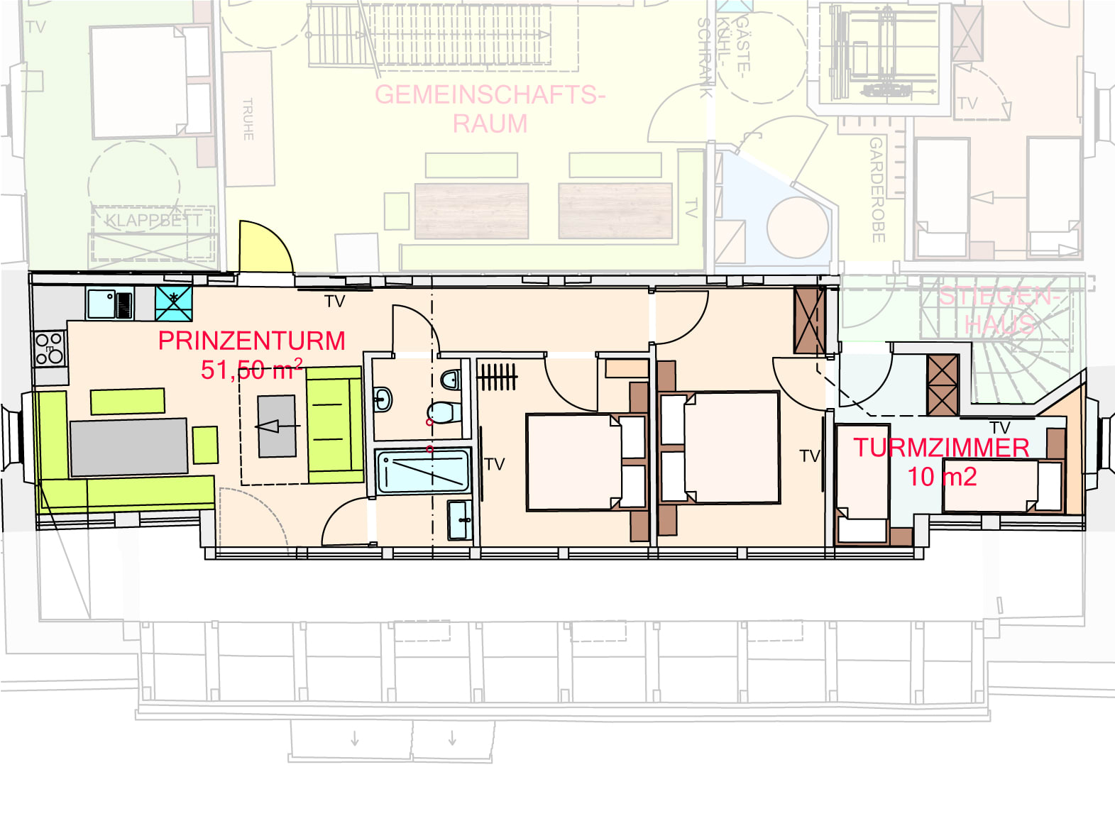 • ab der 5. Personen automatisch mit dem Turmzimmer erweitert