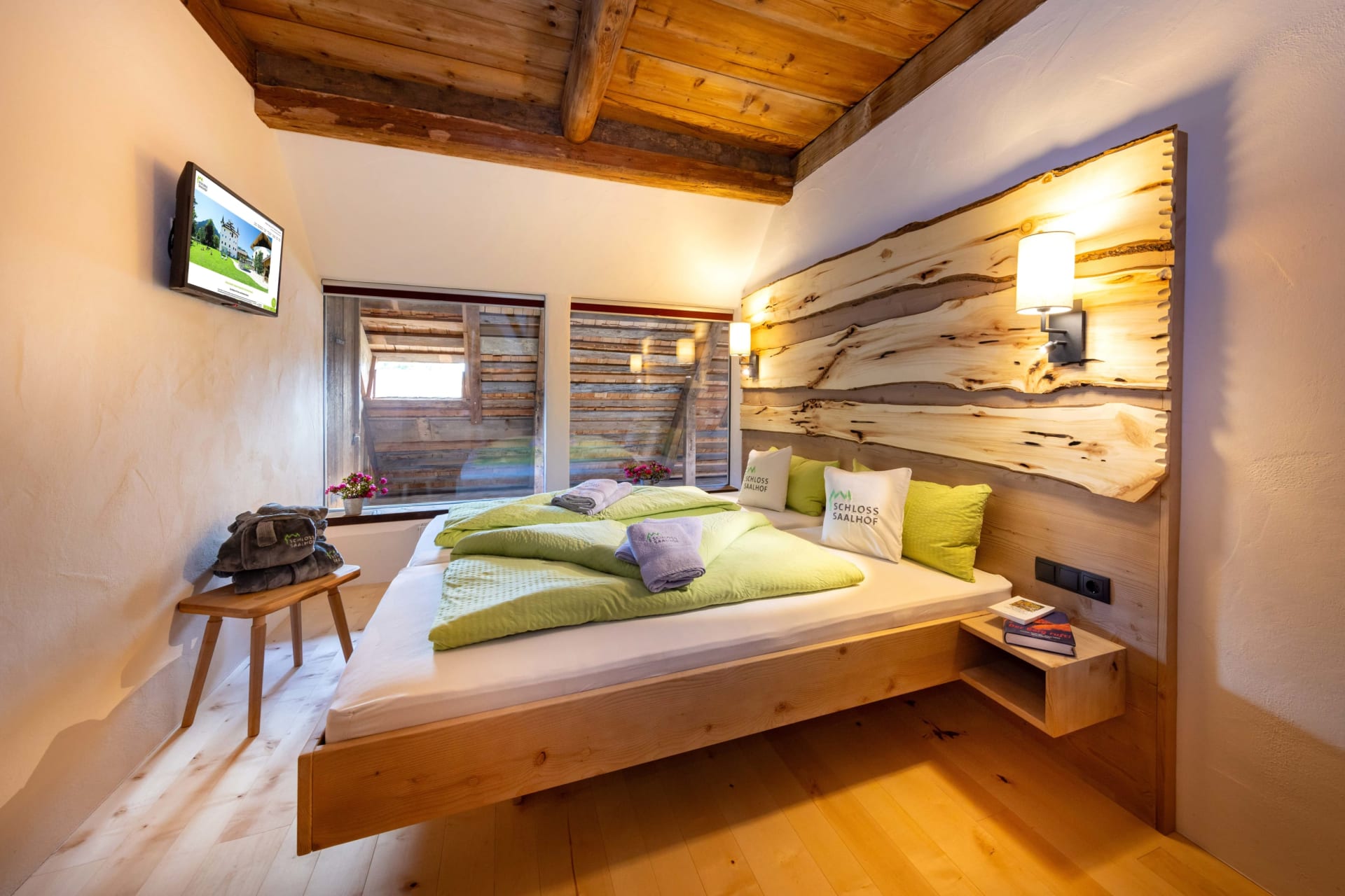 • 2-3 Schlafzimmer für müde Prinzen und Prinzessinnen: Entspannt in 2x Volholzdoppelbetten und in 2 separaten Betten (Turmzimmer) und genießt den erdenden Duft der Vollholzbetten, 3x SAT-TV