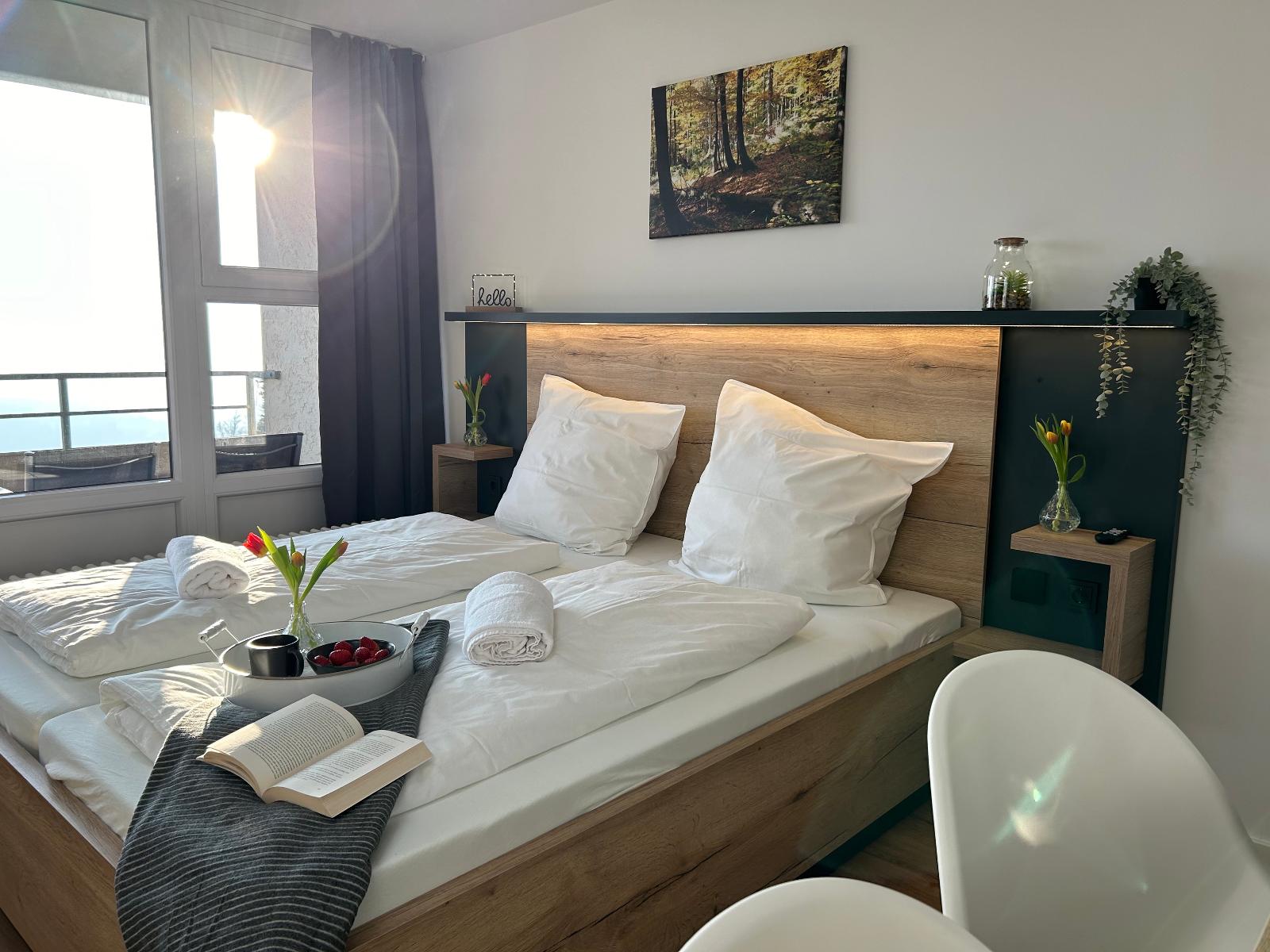 Moderne schöne 1-Zimmer Fewo mit 35 qm für 4 Personen, incl. Badezimmer, mit sonnigem Balkon und herrlichem Blick über den Bayerischen Wald.