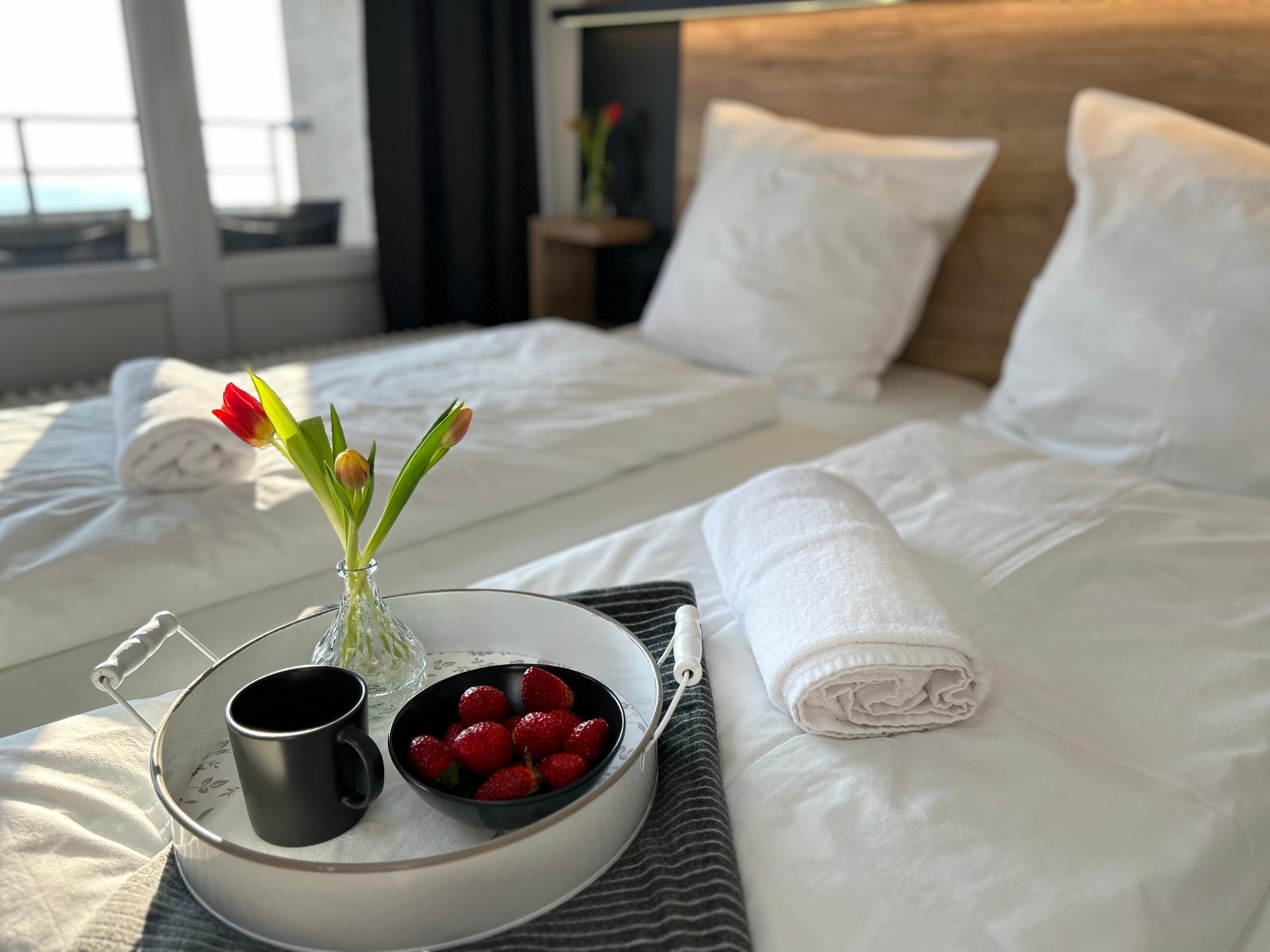 Der Wohnraum besteht aus einem gemütlichen Doppelbett (1,80m x 2,00m) und Schlafsofa (1,40m), dass sich ebenfalls sehr gut zum schlafen eignet. An dem großen Tisch mit 4 Stühlen lässt sich sehr gut sitzen und er lädt zum Frühstück, Mittag oder Abendessen ein. Bettwäsche, Handtücher und Geschirrtücher stehen kostenlos zur Verfügung.