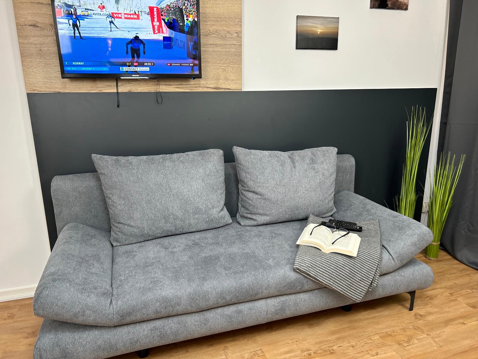 Das Appartement verfügt über einen Fernseher selbstverständlich ist WLAN kostenlos verfügbar.