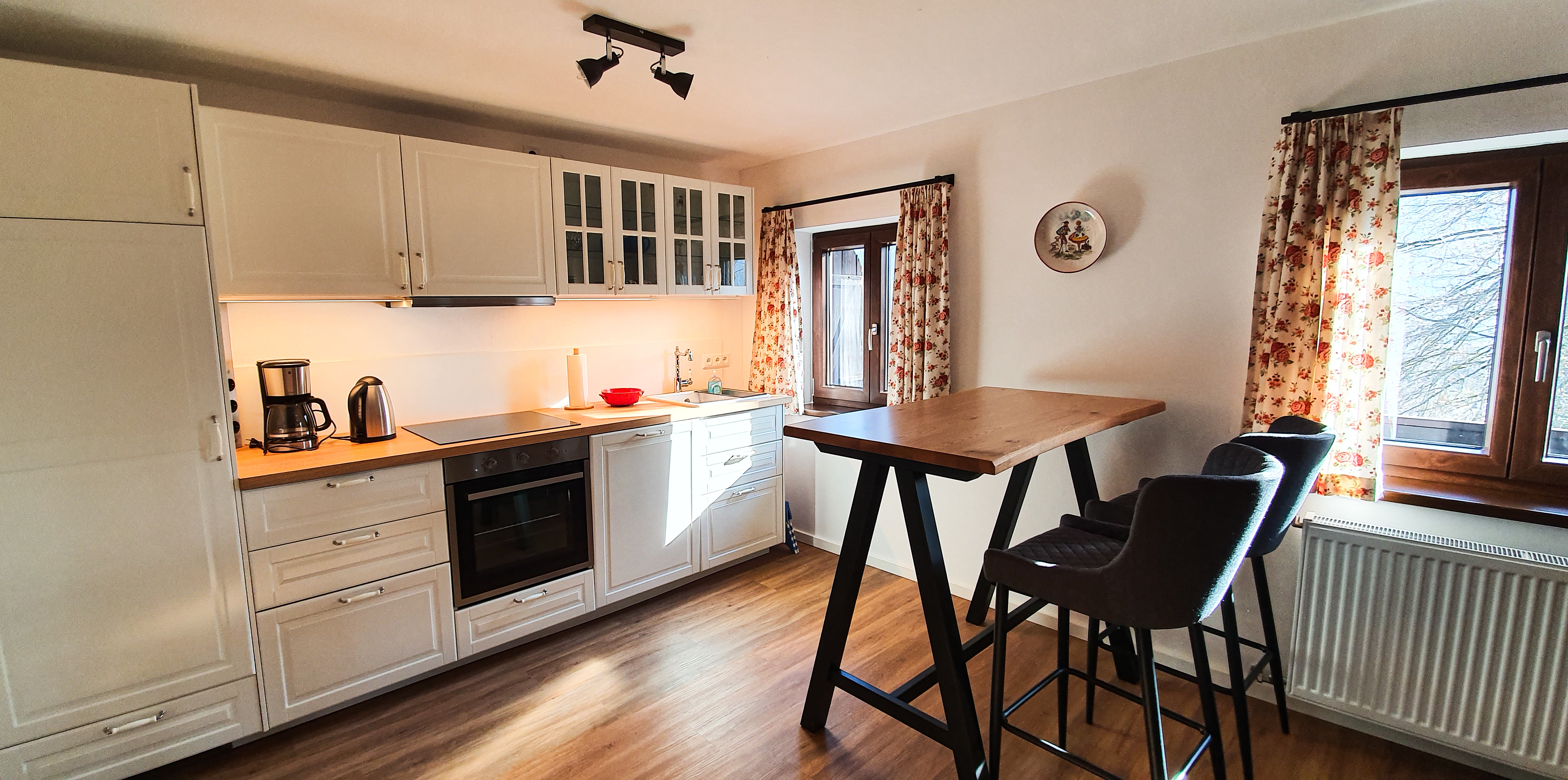 Die Wohnungen sind ideal für große Familien geeignet. Durch den großen Esstisch und der großen Terrasse in der Wohnung Kehlstein kann man sich gemütlich zusammen finden.