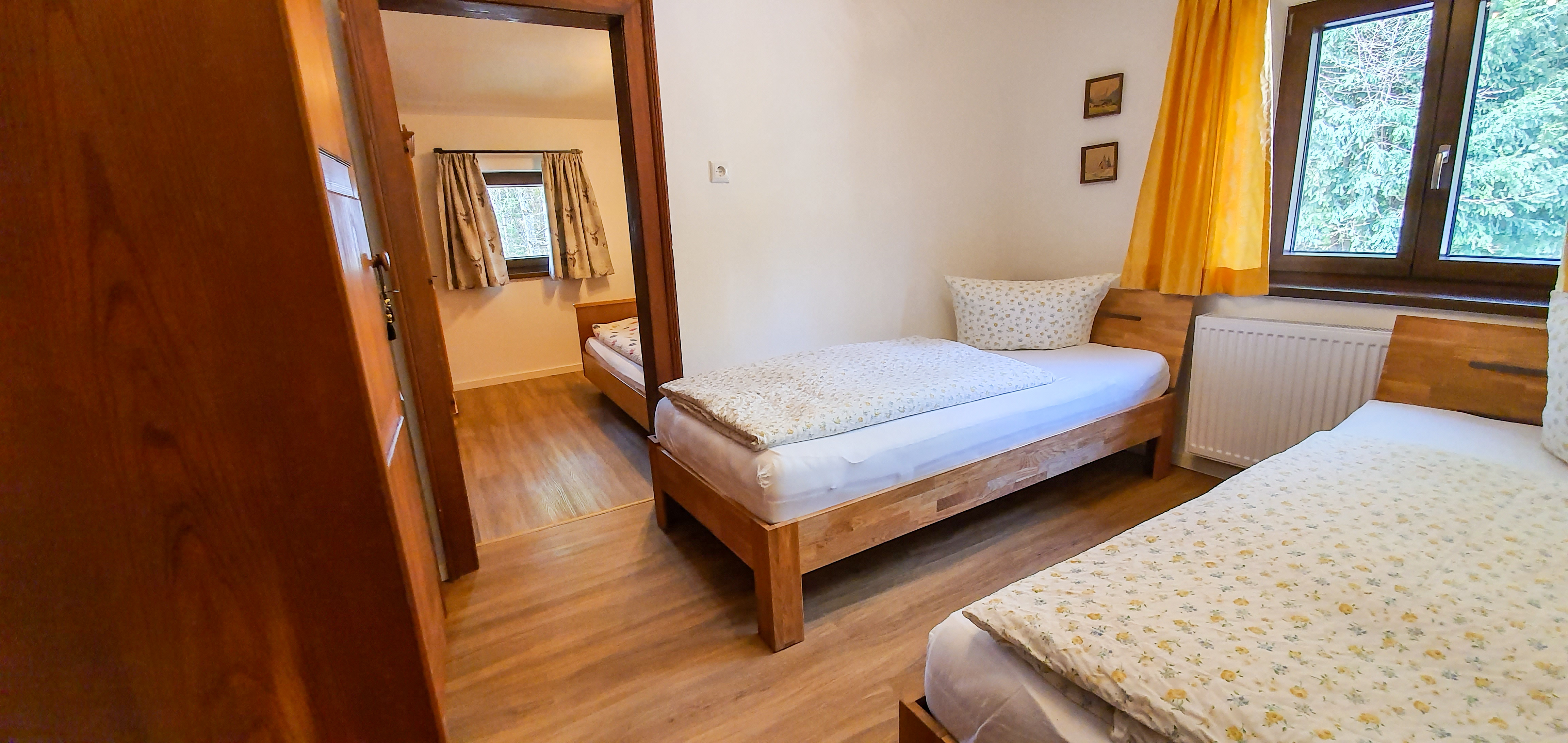 Die Wohnung verfügt über 3 Schlafzimmer, wobei das 3. Schlafzimmer nur durch das 2. zu erreichen ist (geeignet für eine Familie mit Kindern). In der Wohnung befindet sich ein gemütliches Stüber und ein großer Balkon mit Bergblick.