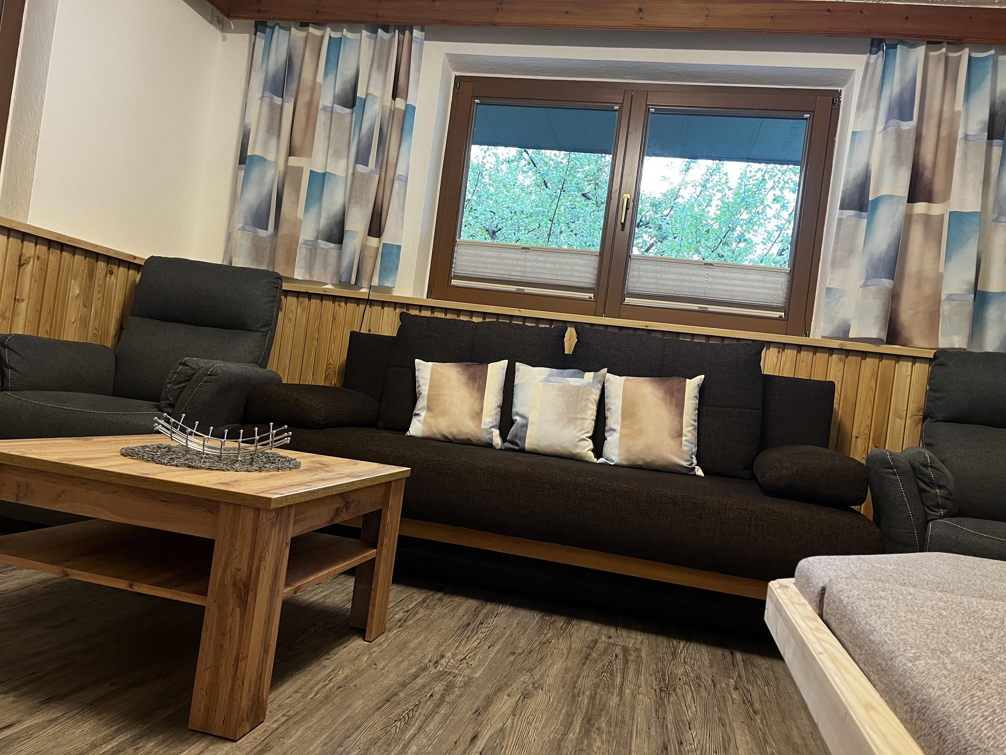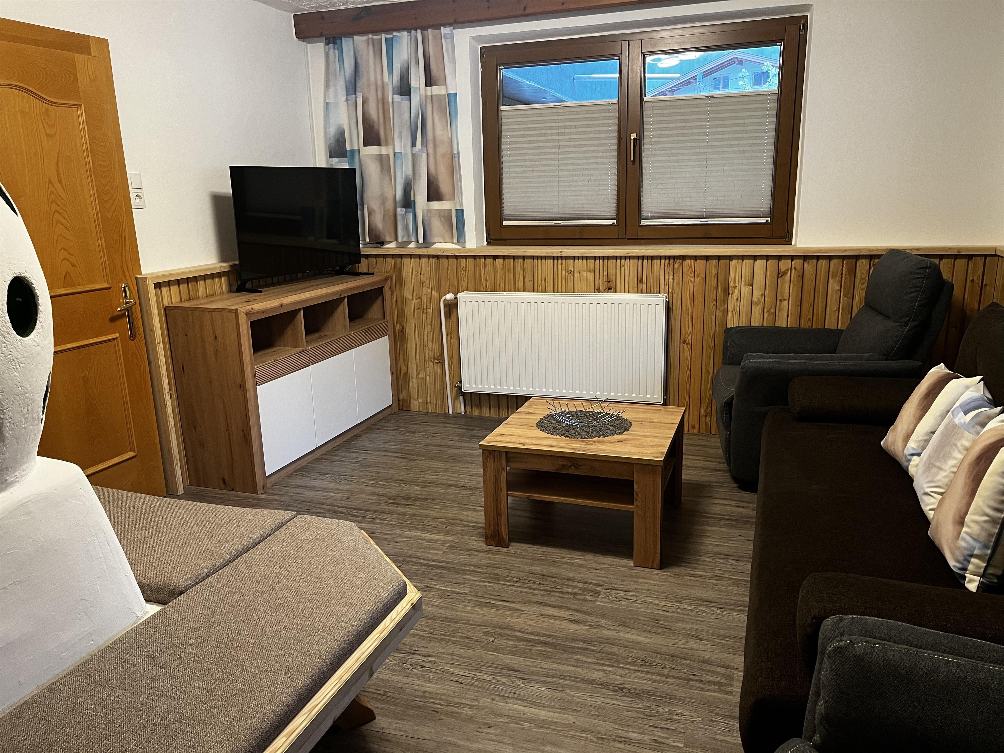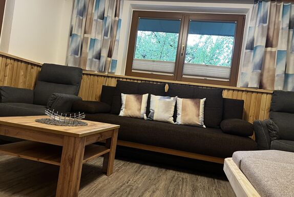 Ihr 120 m² großes Appartement im Parterre mit eigenem Eingang und hellem Vorraum verfügt über 2 getrennte Schlafzimmer, eines mit Zustellbett, ein Badezimmer mit Badewanne, Dusche/WC und ein WC separat. Der große getrennte Wohnraum mit Kachelofen und Couch und Sat-TV (nur Wohnzimmer) und die neue Küche mit Herd, Backofen, Kühlschrank mit Gefrierfach, Geschirrspülmaschine, Mikrowelle, Kaffeemaschine, sowie der grosszügige Gemeinschaftsgarten laden zum Verweilen ein.