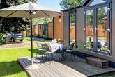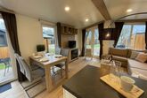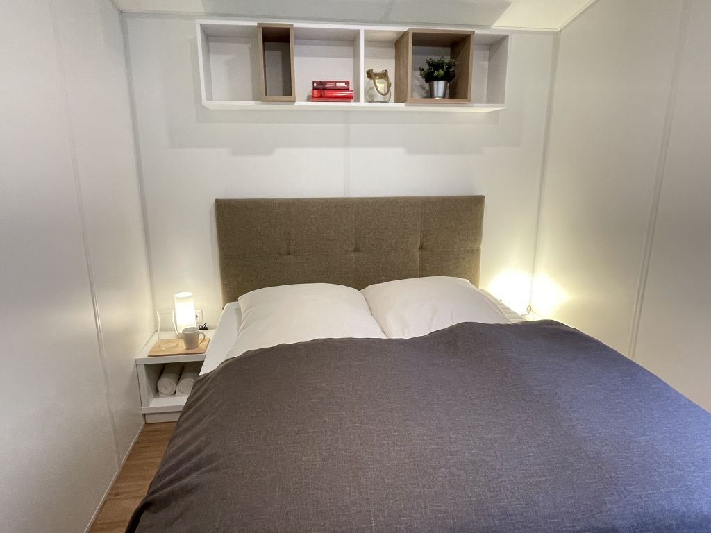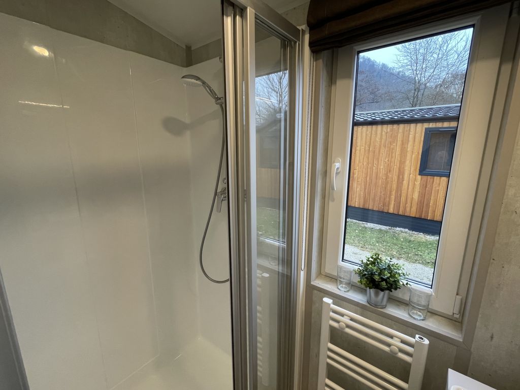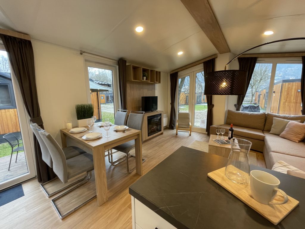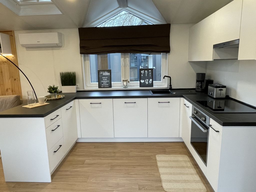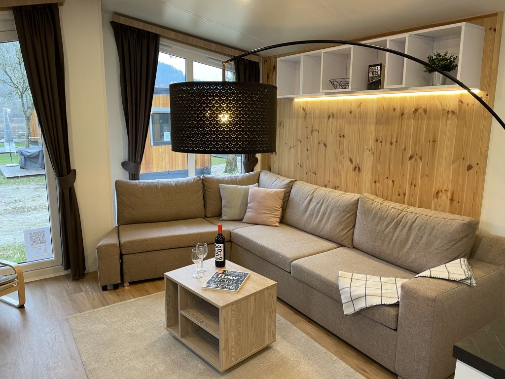 Tiny Haus Altmühlpanorama, 3-Zimmer-Mobilheim 48 m2. Komfortabel eingerichtet: Wohn-/Schlafzimmer mit 1 Doppeldiwanbett (160 cm, Länge 200 cm), Schwedenofen (nur Deko), Sat-TV und Klimaanlage. Ausgang zur Terrasse. 1 Zimmer mit 1 franz. Bett (160 cm, Länge 200 cm). 1 Zimmer mit 2 Betten (80 cm, Länge 200 cm). Offene Küche (Backofen, Geschirrspüler, 4 Glaskeramikplatten, Wasserkocher, elektrische Kaffeemaschine). Dusche, sep. WC. Kleine Terrasse. Terrassenmöbel. Zur Verfügung: Waschmaschine, Wäschetrockner. Parkplatz beim Haus. Bitte beachten: Nichtraucher-Unterkunft.