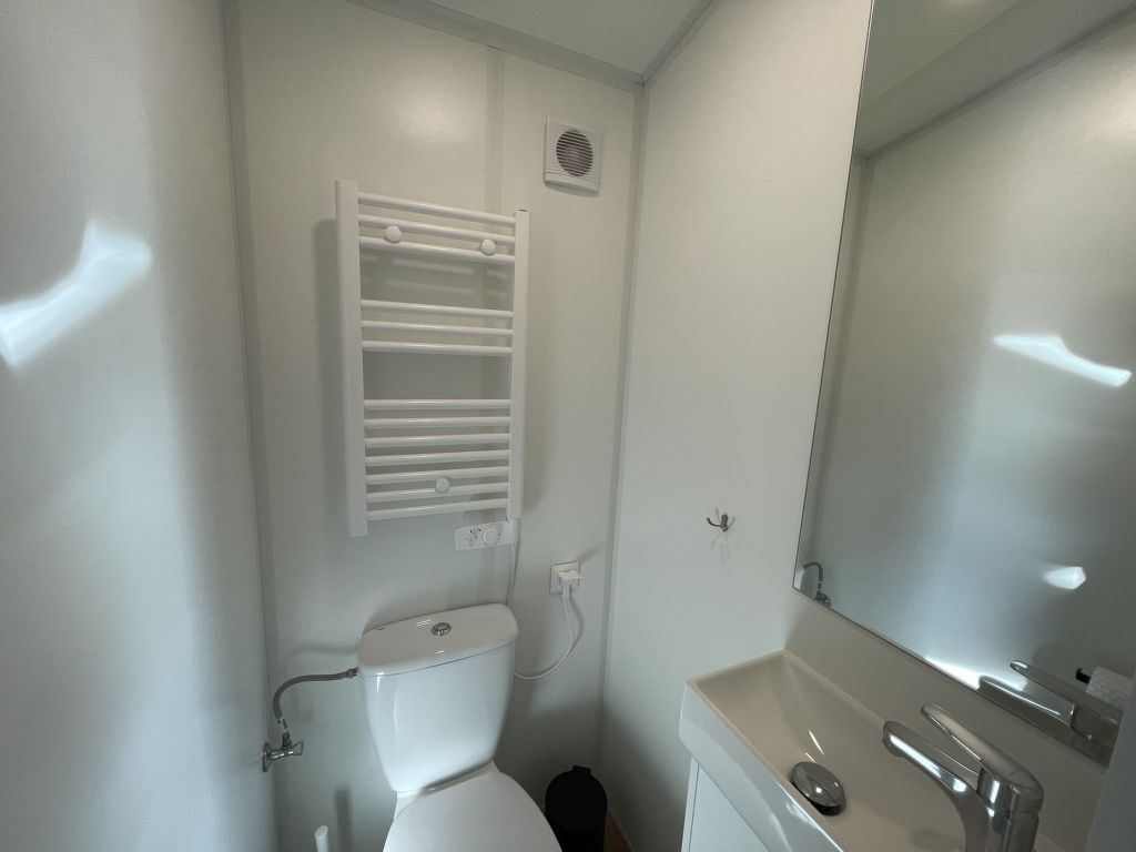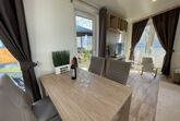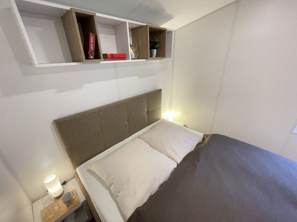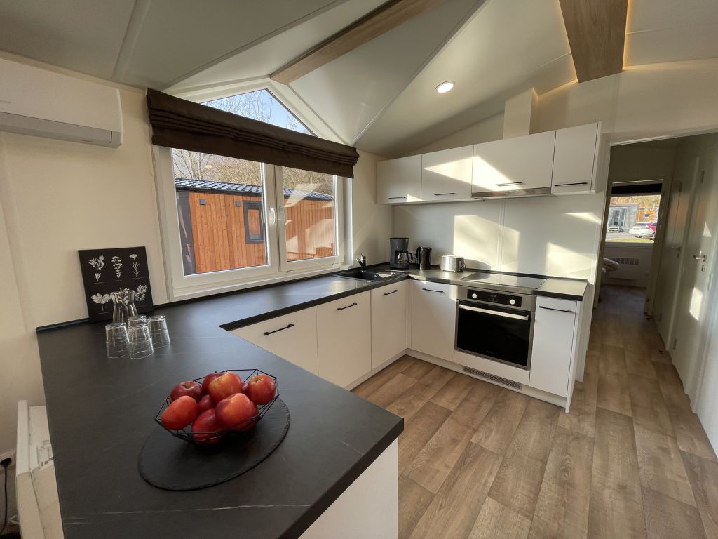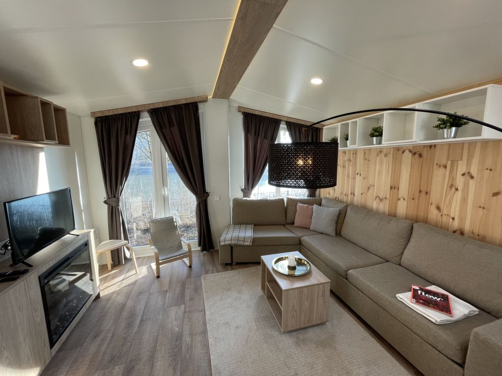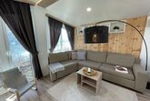 Tiny Haus Carolin, 3-Zimmer-Mobilheim 48 m2. Komfortabel eingerichtet: Wohn-/Schlafzimmer mit 1 Doppeldiwanbett (160 cm, Länge 200 cm), Schwedenofen (nur Deko), Sat-TV und Klimaanlage. Ausgang zur Terrasse. 1 Zimmer mit 1 franz. Bett (160 cm, Länge 200 cm). 1 Zimmer mit 2 Betten (80 cm, Länge 200 cm). Offene Küche (Backofen, Geschirrspüler, 4 Glaskeramikplatten, Wasserkocher, elektrische Kaffeemaschine). Dusche, sep. WC. Kleine Terrasse. Terrassenmöbel. Zur Verfügung: Waschmaschine, Wäschetrockner. Internet (WLAN, gratis). Parkplatz (1 Auto) beim Haus. Bitte beachten: Nichtraucher-Unterkunft. Maximal 2 Haustiere/Hunde erlaubt. Rauchmelder, Feuerlöscher.