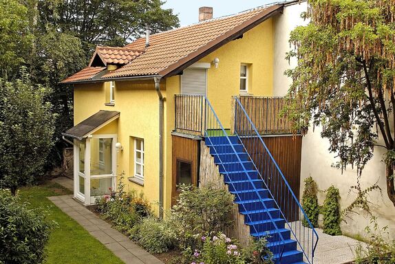 Ferienhaus im Garten, ohne störenden Verkehrslärm, der durch das Haupthaus größtenteils abgeschirmt wird.