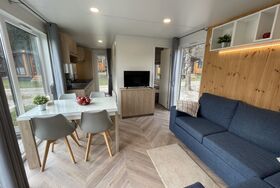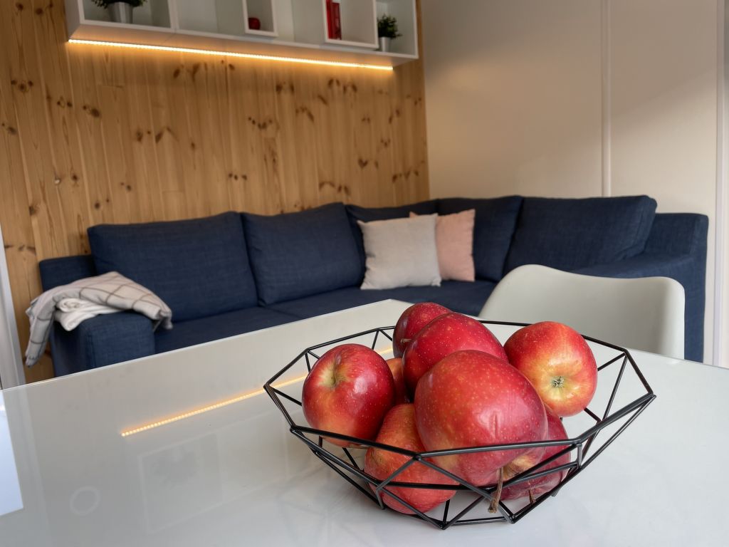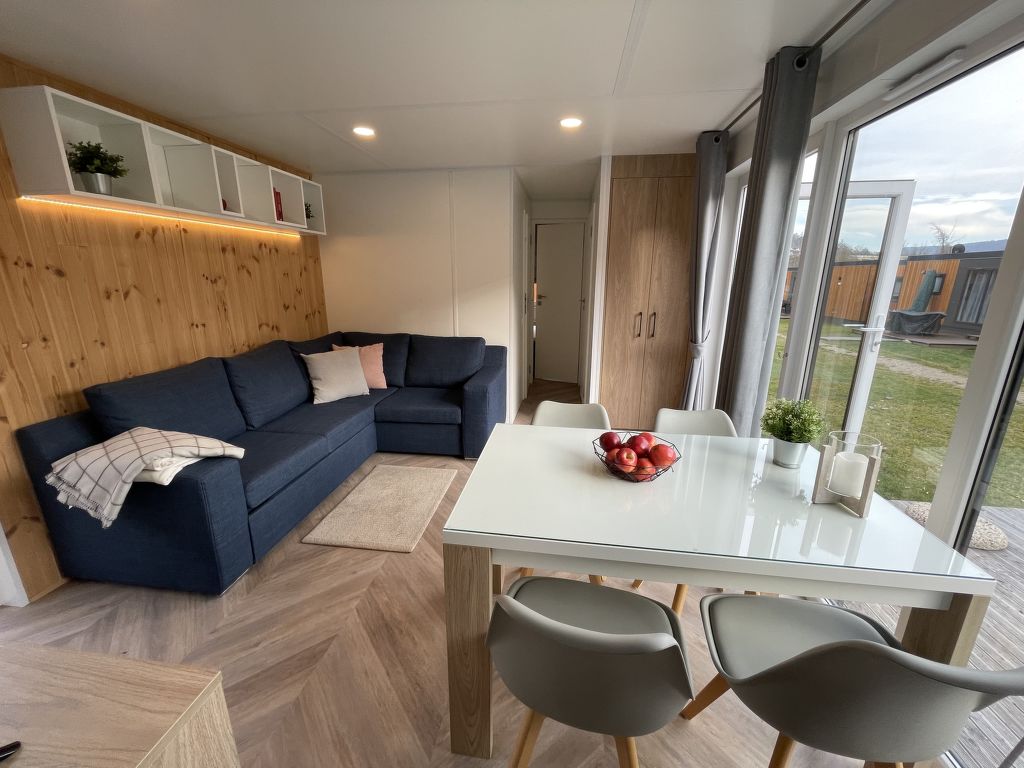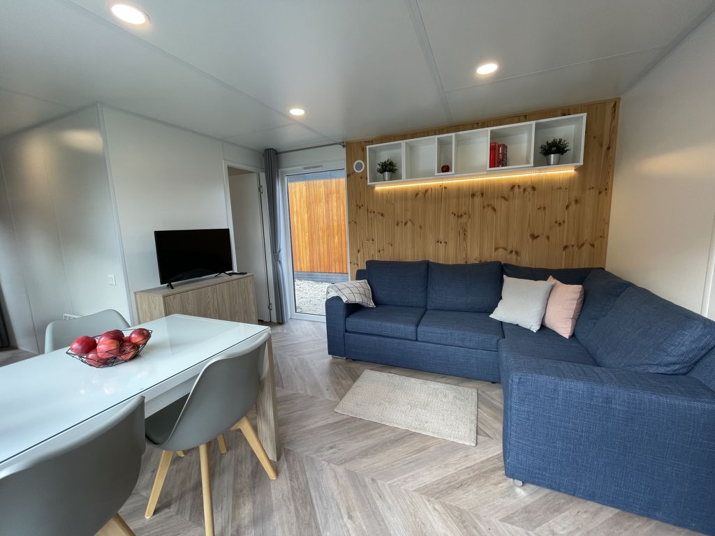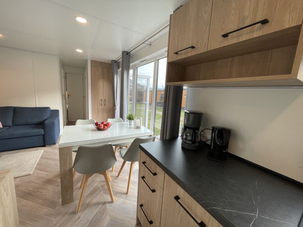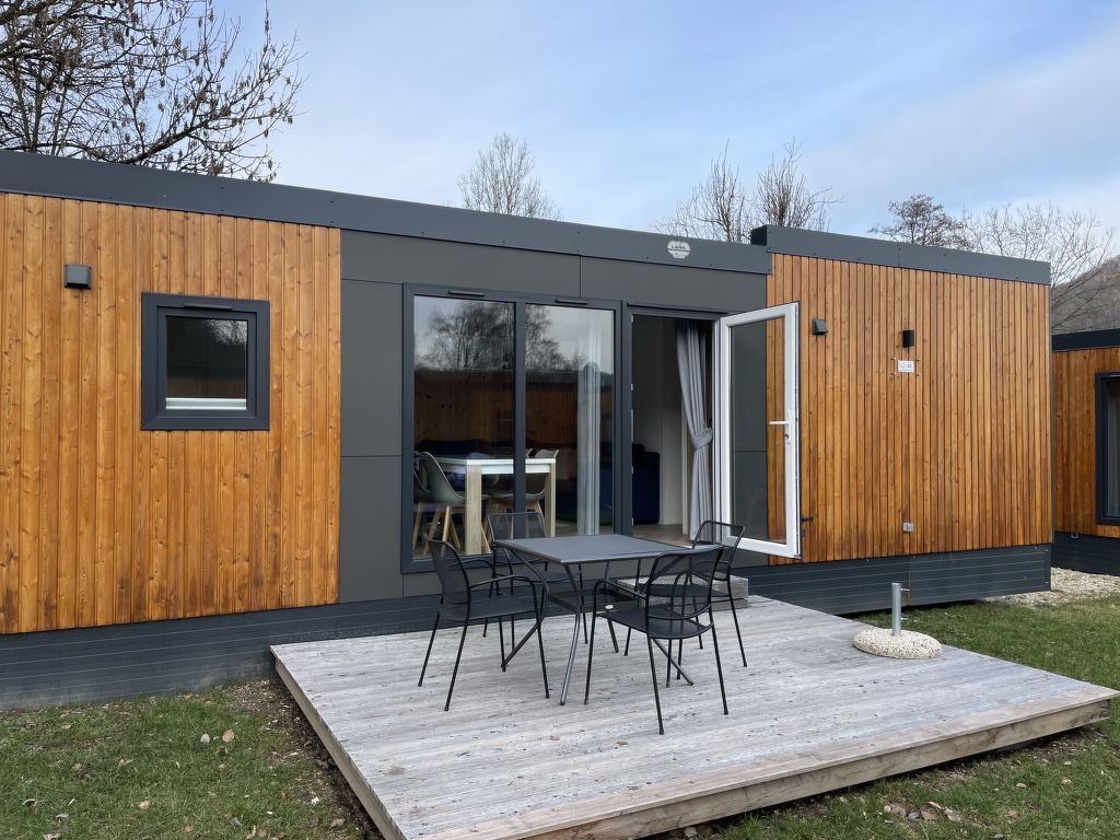 Tiny Haus Burgblick, 3-Zimmer-Mobilheim 32 m2. Gemütlich eingerichtet: Wohn-/Schlafzimmer mit (120 cm, Länge 170 cm), Sat-TV. Ausgang zur Terrasse. 1 Zimmer mit 1 franz. Bett (140 cm, Länge 200 cm). 1 Zimmer mit 2 Betten (80 cm, Länge 200 cm). Offene Küche (4 Glaskeramikplatten, Wasserkocher, elektrische Kaffeemaschine). Dusche/WC. E-Heizung. Kleine Terrasse. Terrassenmöbel. Parkplatz beim Haus. Bitte beachten: Nichtraucher-Haus. Maximal 2 Haustiere/Hunde erlaubt.