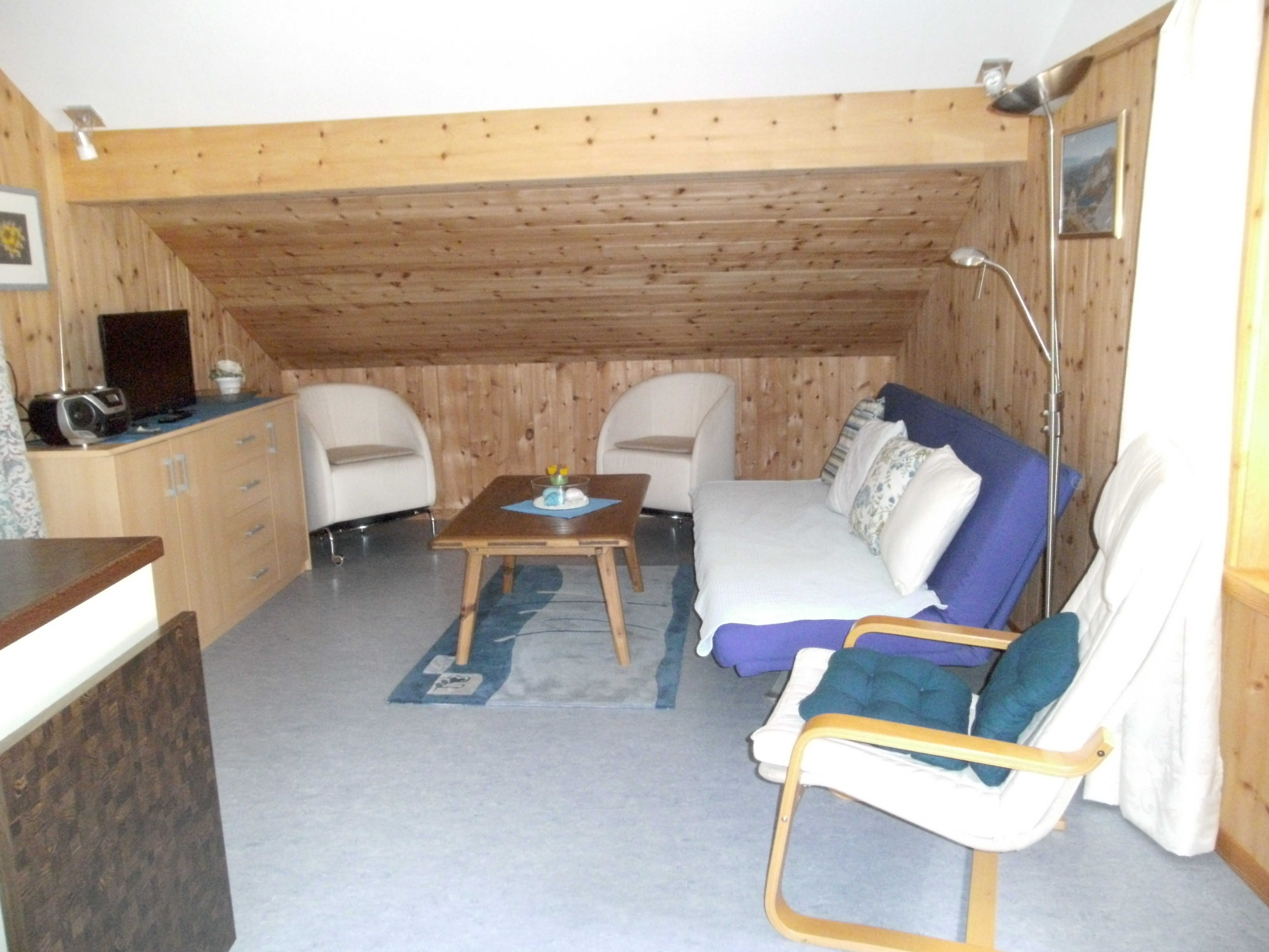 Besonders liebliche und herzige Dachwohnung mit Balkon und herrlicher Aussicht in die Berge, an sehr ruhiger und geschützter Lage, mit Blick Richtung Süden. Der ganz neue geräumige Wohnraum ist z.T. aus Arvenholz, an einem Ende ist eine Sitzecke mit komfortabler grosser Schlafcouch und Sesseln, Tischli, Sideboard und TV, in der Mitte die Küche mit Pelletofen, am anderen Ende ist ein grosser Esstisch mit einmaliger Aussicht und Morgensonne. Der Balkon hat Morgen- und Nachmittagssonne und ist ein Traum für Naturliebhaber und Ruhesuchende.Die 2 Zimmer sind z.T.vom Dach abgeschregt und eher klein, aber gemütlich und aus Holz. Beim Eingang ist ein Raum für die Garderobe mit einem Schrank, einem offenen Tablarschrank und genügend Platz für die Schuhe.Von hier geht's 2 Treppen hoch zur Wohnung. Vor dem Eingang hat's viel Platz für Skis, Velos, Schlitten etc. Als Wellness steht Ihnen eine Sauna zur Verfügung. Hinter dem Haus ist ein ruhiger Sitzplatz mit Liegewiese an fantastischer, ruhiger und nach Süden gerichteter Lage mit wunderschöner Aussicht in die Natur.Die Ferienwohnung hat einen eigenen Eingang, im Parterre hat's noch eine zweite grössere Ferienwohnung. Sie können auch beide Wohnungen für Gruppen oder einfach für zwei diverse Parteien mieten. Das Haus befindet sich im Dorfkern vom Blumendorf Valchava, abseits vom Strassenlärm (Umfahrungsstrasse). Valchava liegt Mitten im Val Müstair und Nahe am Nationalpark, im wunderschönen Naturpark des Biospärenreservats mit einmaligen Wanderungen und Biketouren. Auch im Winter bietet das Tal ein schönes Skigebiet, einmalig schöne Schneeschuhwanderungen (auf Wunsch auch geführt), Langlaufloipen in der Heimat von Dario Cologna. Daneben gib's eine beleuchtete Schlittelbahn und auch Eisplätze. Aber auch Kulturliebhaber kommen nicht zu kurz. Um nur ein Beispiel zu nennen, ist hier ein Weltkulturerbe zu besichtigen. Durch den Vereinatunnel haben Sie eine Anfahrtszeit von 3 Std. ab Zürich. CheckIn: 16.00 Uhr oder auch nach Vereinbarung CheckOut: 10.00 oder nach Vereinbarung.