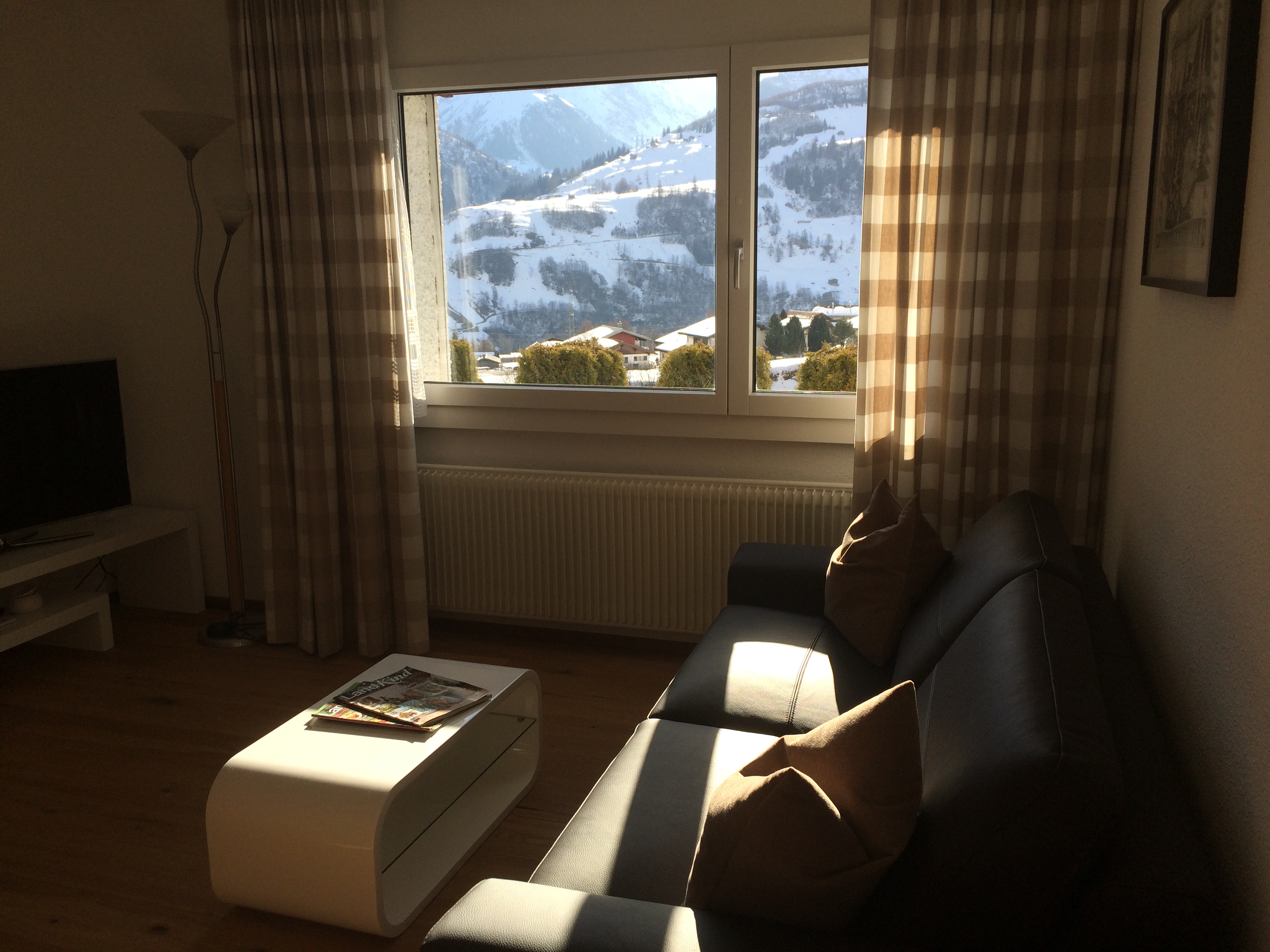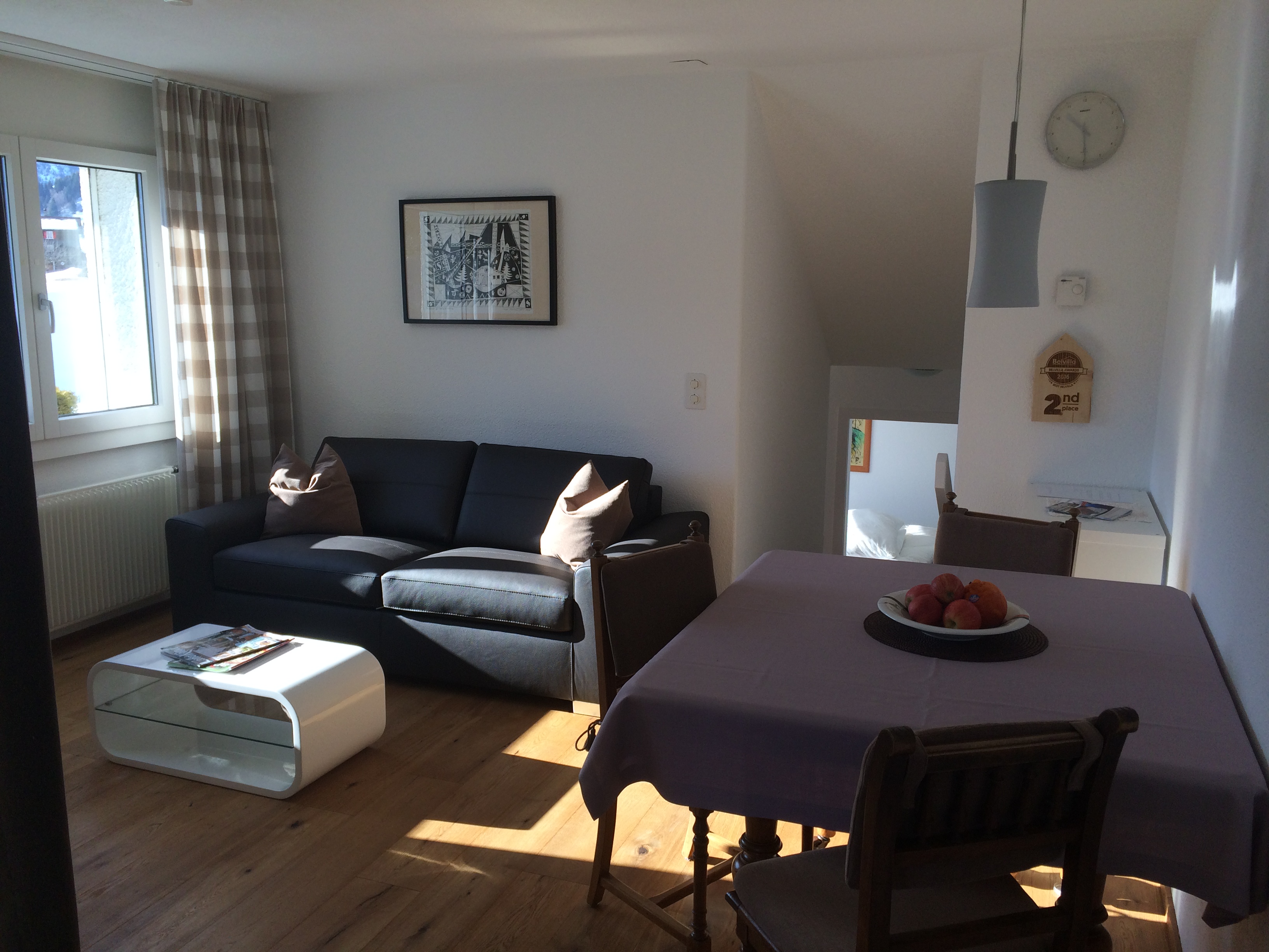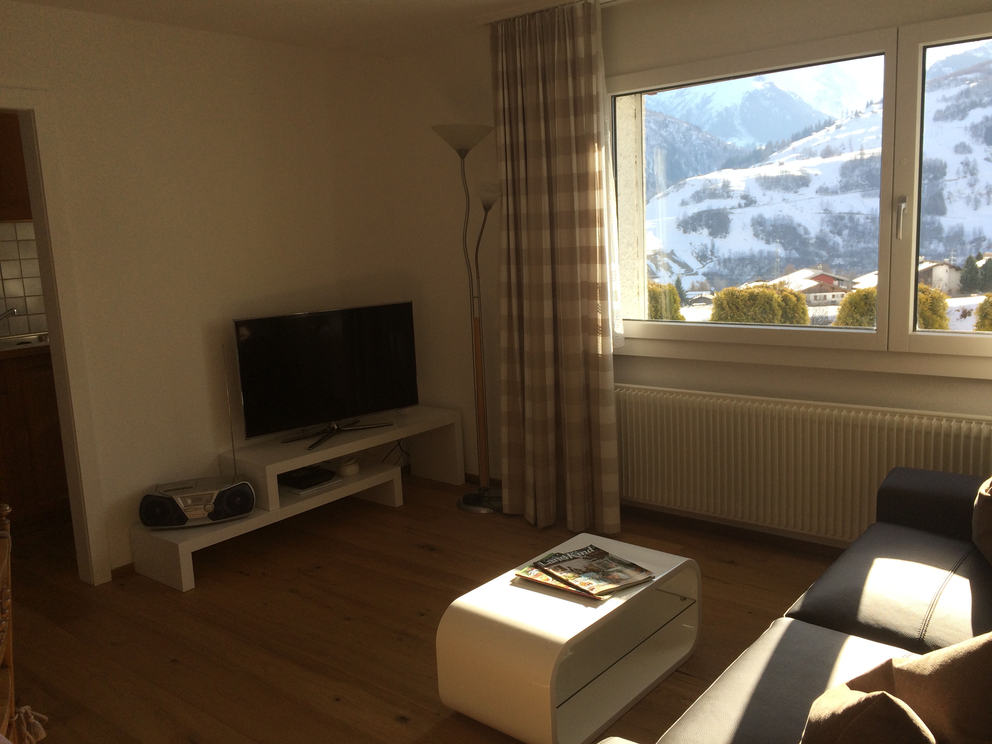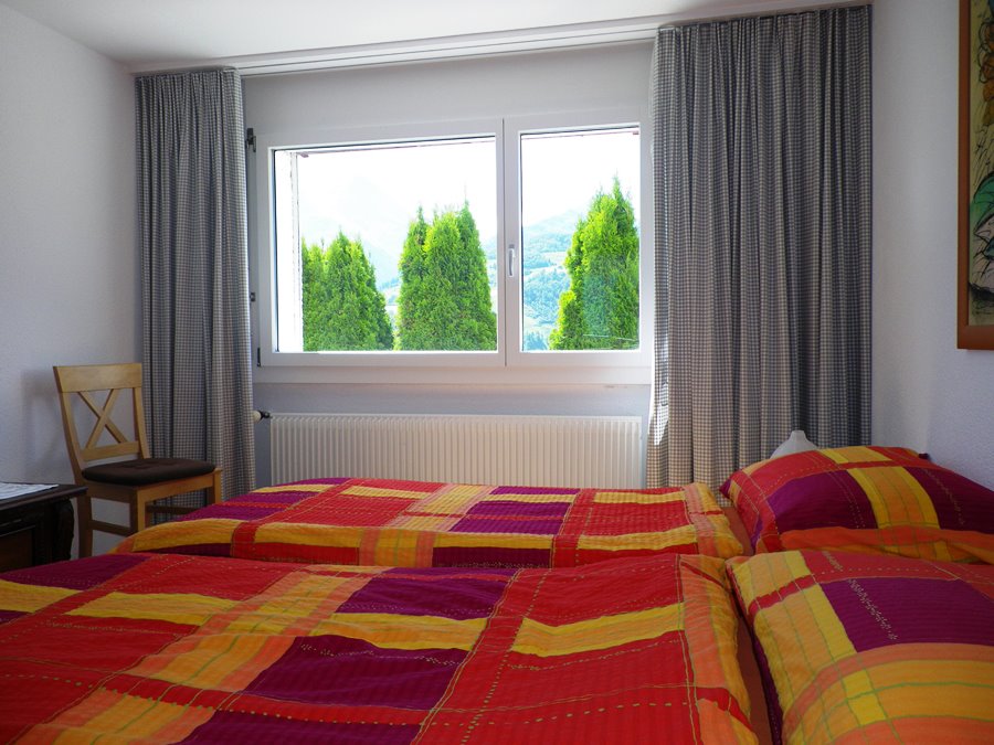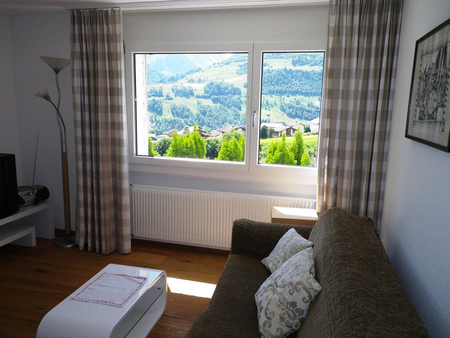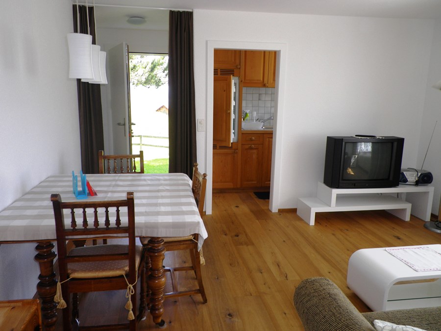 Möbilierte 2-Zimmer-Wohnung mit separater Küche, Wohnzimmer mit Sofabett für 1 - 2 Personen, TV, Radio, CD-Player, Schlafzimmer mit zwei separaten Betten, Badzimmer mit Dusche/WC.Küchenwäsche vorhanden und inbegriffen, Badwäsche bitte selber mitbringen. Zusatzbett (CHF 10.-)Bodenbelag: Parkett