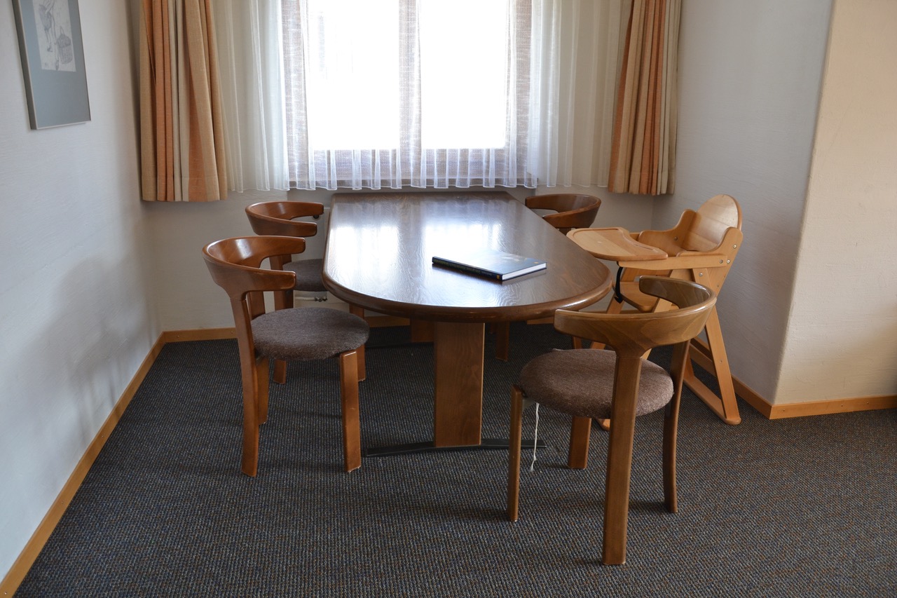 2 Schlafräume, Aufenthaltsraum, Babybett, Babybett im Zimmer, Babyhochstuhl, Backofen, Balkon, DVD-Player, Fondue-Set, Grillmöglichkeit, Haustiere nicht erlaubt, Kaffeemaschine, Kinderbett, Küche, Küchenwäsche, Kühlschrank, Leseraum, Lift, Nichtraucherzimmer-/wohnung, Online buchbar, Parking, Raclette-Set, Radio, Schlafcouch, Spielzimmer, Terrasse, Töpfe Pfannen Geschirr, TV, Wäschetrockner, Wäschetrockner im Haus, Waschmaschine, Waschmaschine im Haus, Wasserkocher, WiFi