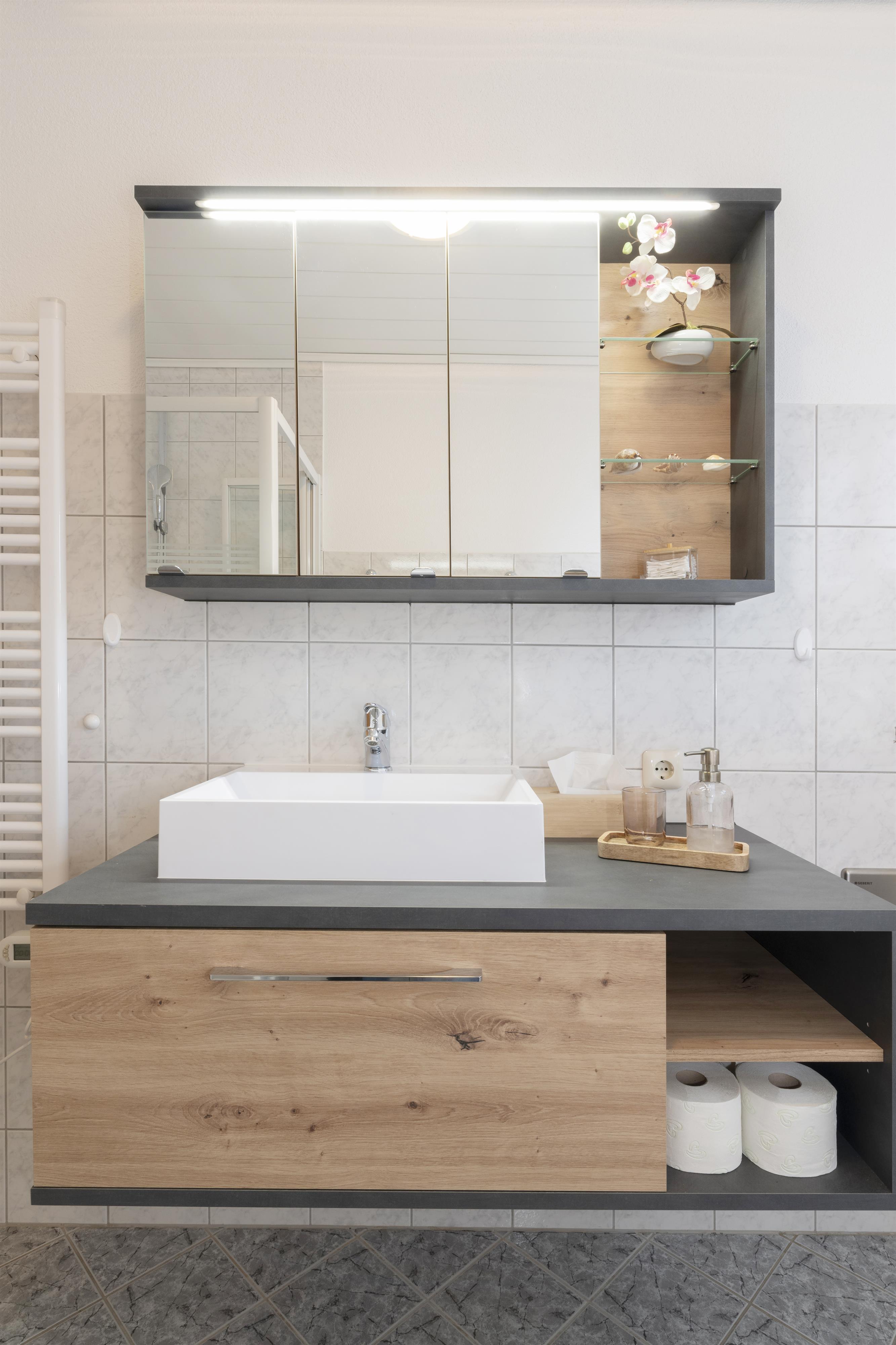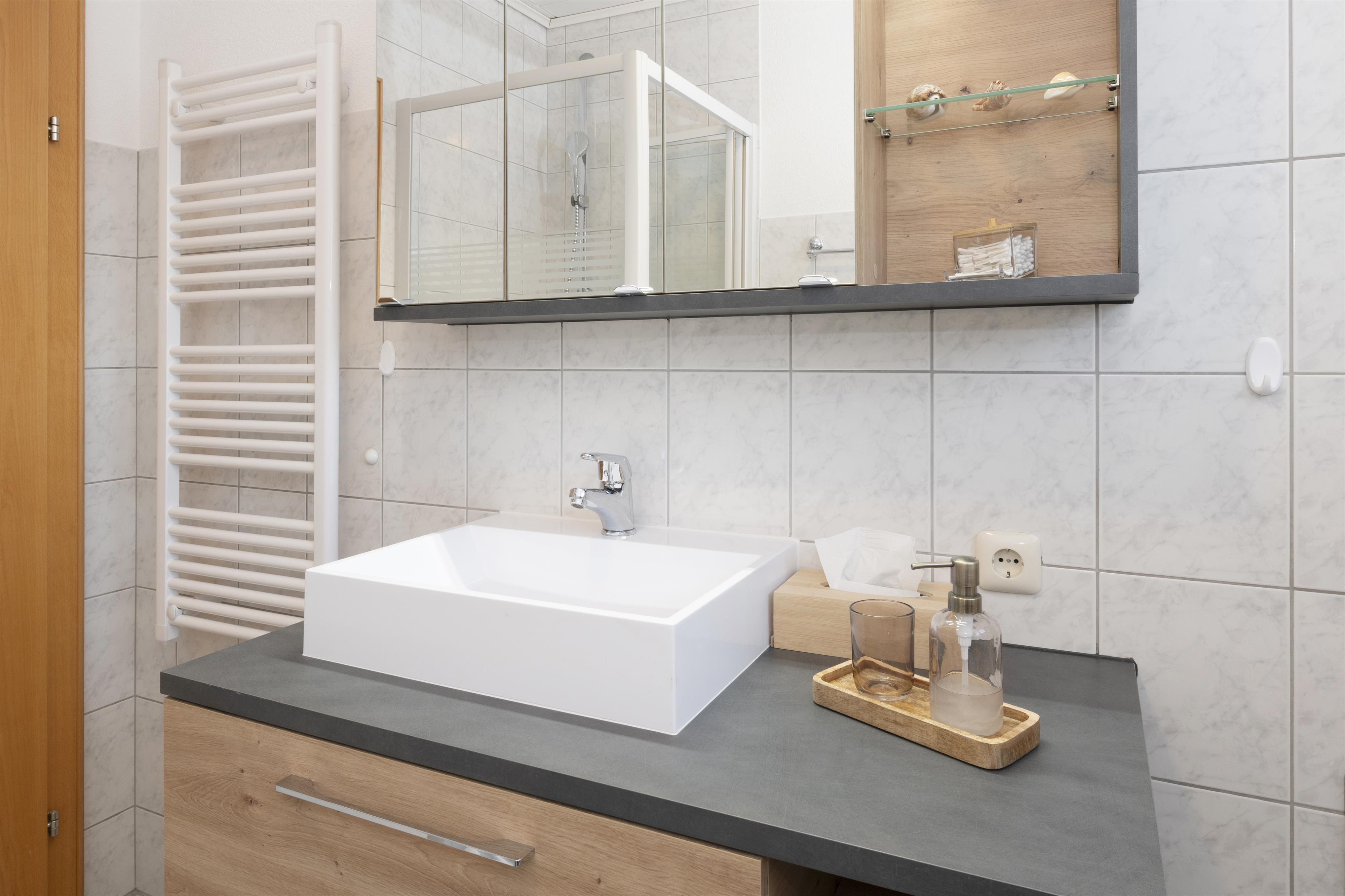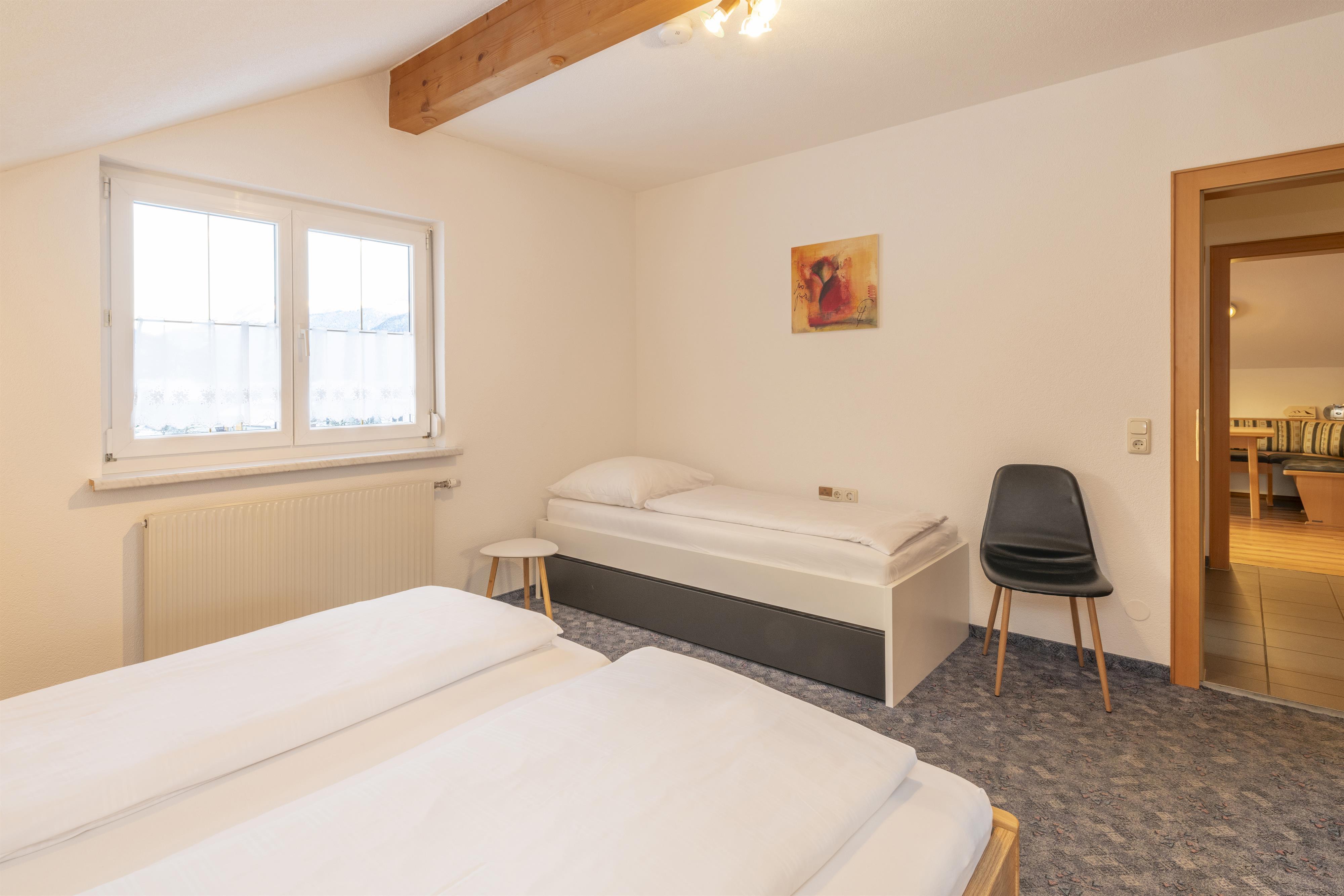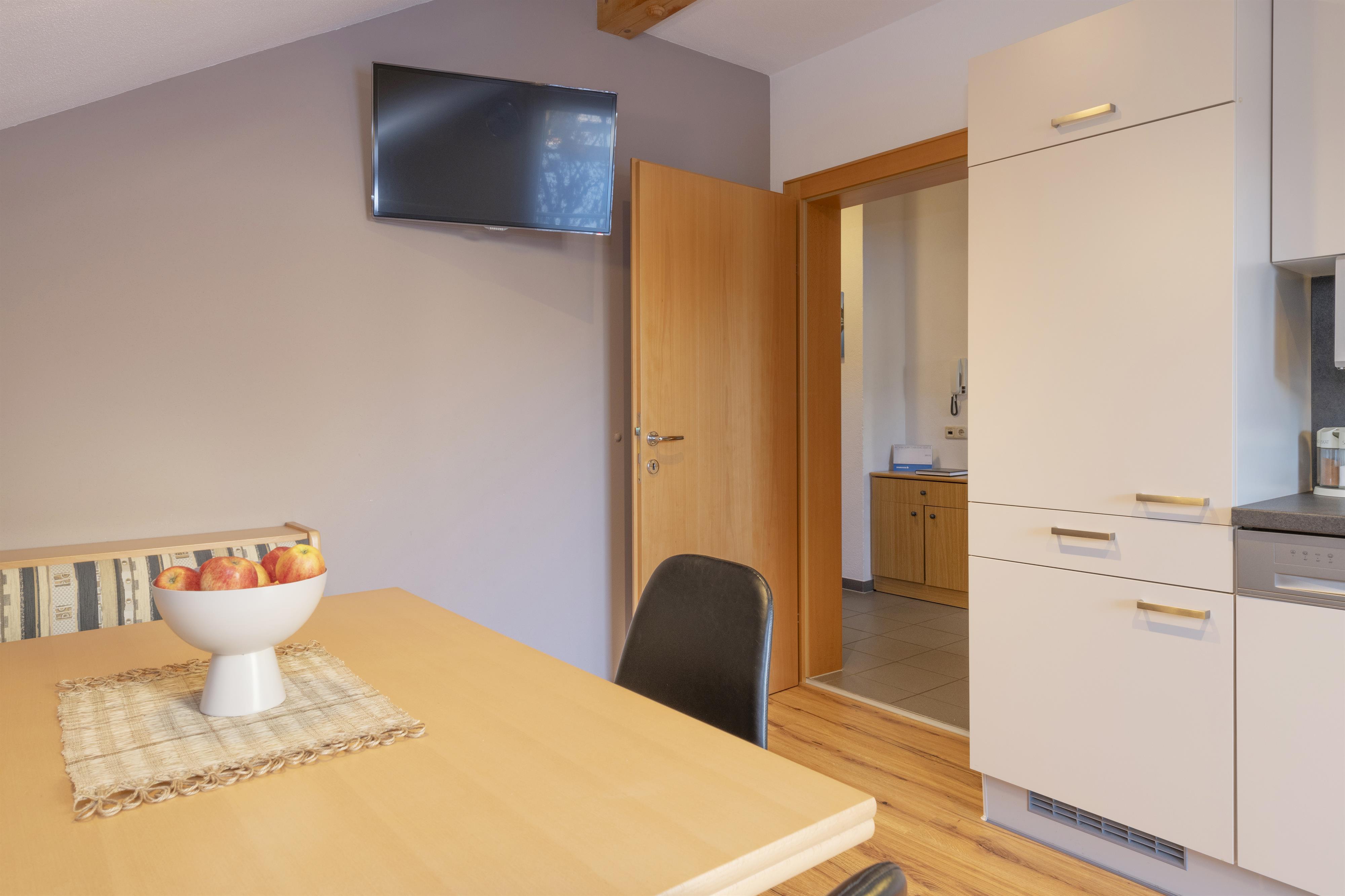 Die Wohnung liegt im 1.OG,ist 56m² groß:Eine Wohnküche mit Essecke und Couch, 2 Schlafzimmer (Doppelbett, Doppelbett u.Einzelbett), Dusche/WC, Vorraum. Die Küche ist komplett eingerichtet mit Küchenzeile,Geschirr,Geschirrspüler,Sat-TV,Radio mit CD-Player, Kaffeemaschine,Wasserkocher,Mikrowelle,Toaster,Kühlschrank mit Eisfach, E-Herd mit Ceranfeld und Backofen. Balkonmöbel, Bettwäsche, Handtücher.