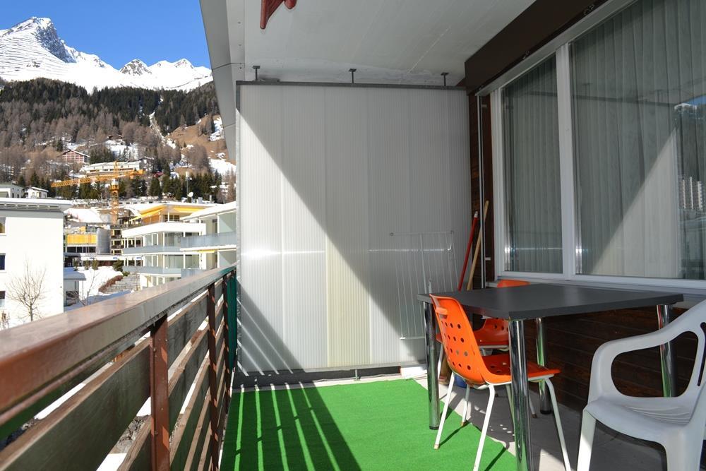 Helle, gemütliche 1 Zimmerwohnung im 2 Stock (33m2); sonnige, ruhige Lage in einem Mehrfamilienhaus im Chaletstil; Mitbenutzung des Skiraums und ein Waschmaschinenraum mit Tumbler, Garten, Lift; grosser Balkon Südwest mit Tisch und Stühlen; Kochnische mit Backofen, Kühlschrank mit Tiefkühlfach, Kaffeemaschine; 2 Schrankwandbetten, Sofa, 2 Sessel mit Tischlein; Kabelfernseher und Radio; Badewanne mit Dusche und WC; Küchentücher, Bettwäsche, Frotteewäsche, Molton, Davoser-Abfallsack. Das Haus „Bündawiese“ liegt im sonnigen und ruhigen Bündagebiet in der Nähe des Übungsliftes, Skischule, Langlaufloipen wie auch verschiedene Wander- und Spazierwege. Zum Parkieren neben dem Haus hat es interne Parkplätze die benutzt werden können, mit einer Parkkarte, die zur Verfügung gestellt wird.