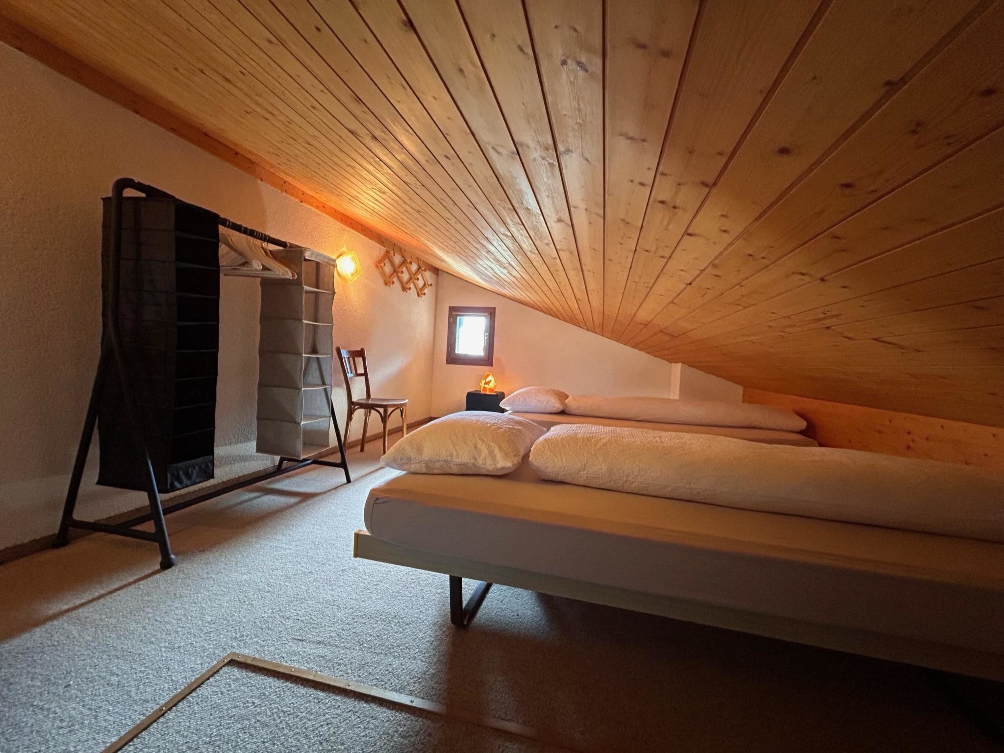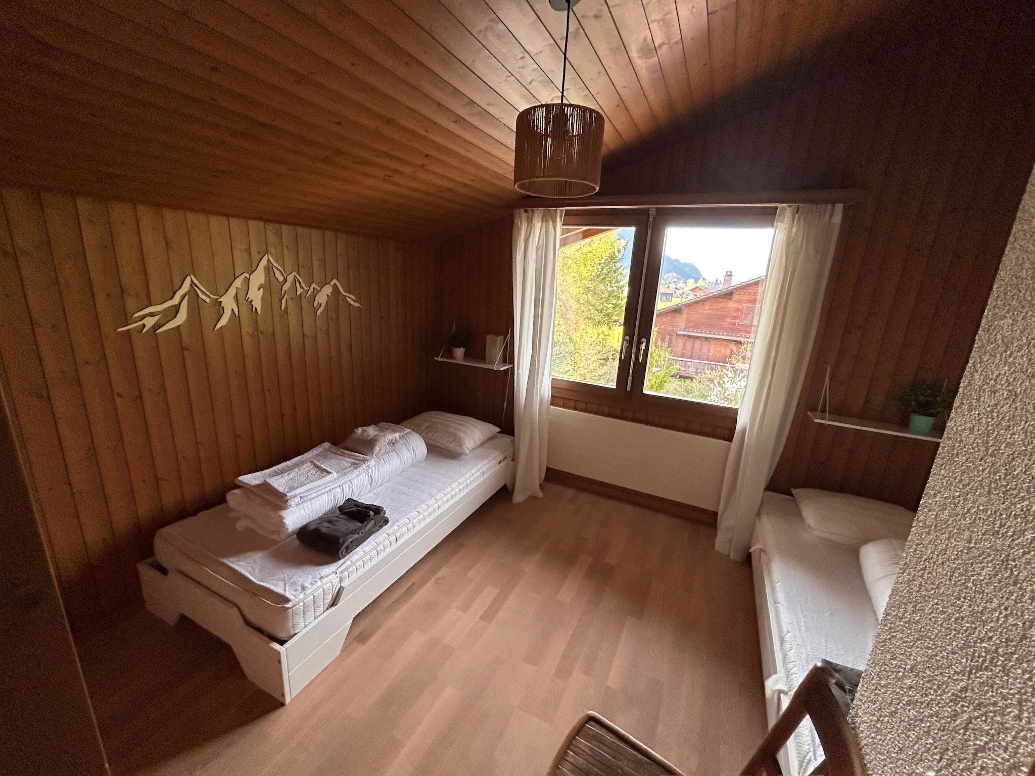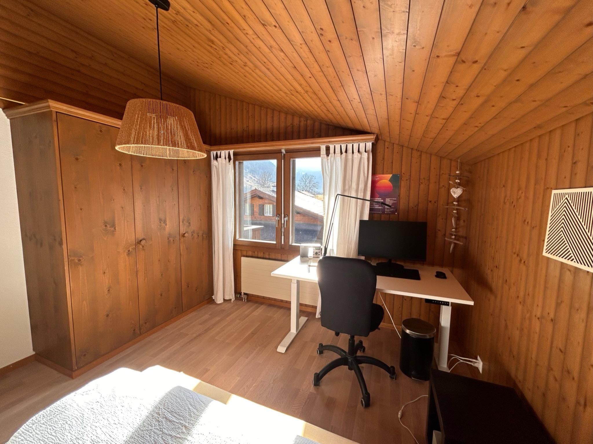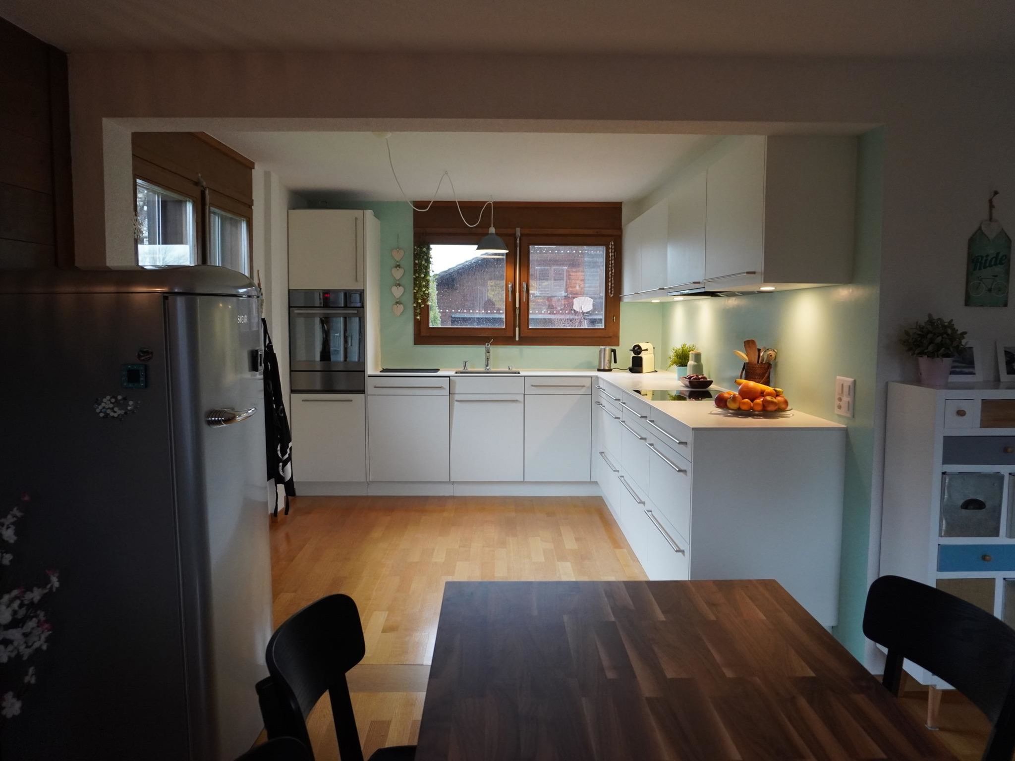 110 m2. Weitere Angaben des Anbieters: - 2 Schlafzimmer mit Doppelbetten - 1 Schlafzimmer mit 2 Einzelbetten - 1 Schlafzimmer mit 2 zusammenschiebbaren Einzelbetten im offenen Estrich - Keller- und Trocknungsraum für Skis, Kinderwagen, Bikes, Kleider - 3 Parkplätze - Ruhiges Quartier neben Lenkerseeli, sonnige Lage - Rundumsicht auf Bergwelt - Große Terrasse im EG, kleine Terrasse im OG - Höhenverstellbarer Bürotisch mit Monitor für Workation - Gemütlich und modern eingerichtet - Große, gut ausgestattete Küche - Direkt neben Langlaufloipe und sehr nah zu beiden Skigebieten - Erreichbarkeit Dorfzentrum in 10 Gehminuten - Wohnung über 4 Stockwerke (Keller bis Estrich) Gemütliches Wohn-/Esszimmer mit grosser offener Küche, Esstisch für acht Personen, Sofa und einen Sessel, Swisscom-TV Küche mit Geschirrspüler, Backofen/Steamer, Nespresso-Kaffeemaschine. Schlafzimer 1: 160 x 200 Doppelbett mit Schrank und Balkon 2: 140 x 200 Doppelbett mit Schrank 3: zwei 90 x 200 Einzelbetten Estrichzimmer: zwei 90 x 200 Einzelbetten (zusammenschiebbar) Badezimmer gross: Dusch-Badewanne, Doppelwaschbecken und WC, Badezimmer klein: Dusche und WC. Balkon EG: Tisch mit fünf Stühlen und Lounge-Möbel, Balkon OG: Tisch mit zwei Stühlen. Drei ungedeckte Parkplätze vorhanden. ÖV inklusive im Simmental und Saanenland mit der SIMMENTAL CARD: Übernachtungsgäste in der Ferienregion Lenk-Simmental fahren mit einer gültigen Gästekarte kostenlos mit dem öffentlichen Verkehr für Ausflüge. Inkl. Strom, Heizung, 3 Parkplätze, Waschmaschine/Trockner (exkl. Wäschemittel).