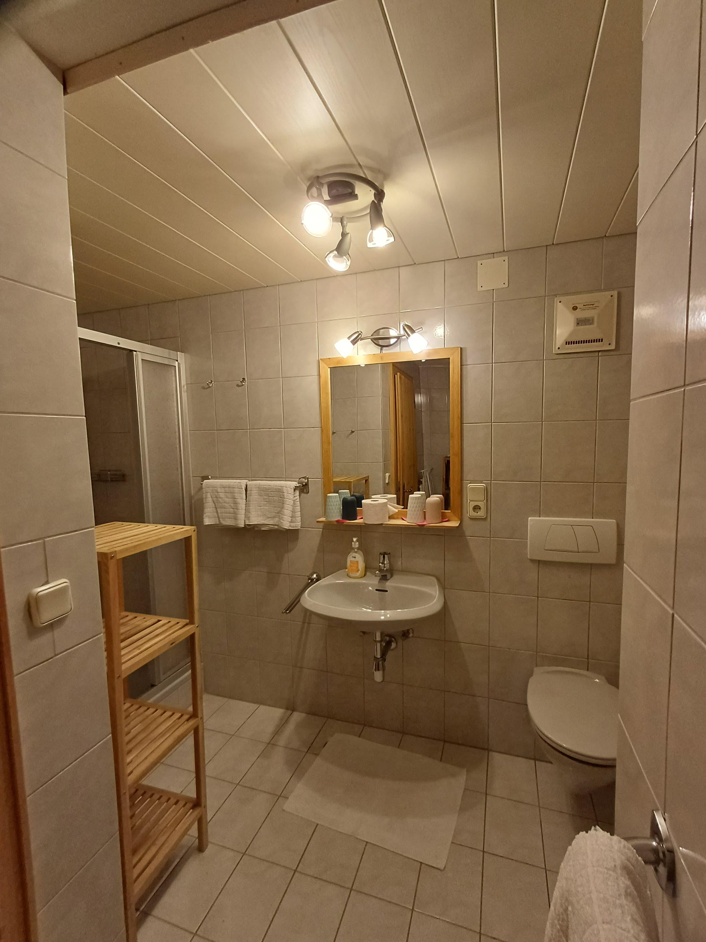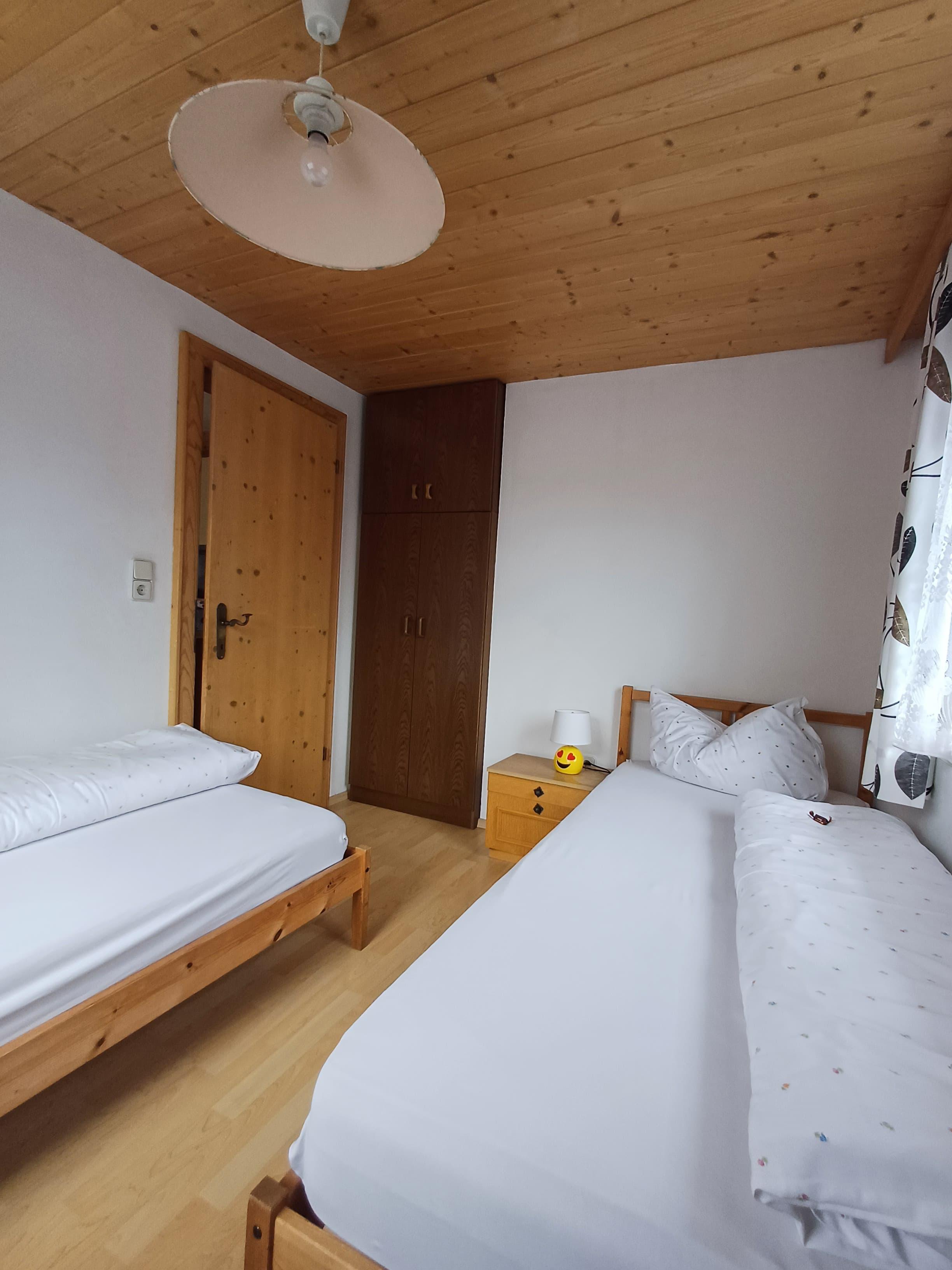 54 m² Appartement für 2-4 Personen, 1 Schlafzimmer mit Doppelbett, 1 Schlafzimmer mit 2 Betten, Wohnküche komplett ausgestattet, Dusche/WC, SAT-TV, NEU! Gratis Glasfaser Fiber Speed 750/100 Mbit/s, großer Süd-Balkon, Zugang zur Terrasse u. Garten.