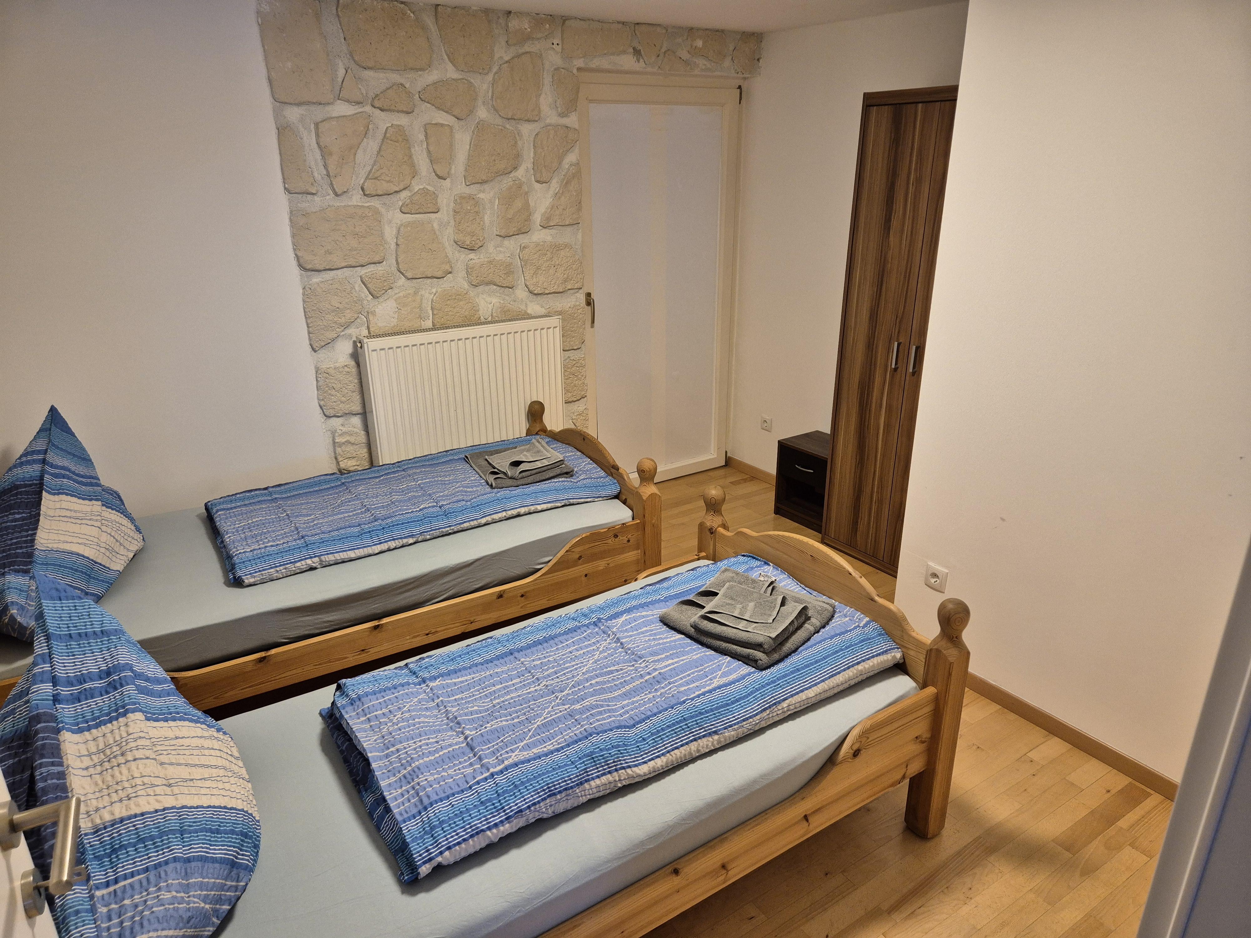 1 Doppelzimmer plus ein zusätzliches Doppelzimmer mit 2 Stockbetten können bis zu 8 Personen beherbergen, inklusive Dusche/WC, sowie einer Küche mit großzügiger Sitzecke und TV. Eine Sauna sorgt für Entspannung nach einem ausgiebigen Skitag in den Bergen (Sauna nur in der Wintersaison geöffnet, im Sommer außer Betrieb)!