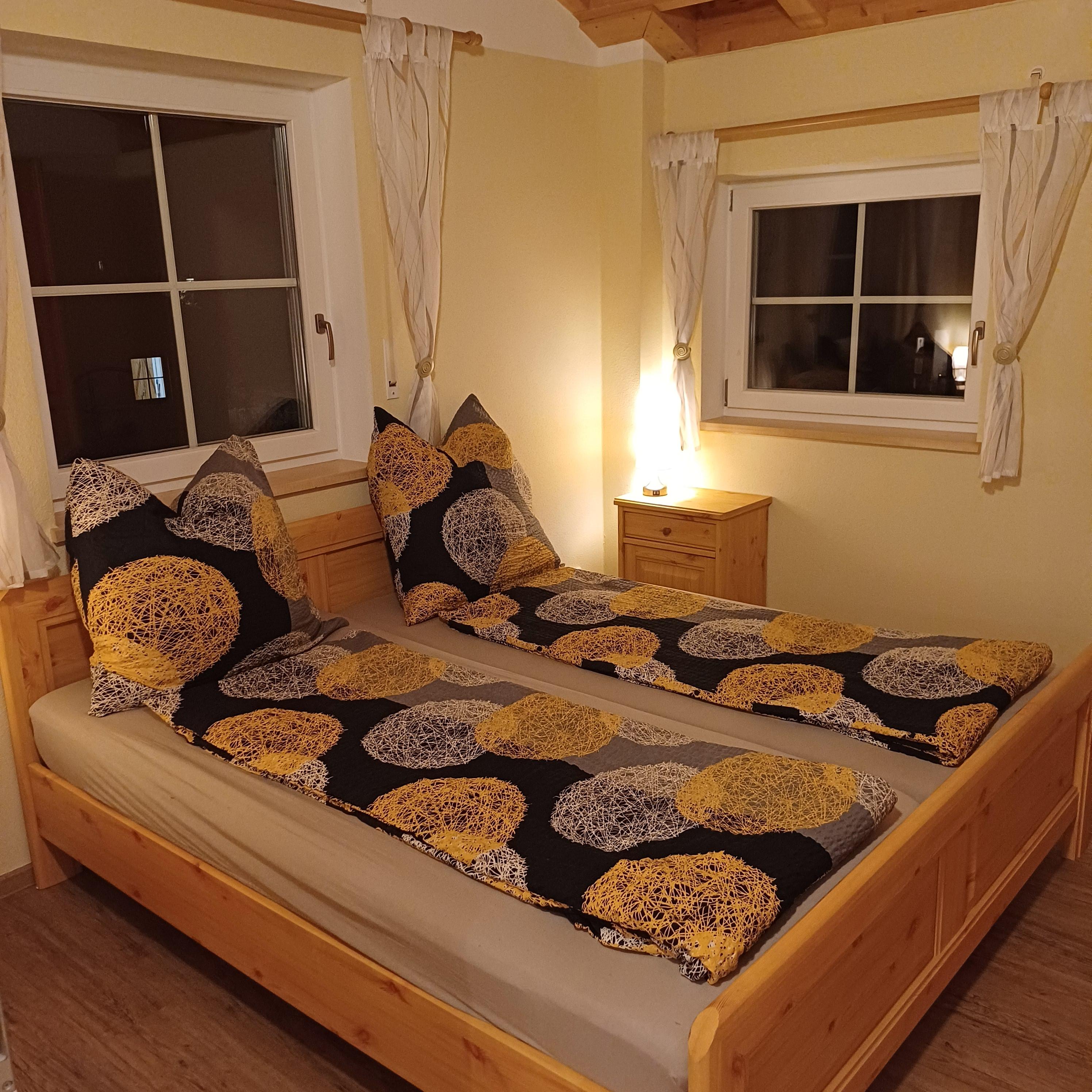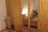 mit Doppelbett (180x200cm) , Nachttischleuchten mit USB Ladeanschluss und großem Kleiderschrank.