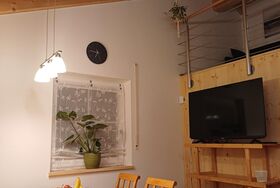 Essbereich, 50 Zoll Smart TV, Empore mit Doppelbett (160x200cm) und 2 Schlaf-Sofas mit 100x200cm und 120x190cm als zusätzliche Schlafplätze bei Bedarf.