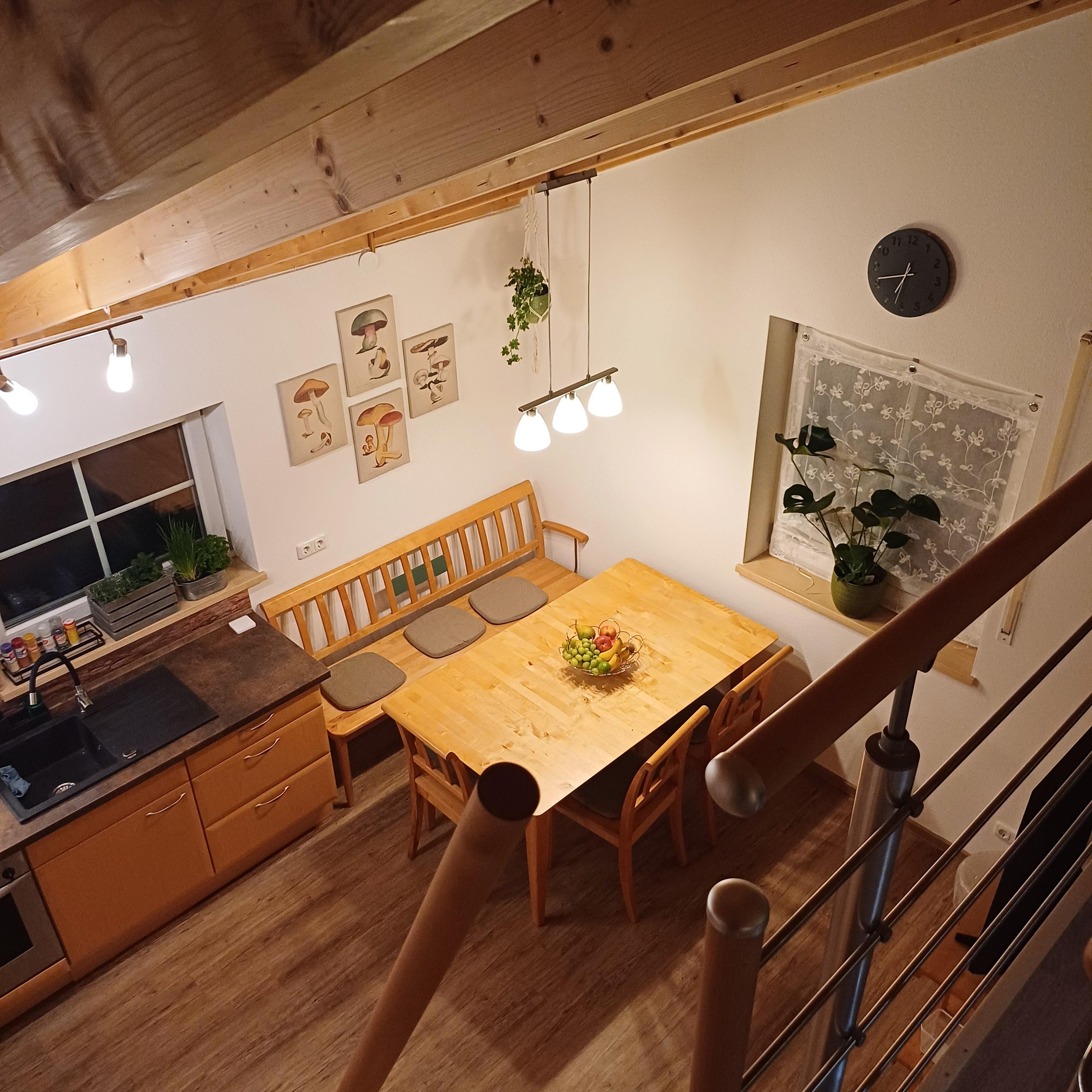 Ferienwohnung ist im ersten Stock durch Außentreppe mit Balkon erreichbar.