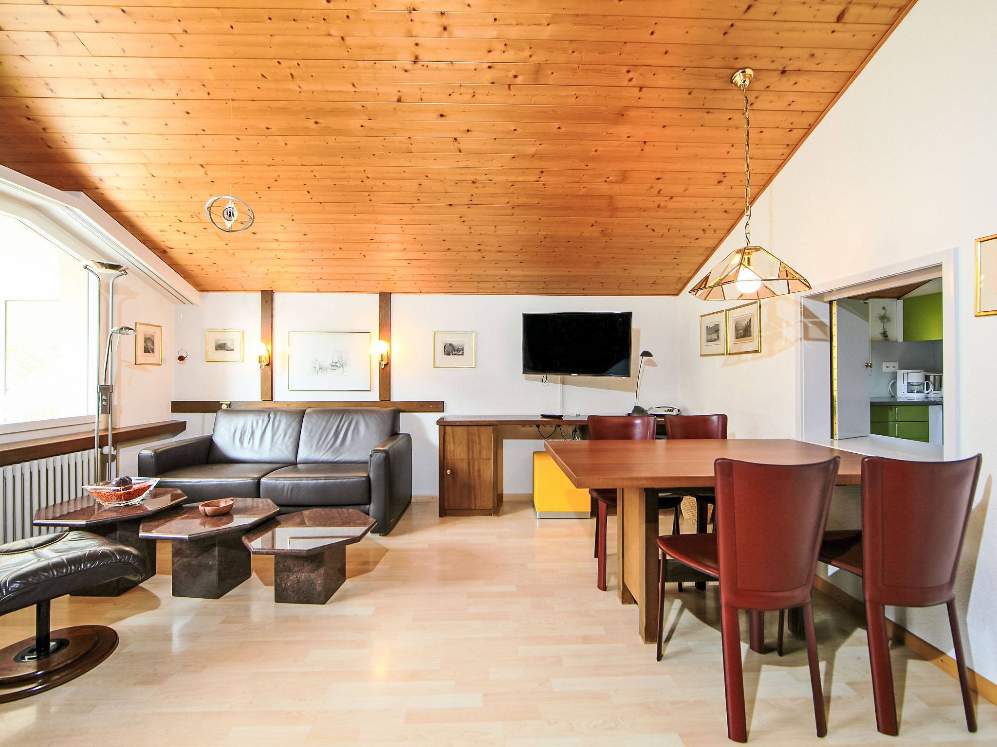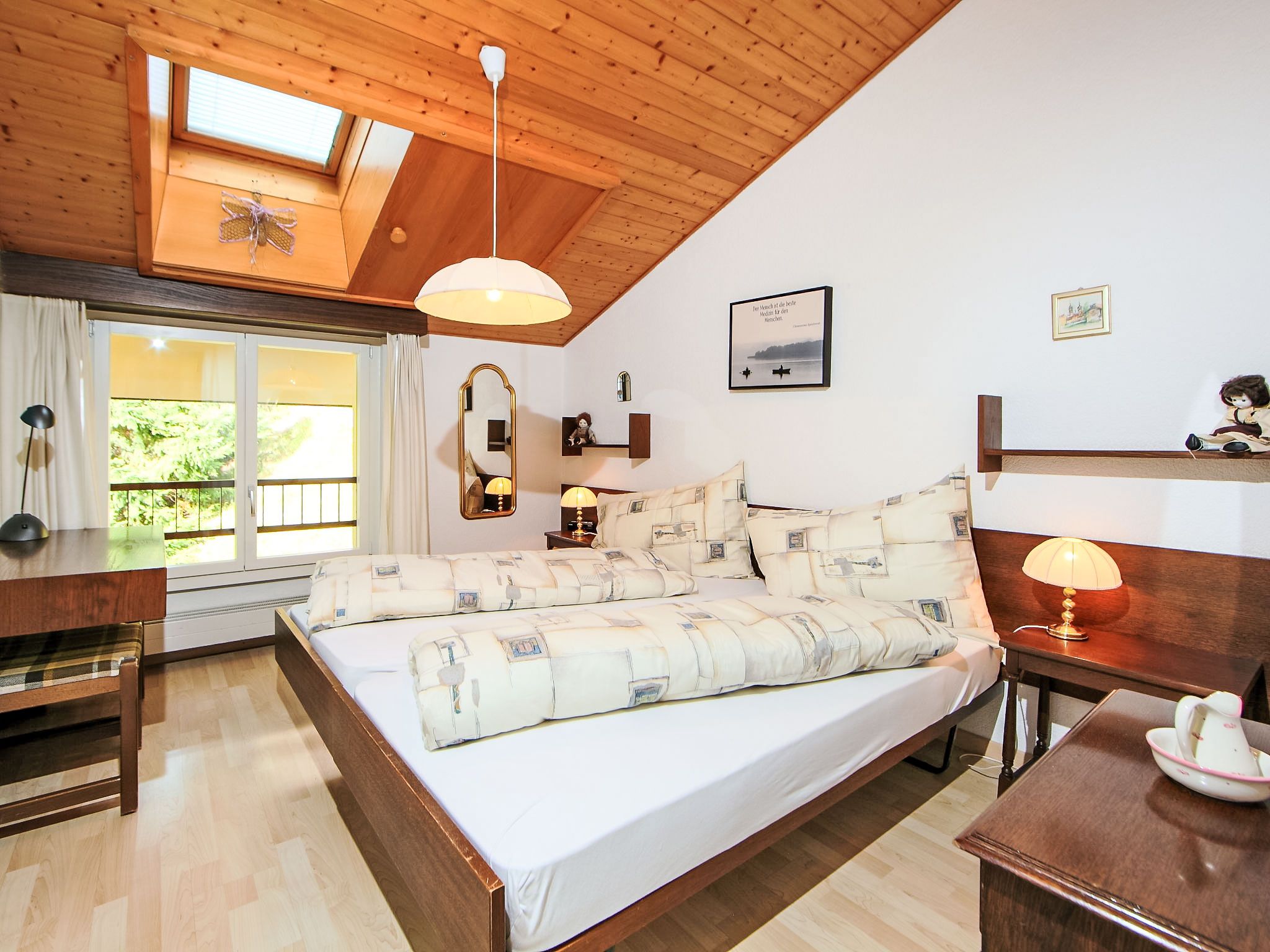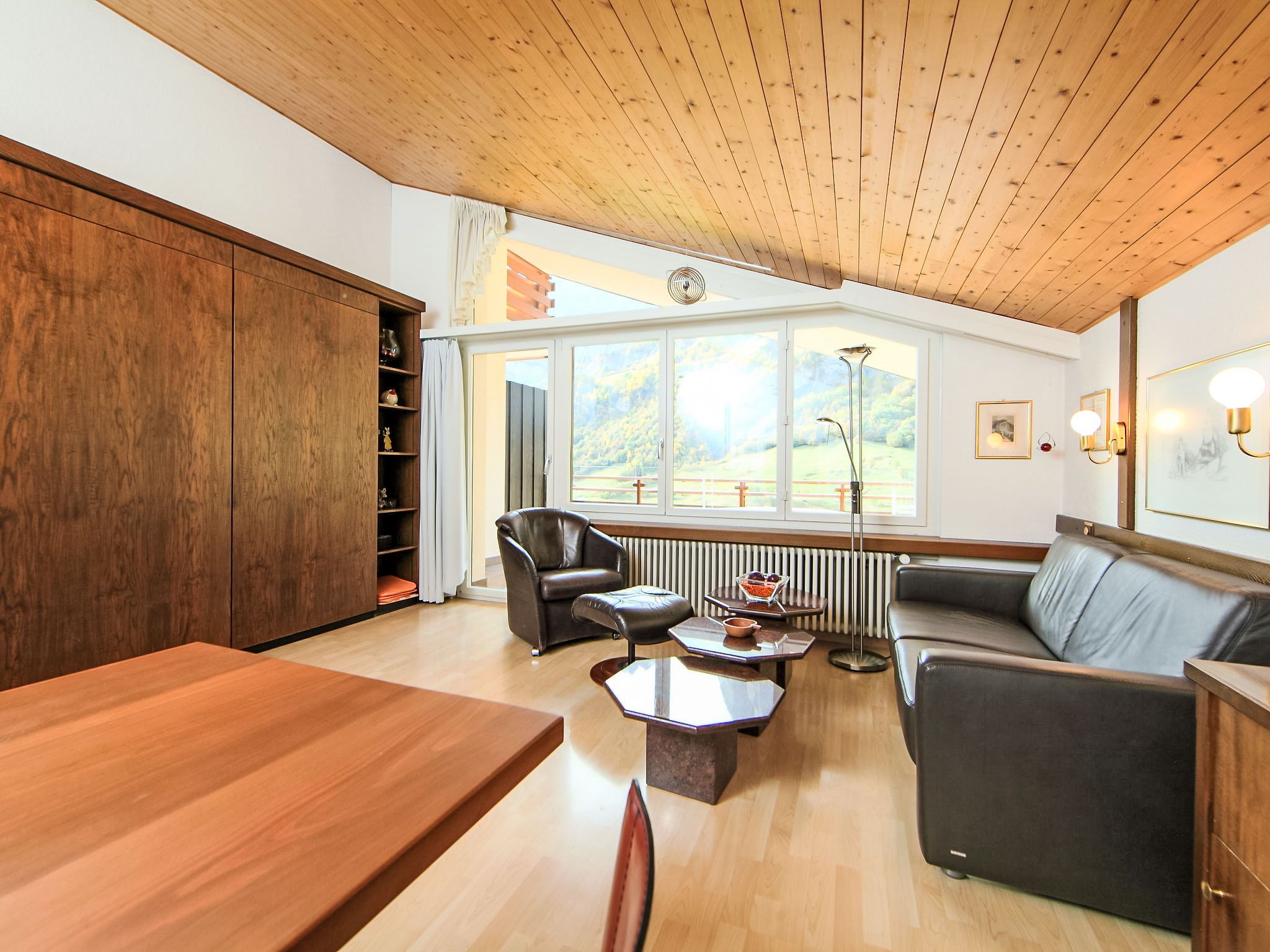 2-Zimmer-Wohnung 58 m2 im 4. Stock. Geschmackvoll eingerichtet: Wohn-/Esszimmer mit 2 Wandschrankbetten und Kabel-TV (Flachbildschirm). 1 Doppelzimmer. Küche (Backofen, Geschirrspüler, 4 Glaskeramikplatten, elektrische Kaffeemaschine, Kapseln für die Kaffeemaschine (Nespresso) extra). Bad/WC, sep. WC. Balkon. Terrassenmöbel. Sicht auf die Berge und das Tal. Zur Verfügung: Internet (Wireless LAN, gratis). Bitte beachten: Nichtraucher-Unterkunft. Maximal 1 Haustier/Hund erlaubt.