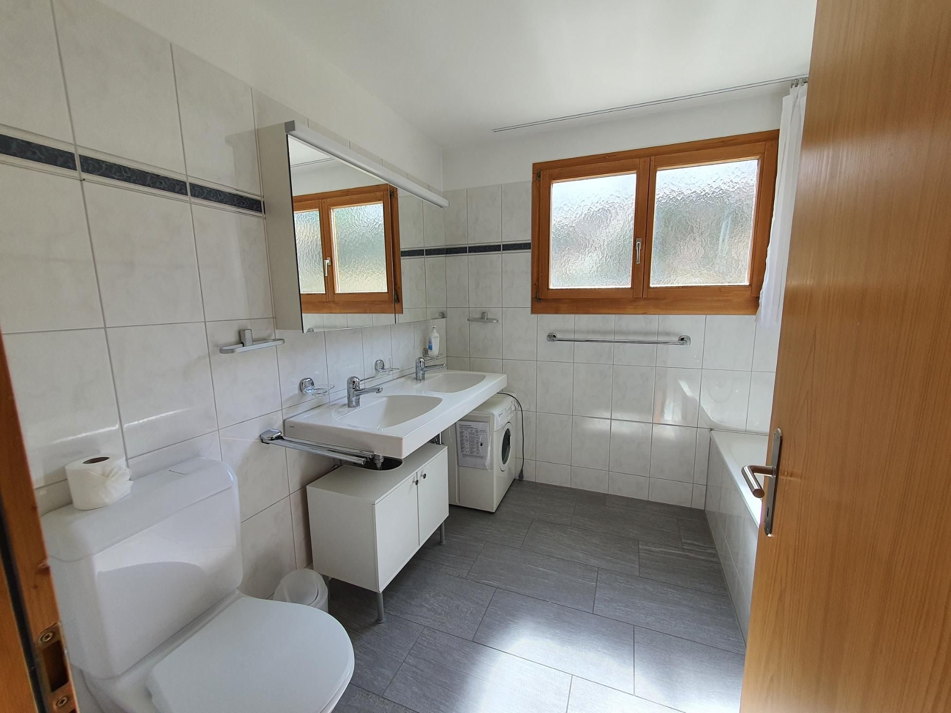 Neumöbilierte Wohnung mit schöner Küche, grossem Wohnzimmer mit Sofabett, Cheminée, TV/DVD, Radio, 1 Doppel- und 1 Dreierschlafzimmer, 1 Badezimmer mit Badewanne, 1 Dusche/WC. Kinderbett, Kinderhochstuhl und Wickeltisch vorhanden. Zusätzliche Möglichkeit: 1 Bettsofa für 2 Personen im Wohnzimmer (Total 7 Personen) Preis zusätzlich pro Person und Tag CHF 25.00