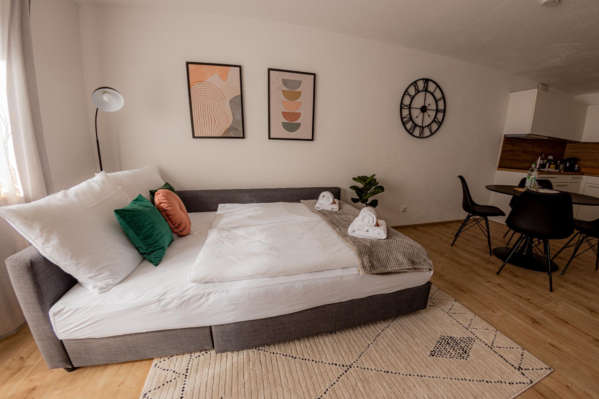 Sehr schöne und neu renovierte 2 Zimmer Wohnung mit großer Terrasse in zentrumsnaher und trotzdem ruhiger Lage von Passau. Die Wohnung wurde im Jahr 2022 komplett neu renoviert. Die Wohnung ist perfekt ausgestattet mit einem großen Boxspringbett (Kingsize) im Schlafzimmer und einem Bad mit begehbarer Dusche. Im Wohn- und Essbereich finden Sie neben einer komplett ausgestatteten Küche mit Kochfeld, Backofen, Mikrowelle und Kühlschrank auch einen Geschirrspüler. Der Wohn- und Essbereich bietet neben einem schönen Essplatz für vier Personen ebenfalls eine Schlafcouch und einen Smart TV mit Netflix. Die Wohnanlage liegt am Hang und bietet somit einen wunderschönen Weitblick über den Fluss und die traumhafte Umgebung. Einkaufsmöglichkeiten und weitere Geschäfte des täglichen Bedarfs stehen in der nahen Umgebung zur Verfügung. Das Zentrum ist bequem zu Fuß, per Fahrrad, Bus oder natürlich dem Auto zu erreichen in wenigen Minuten.