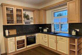 Die liebevoll eingerichtete Ferienwohnung im Landhausstil bietet auf 50 Quadratmetern Platz für bis zu 3 Personen. Sie befindet sich im Obergeschoss und umfasst ein Schlafzimmer mit einem Doppelbett, ein Schlafsofa im Wohnzimmer, Küche, Badezimmer mit Dusche/WC sowie eine Terrasse mit Sitzgelegenheit. Alles tun können und nichts tun müssen heißt es in dieser behaglichen Ferienwohnung, die mit viel Liebe zum Detail und Tradition eingerichtet wurde. Die Terrasse im Wohnraum zeigt einen tollen Blick auf unser Sandsteingebäude.